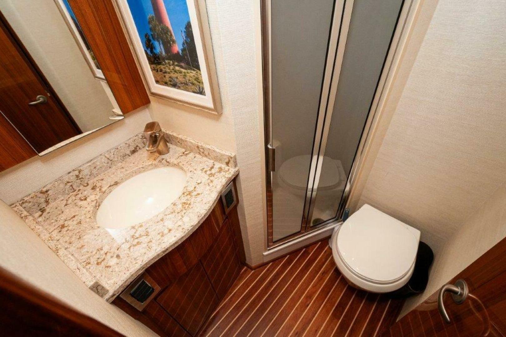 - Island queen berth with maple-lined storage underneath
