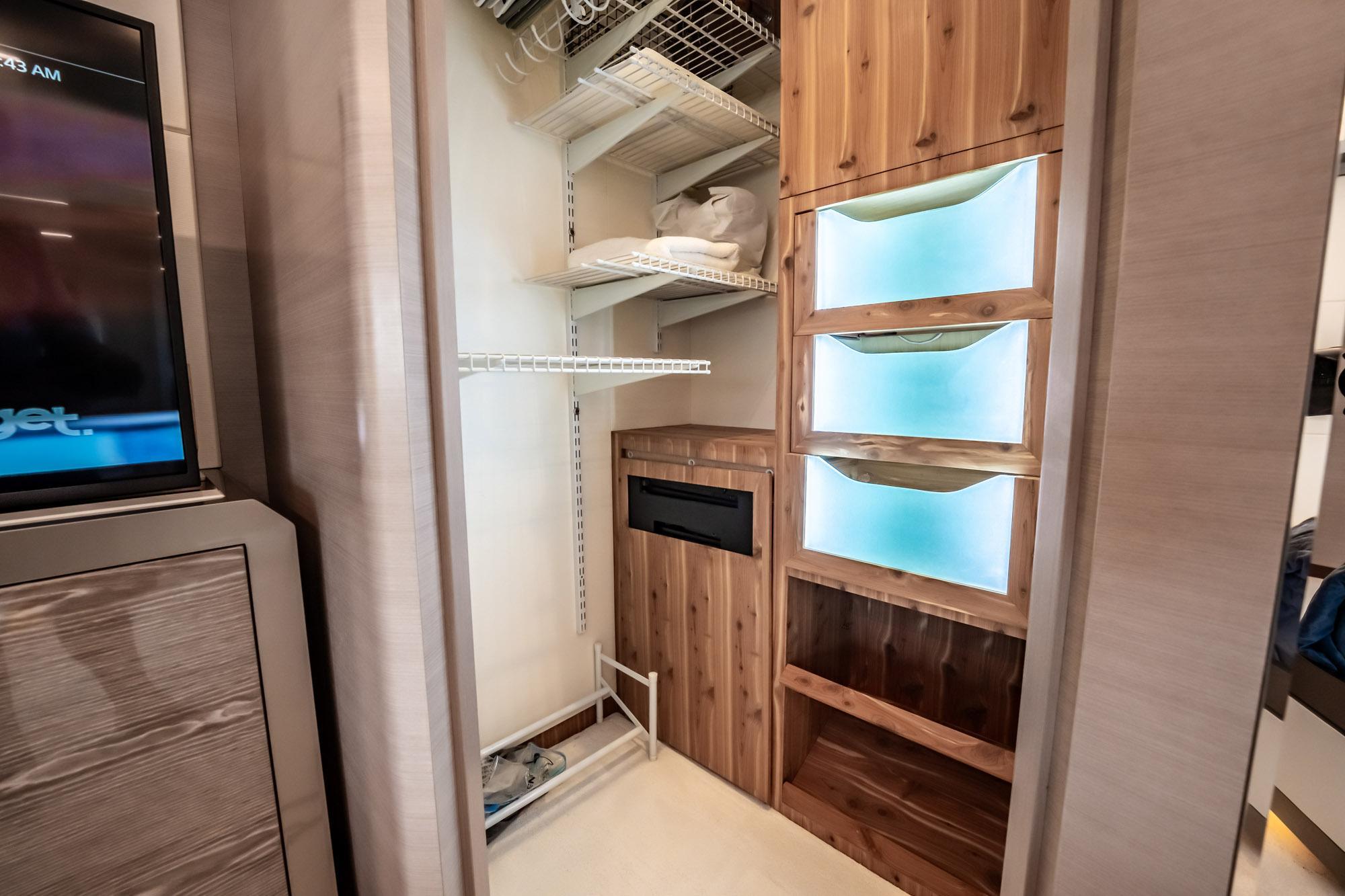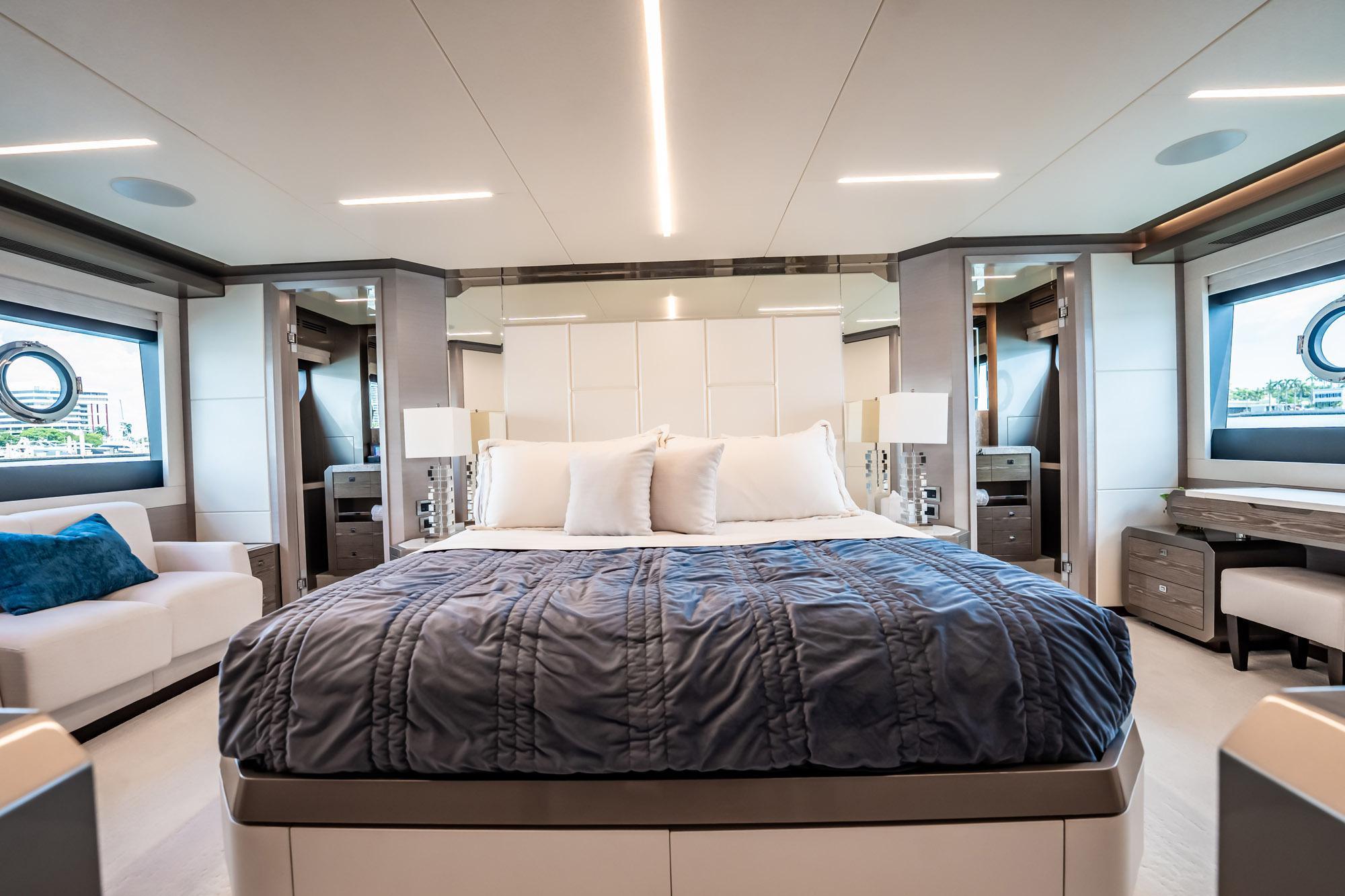 The 27E is designed with comfort in mind, featuring a full-beam master suite with en-suite bath, VIP cabin forward, and two additional guest cabins. Crew accommodations ensure privacy and professional service for extended trips (Captains stateroom and an additional crew bunk).