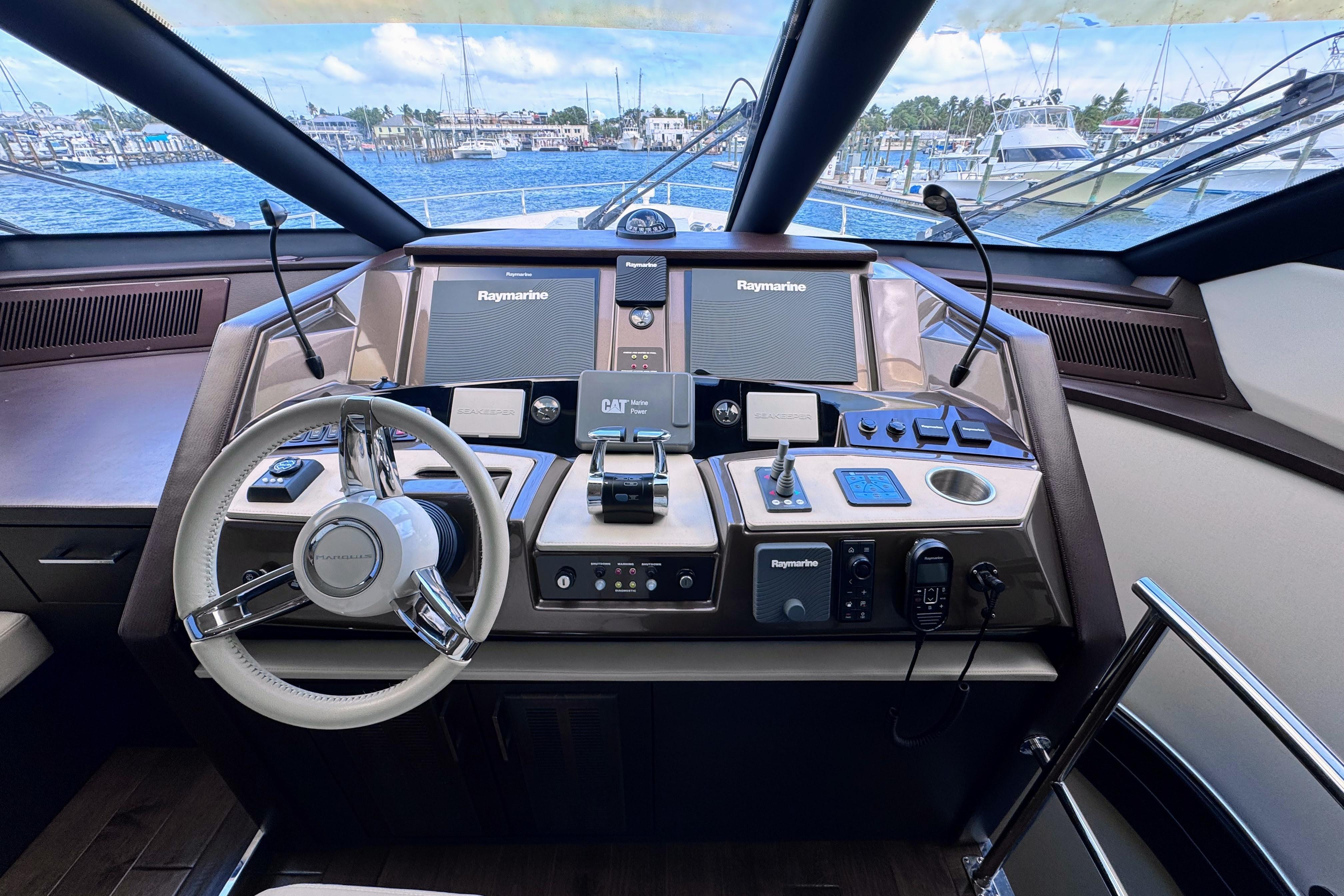 The Marquis 720 Flybridge Motor Yacht - an elegant, Italian-designed vessel known for its luxurious finishes, spacious layout, and robust American made construction. She offers a sophisticated cruising experience with a four-stateroom layout and multiple entertaining areas across three decks, and generous accommodations for guests and crew. Located in Key West to easily start your ideal cruising plans as you visit places like Dry Tortugas National Park, Sunny Florida Keys, and an easy jump to the Bahamas.Flybridge: The oversized flybridge offers breathtaking 360-degree views, a second helm station, a wet bar, bbq grill, and extensive seating, including a large U-shaped lounge. The flybridge provides the perfect atmosphere for relaxation and entertaining.Salon and galley: A sleek sliding glass door opens to the main salon, which features soft and comfy Calia Italia leather furnishings. The open-concept gourmet galley and dining area are on the same level as the salon, making it ideal for entertaining. The chef-ready gourmet galley is equipped with high-end appliances, granite countertops, and wood cabinetry.The accommodations include a full-beam master suite with plush carpeting throughout, and a luxurious en-suite dual sided his and hers bathroom with a marble floor and shower. Additional guest staterooms include a queen berth VIP, and a third guest stateroom with two twin beds. Each has its own private full bathroom ensuring ample space and privacy for all passengers. Crew quarters below deck provide two bunks and a full head.Propelled by powerful Caterpillar diesel engines, the Marquis 720 offers reliable performance and a smooth, stable ride.Bow and stern thrusters for superior maneuverablilty, and Sea Keeper gyroscopic stabilizer for enhanced comfort while at sea.Full suite of Raymarine electronics for both upper and lower helms, Yacht Controller MTL Series remote engine control system, and additional docking helm aftThis Marquis is loaded with entertainment amenities such as four TVs with wifi streaming network, overhead speakers and subwoofer, bluetooth stereo systems and speakers throughout the vessel, and bluray disc playersStarLink wifi - Gen3Please call our yacht broker Jennifer King-Pitts for more information or to set up a showing.