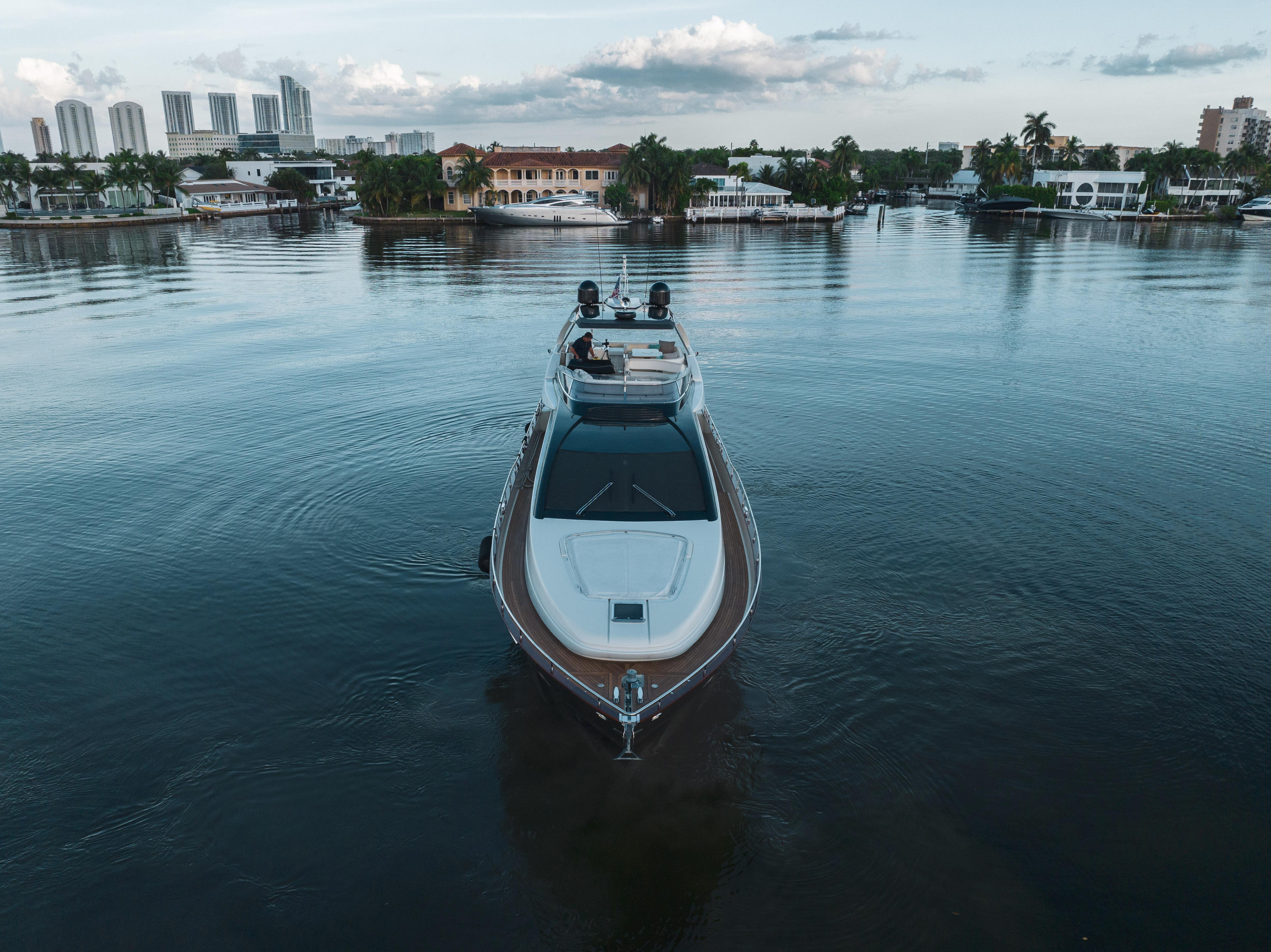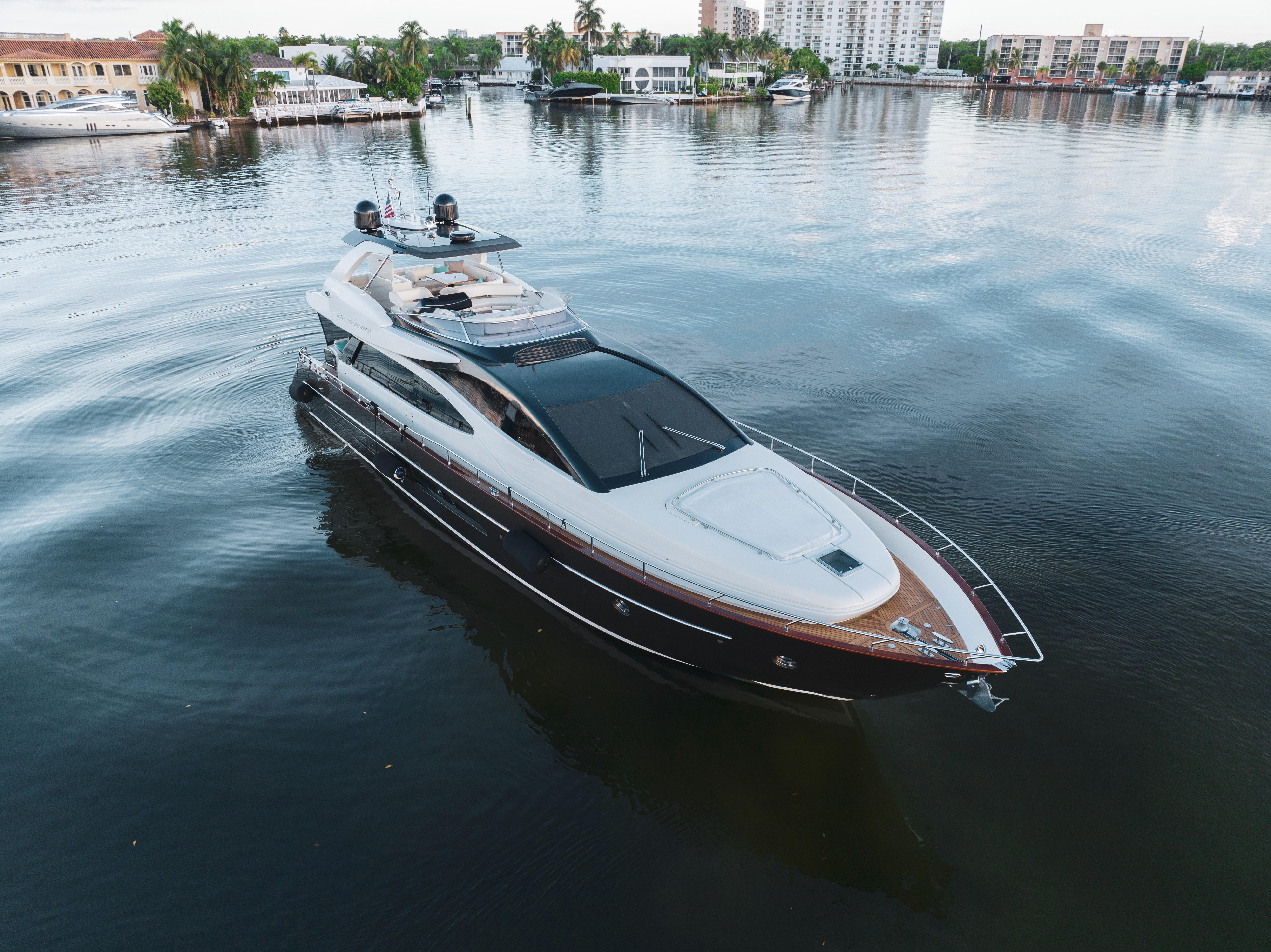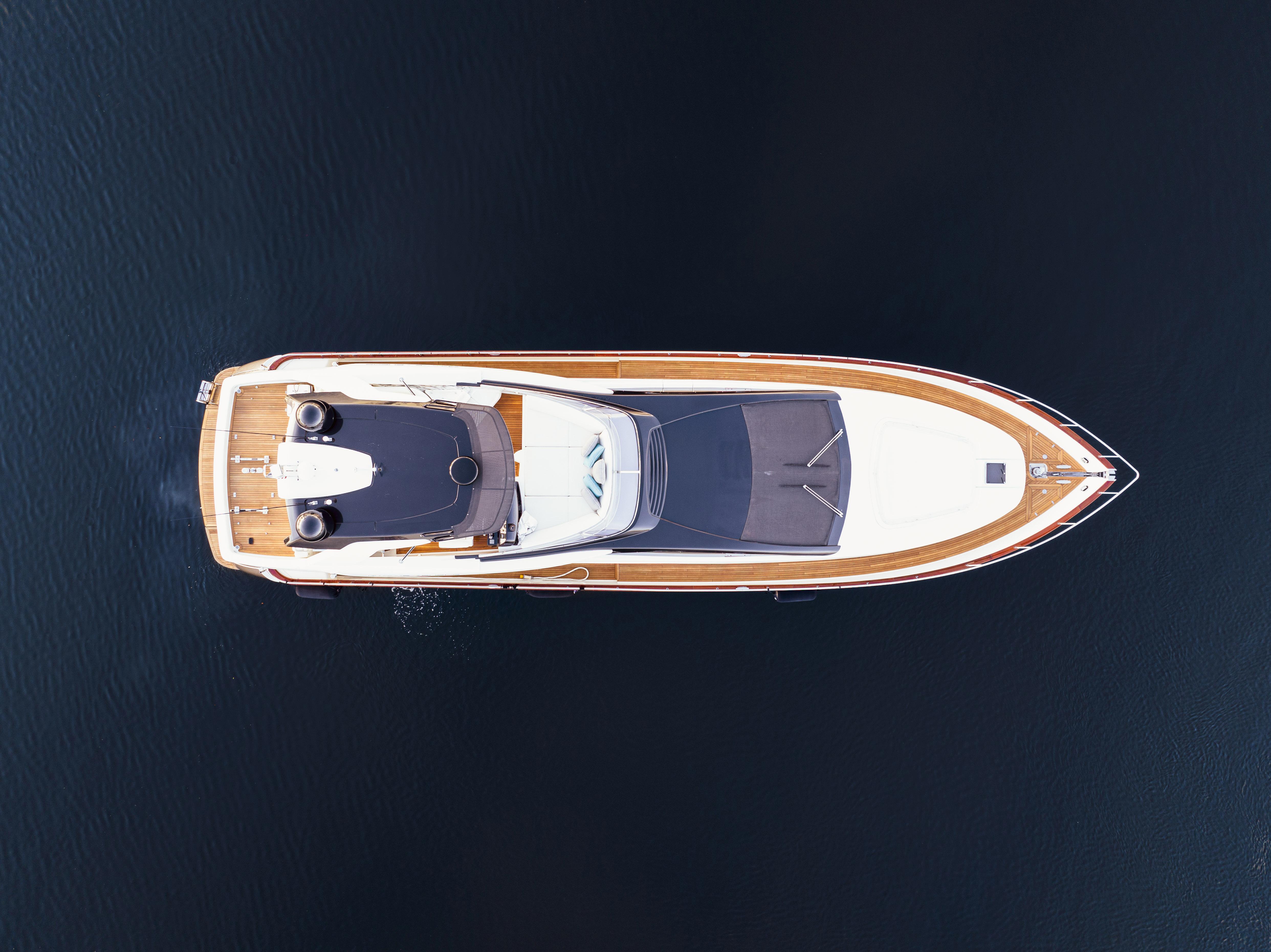 InformationLength Overall: 75.50 feet (23.00 meters) Length at Waterline: 62.88 feet (19.10 meters) Beam: 18.75 feet (5.71 meters) Draft: 6.08 feet (1.85 meters) Year Delivered: 2012 Type: Flybridge Motoryacht Flag: USA Tonnage: 81 gross Builder: Riva (Italy) Naval Architect: Advanced Yacht Technologies (Italy) Construction: Fiberglass hull and superstructure with teak decks Classification: R.I.N.A. Main Engines: (2) MTU 10V2000 M94, @ 1,623 Hp each Hours: 1745 Electrical: (2) 23Kw Kohler generators Speed:Maximum: 30.0 knotsCruising: 26.0 knots Tankage: Fuel: 1,453 US Gallons (5,500 liters)Water: 264 US Gallons (1,000 liters)
