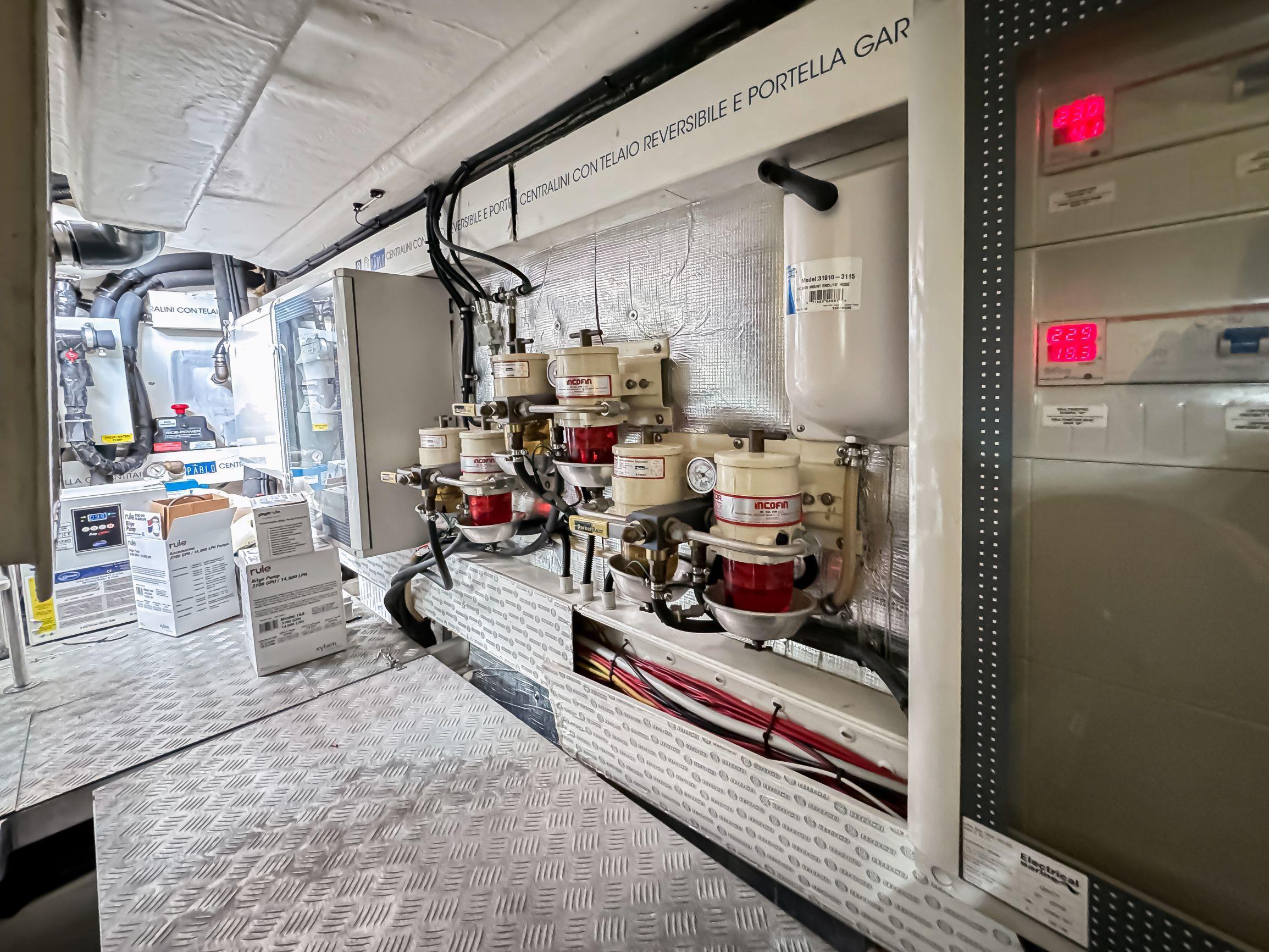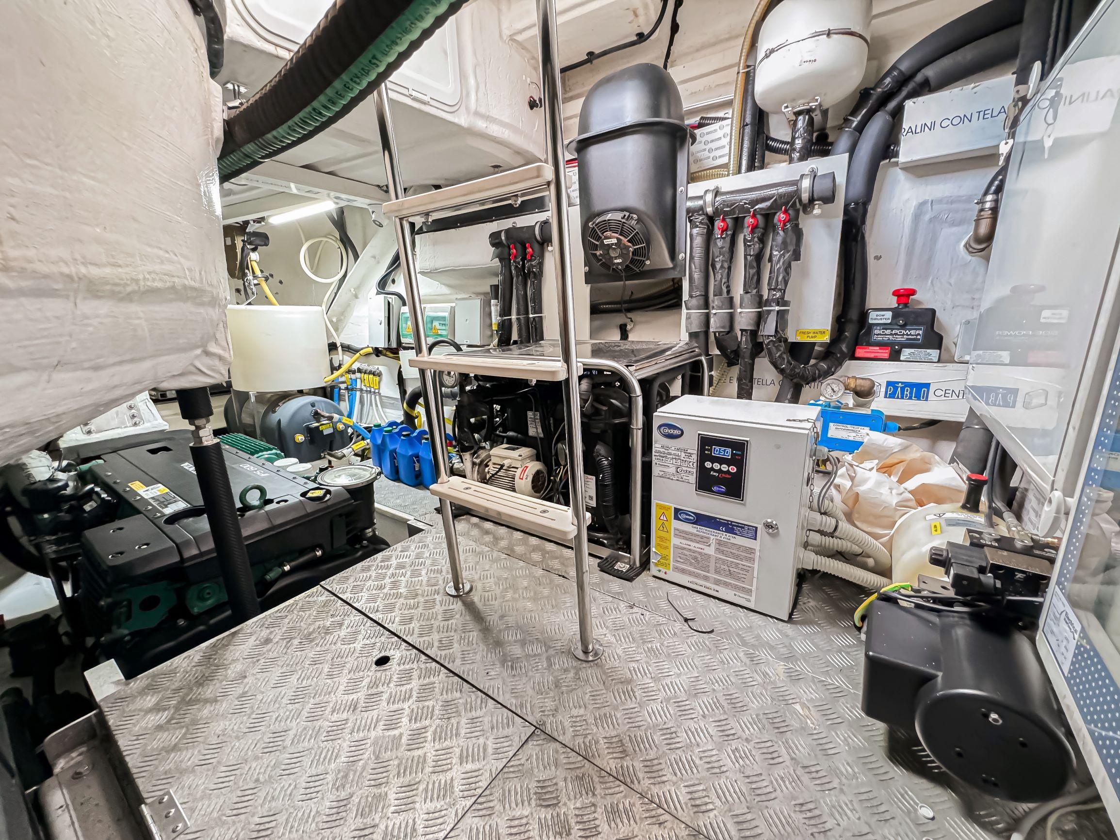 Triple Volvo D6 IPSOnan 21.5 Generator3 cabins 2 headsFull beam masterSeakeeperWatermaker2 Raymarine GPSDepthfinderAutopilotFull GalleySummer kitchenWasher/ DryerGarageUW lightsSatellite TV