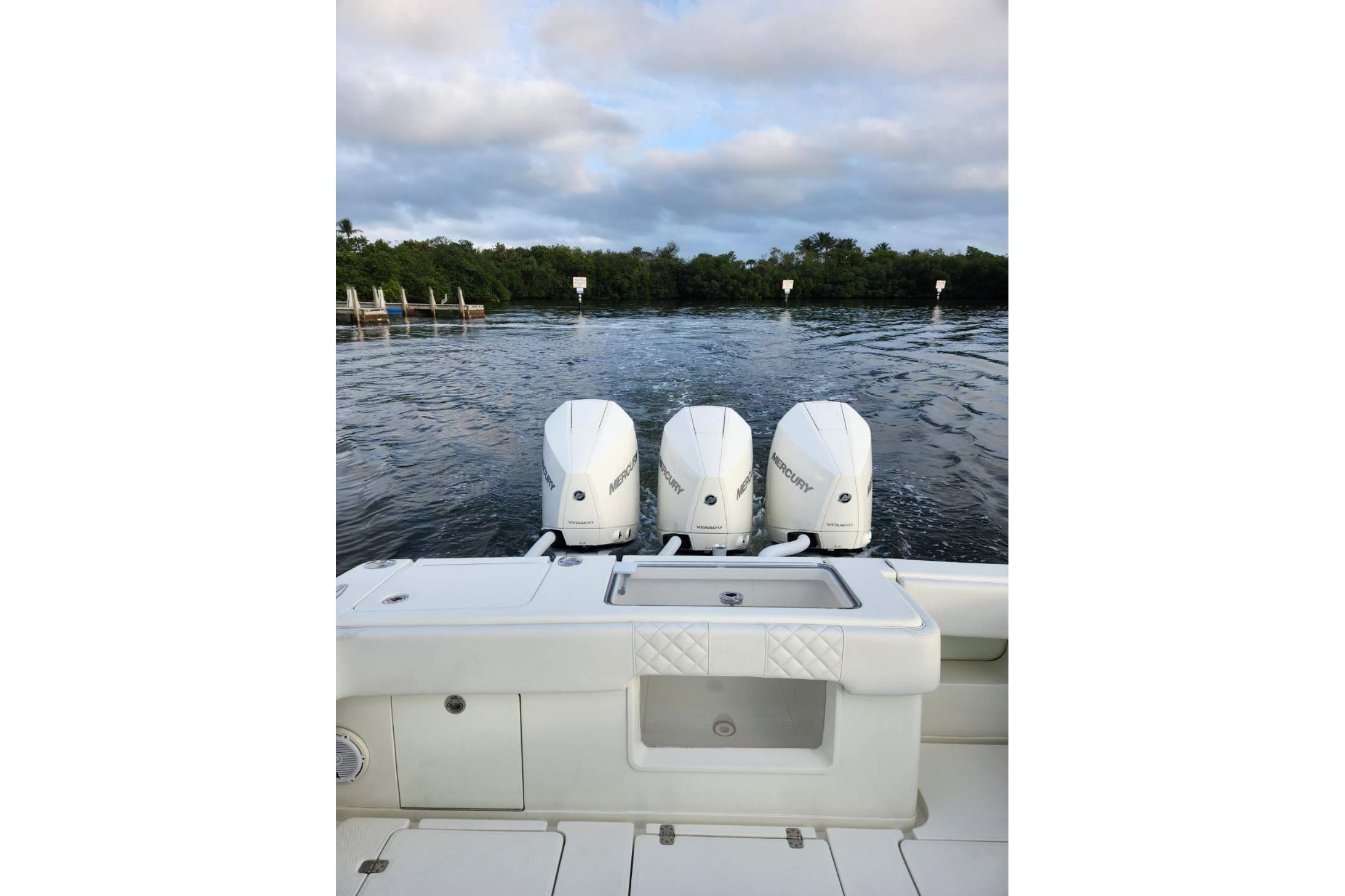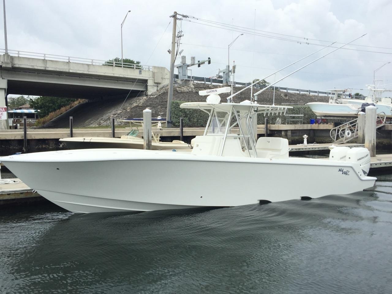 If you are in the market for a center console then this 2017 34 SeaVeeZ should be at the top of your list. It is powered by new triple 300 Mercury Verados with around 90 hrs and warranty until 1/2029. She is extremely clean and has been kept on a lift since new. The seller just installed new (2) Garmin 8616s installed in May of 2023 and is ready to go.