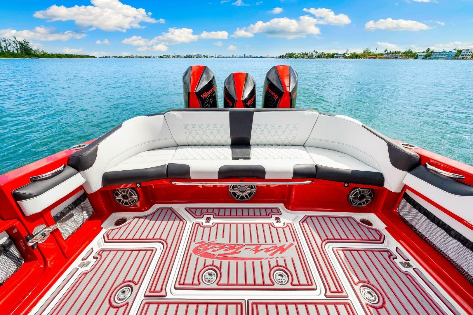 Turn heads and rule the waves with this stunning red 2022 39 Nor-Tech Sport Boat – a fusion of luxury, performance, and bold design. Powered by triple Mercury Racing outboards, this high-performance center console delivers exhilarating speed and precision handling, whether you're cruising the coast or chasing the horizon.Key Features: Striking Red Hull with custom graphics and premium paint finishTriple Mercury Racing 450R Engines with under 200 hrs – unmatched power and reliabilityAdvanced Helm Station with dual Garmin displays and JL Audio systemSpacious Layout with bow lounge seating, aft club sport configuration, and second-row helm seatsLED Lighting Package including underwater lights for nighttime ambianceLuxury Touches like premium upholstery, power-lift bow table, and full head compartmentWhether you're entertaining guests or chasing adventure, this Nor-Tech 390 Sport is built to impress and engineered to perform.