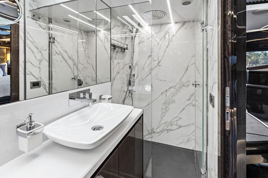 - 50” LED retractable TV Facing Starboard side with L-Shaped Seating Area