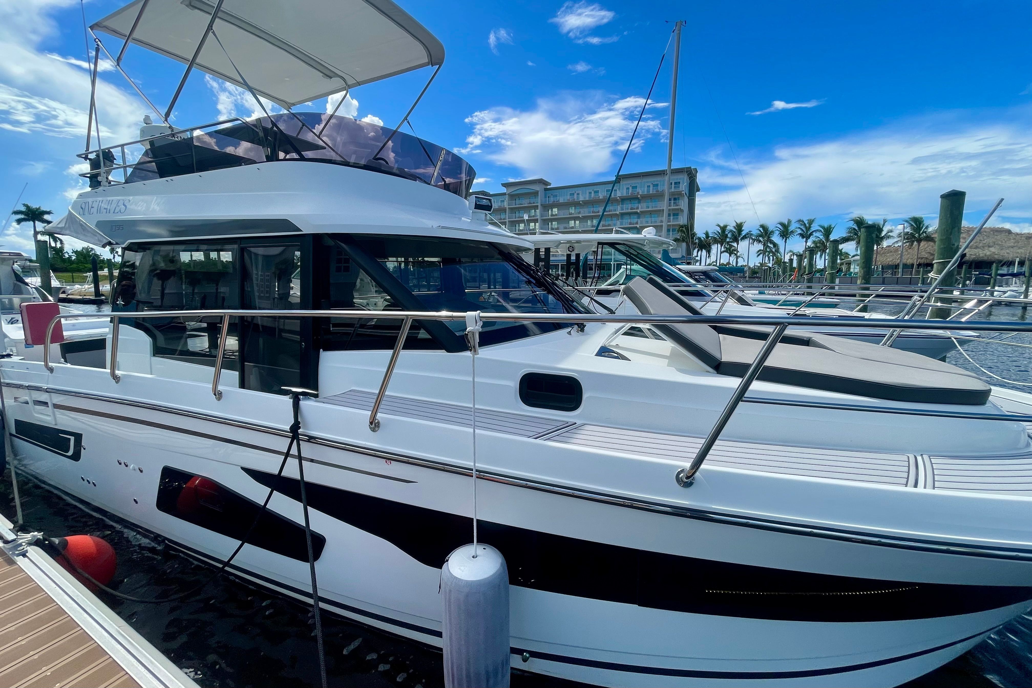 2021 Jeanneau NC 1095 Fly – Fully Loaded & Just ServicedTurn-key and ready for adventure! This 2021 NC 1095 Fly has just been fully serviced, including both engines, and comes packed with high-demand options:Twin white Yamaha 300HP engines – freshly servicedSeaDek flooring throughoutGarmin electronics, VHF & radarOnboard generator for power anywhereTV in salon for onboard entertainmentBow thruster for easy dockingZipWake trim tabs for a smooth, stable rideWith a spacious flybridge, bright interior, and room for the whole family, the NC 1095 Fly is the ultimate weekender and cruiser. Don’t miss this chance to own a loaded, ready-to-go model!