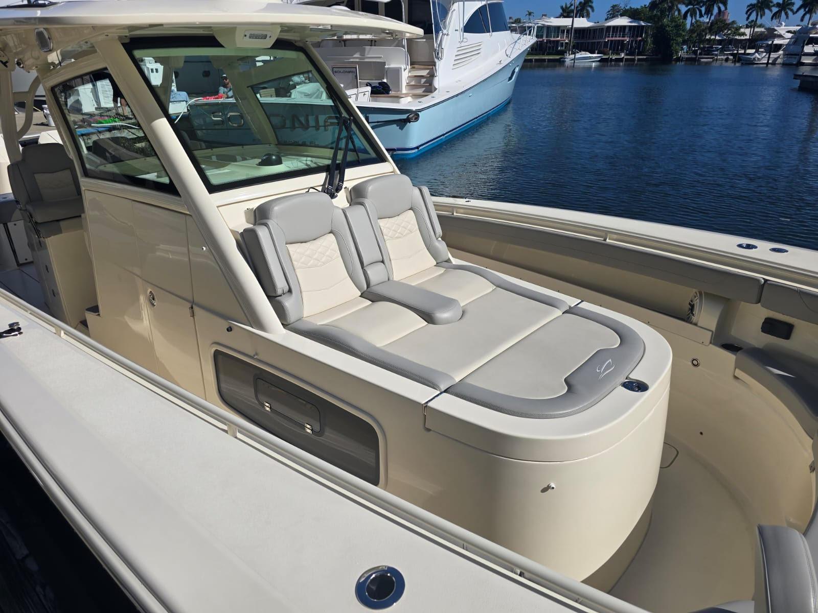 - Fwd Console Double Sun Deck Lounge w/ Cushions, Armrests & Underside Storage