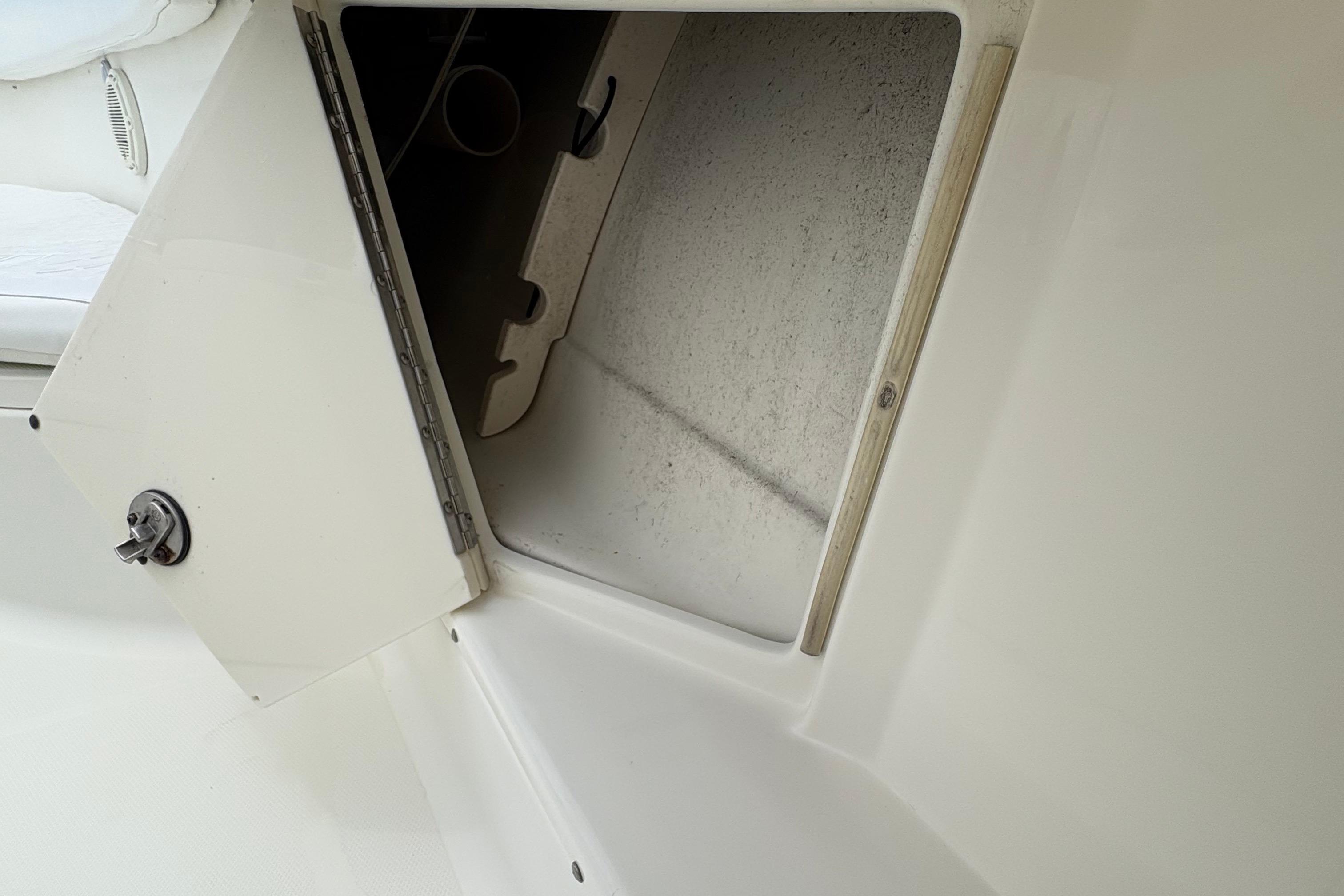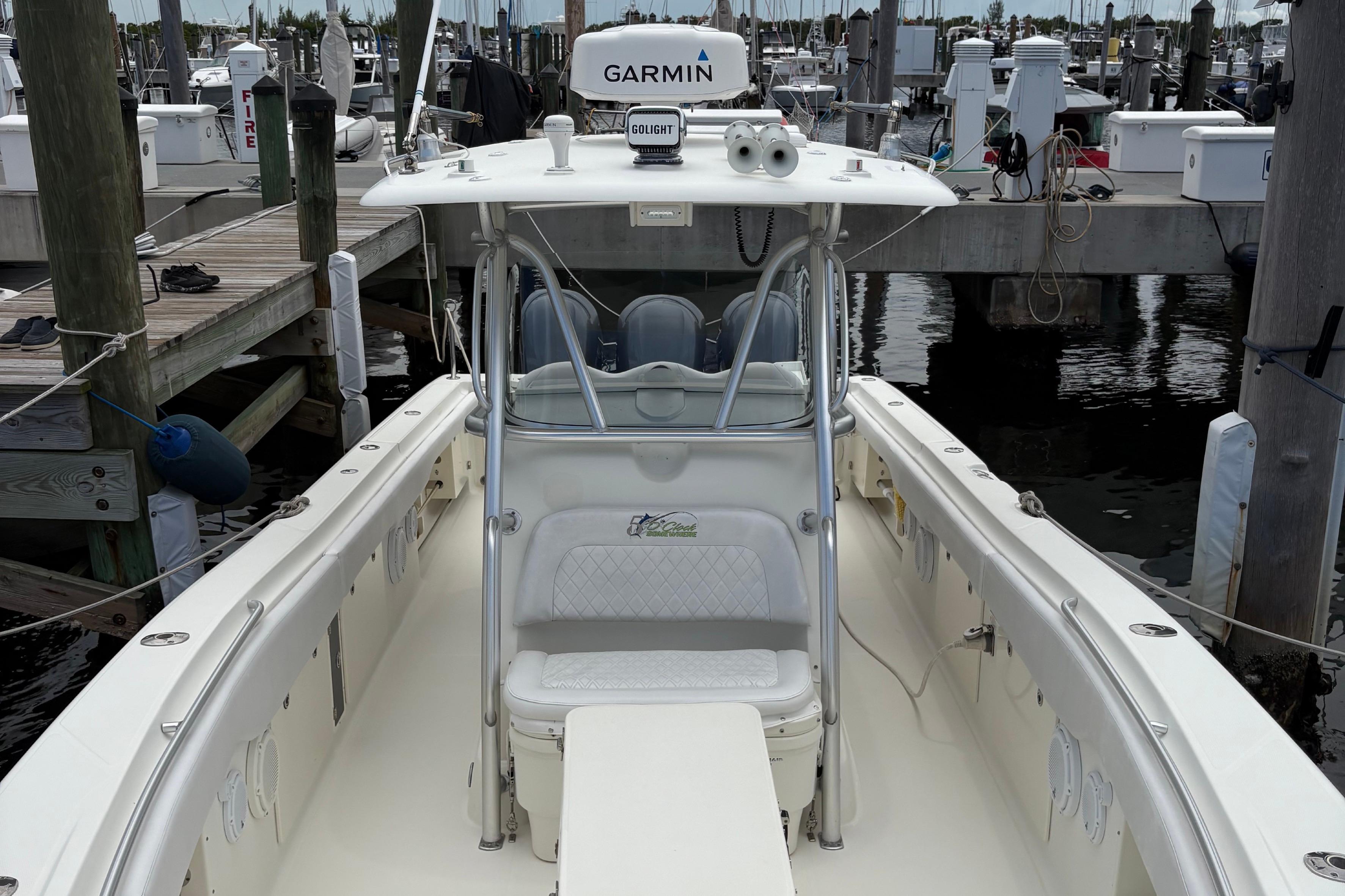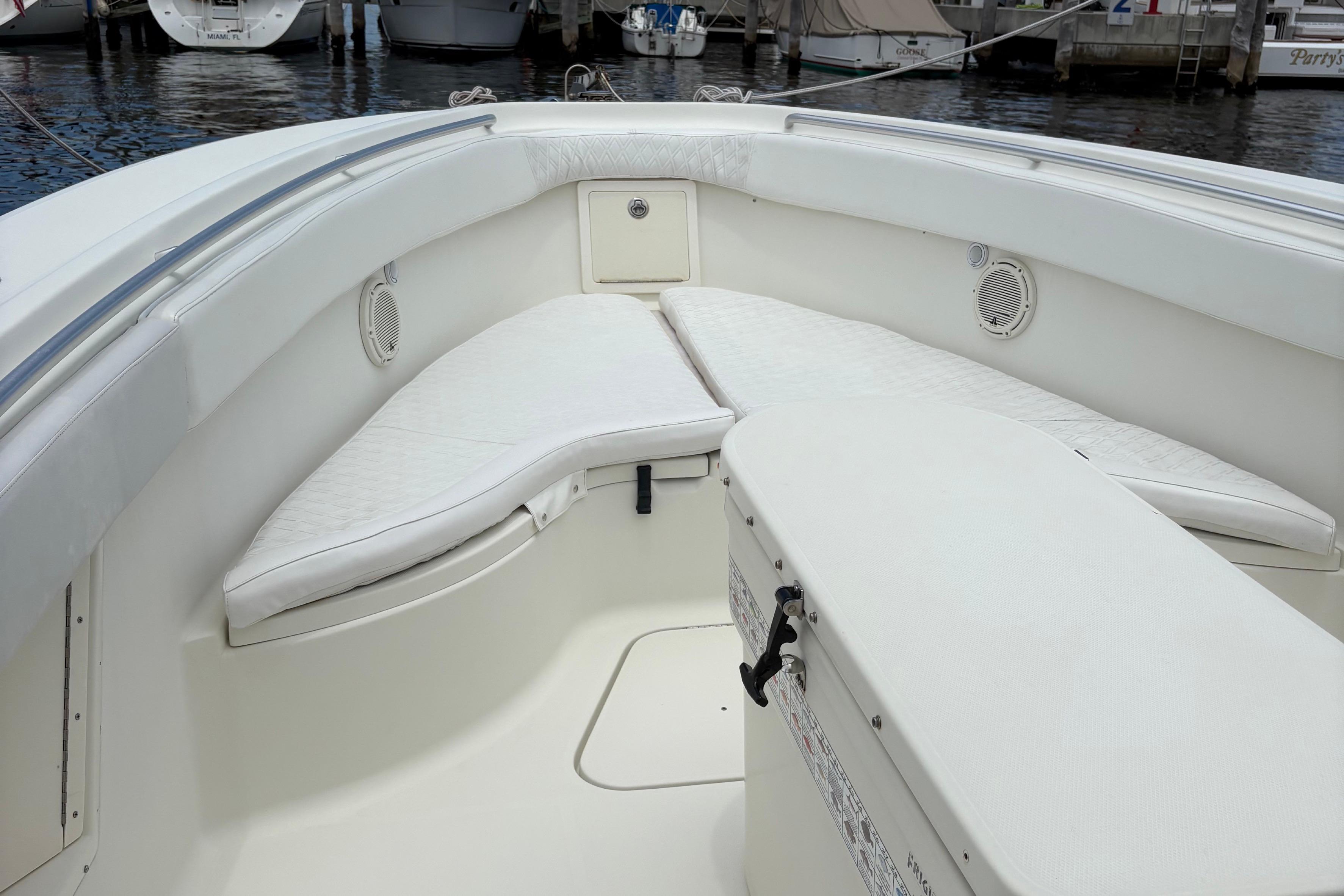 The 2007 Hydra-Sports Vector 3300 CC features a spacious console with a step-down compartment housing a marine head and storage space, ideal for extended fishing days offshore. The boat has more than ample storage space, this boat was made for those bahamas and keys trips, or even serious overnight trips. Between the bow seating, forward console lounger, helm seating, and fold-down transom bench, the boat comfortably accommodates 8–12 people, with space for 5–7 to fish without crowding. Forward insulated coffin fish box, 55 Gal Aft Livewell, and ample rigging space round out a layout built for serious offshore performance and all-day utility.