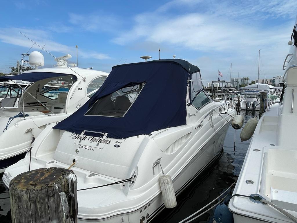 Motivated Owner!!!This ' Sea Ray 340 Sundancer is family boat and it is ready to enjoy !!BRING YOUR OFFER!!!The Sea Ray 340 Sundancer is Sea Ray’s new flagship in their cruiser line. She comes with 8.1L MercCruiser gasoline v-drives. The Sea Ray 340 delivered a smooth ride and handled nicely. Her length overall hinders her from making tight turns without coming off step. The 340’s helm features a wood accented control station which includes custom back lit instrumentation panel, dual shift and throttle controls, waterproof switch pads and SmartCraft diagnostics. The helm layout has double bucket helm seats with flip up thigh-rise bolsters, a port side bucket companion seat with flip up bolsters and a spacious U-shaped aft seats.You will want to add the new optional SmartCraft system view for at-a-glance monitoring of air and water temperatures, fuel flow range, maintenance records and more. For an added measure of confidence for docking, an optional bow thruster is also available. In the cabin, the new 340 Sundancer is impressive with a bright wide-open salon with deep cherry wood finishes and large mirrors throughout. An unbelievable amount of storage space is found under the cabinets and the salon v-berth. A forward hatch with sky-screen cover and bonded and circular skylights add to the feeling of spaciousness.In keeping with the new exterior styling, sleek curves are the order of the day with a large crescent shaped sofa that converts to a bed for extra guests. The convenient dinette table has its own designated storage compartment for fast, easy stowing if extra floor space is needed. You will find a Clarion single CD stereo system with 6-disc changer and digital cockpit remote control. Another standard feature is the 13” TV/VCR. An optional stereo remote from the transom is also available.You will find extra storage space in the 340 Sundancer’s easy to reach gunwale cabinets and a generous floor compartment. The galley hosts an unbelievable amount of counter space along with a two-burner stove, microwave, and refrigerator. There is also a fully enclosed fiberglass head with a vacu-flush head, shower, sink and vanity.The large cockpit area has everything for relaxing and entertaining which includes a refreshment center with a wet bar and cooler. The portside wet bar has a sink with faucet, icemaker, and plenty of storage space. In the cockpit, you will also find beverage holders, snap-in carpet liner, acrylic transom door, a self-draining fiberglass floor liner, indirect lighting, extra storage below the helm seats, and a cockpit table with sun pad filler cushion with stainless steel handrails.After having spent some time on Sea Ray’s 340 Sundancer for 2005, I found the boat to be very nicely laid out in the cabin and in the cockpit. The helm is what a captain would want a helm to be. The standard instruments and controls are great and the optional electronics are to die for! The boat handled well in close quarter maneuverings without a bow thruster. However, the option of having a bow thruster is recommended. I found the salon to be unbelievably roomy and spacious for a 34-foot boat. Sea Ray has kept their word regarding creating a racy new profile for the 340 Sundancer. I think they may be on to something when they say they are setting new trends in the cockpit area. It was a pleasurable experience to put the 2005 340 Sundancer through its paces.
