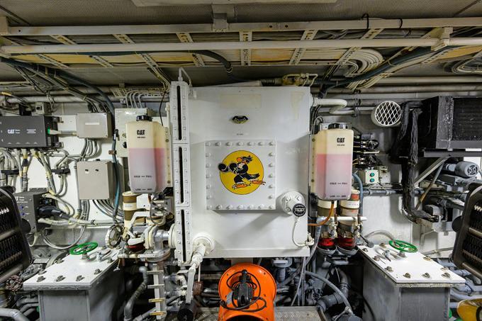 - Twin CAT C-30 12 cylinder engines 1550 HP each, installed during 2005 refit – Hours: Port 4319, Stbd 4324 (Oct. 2024)