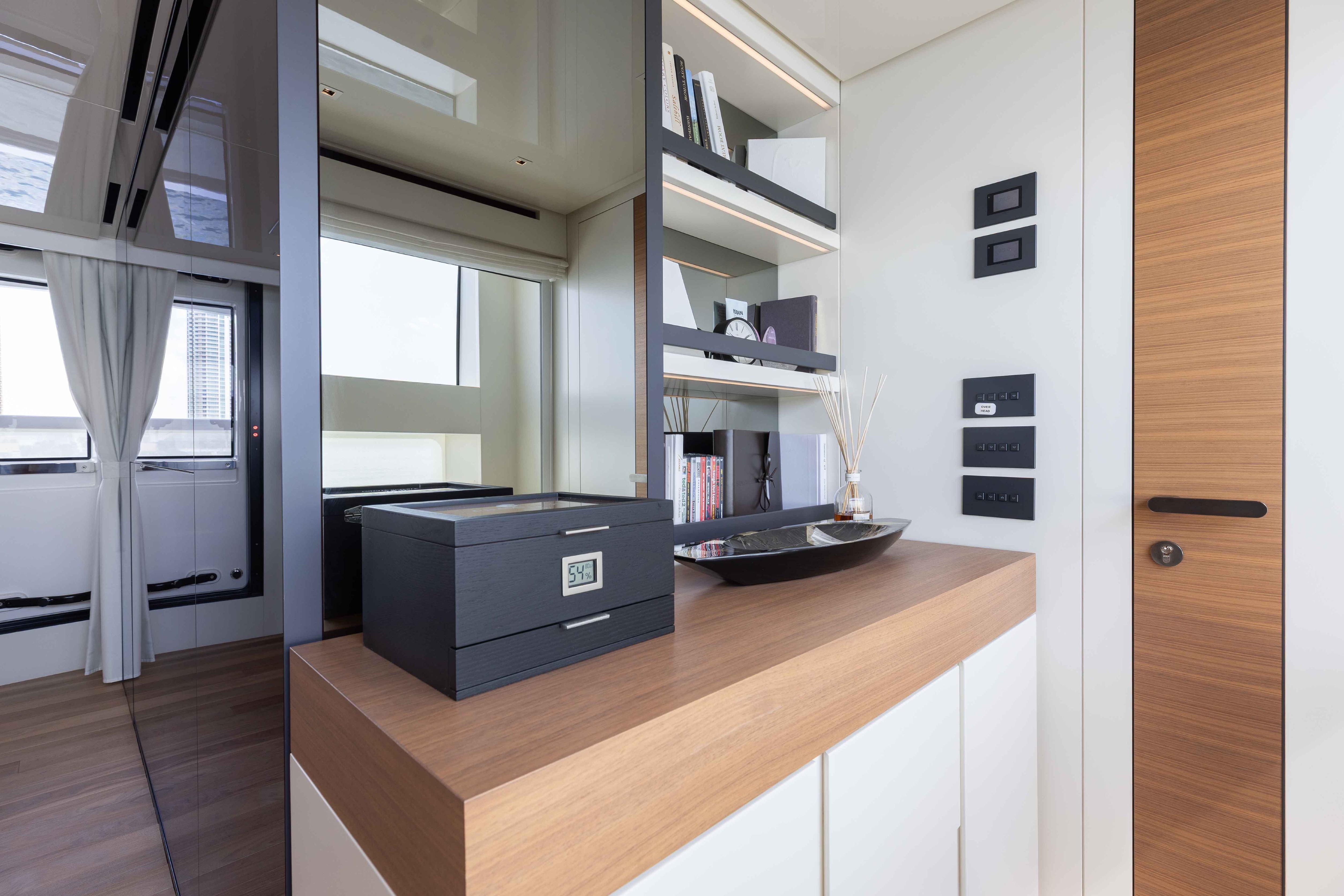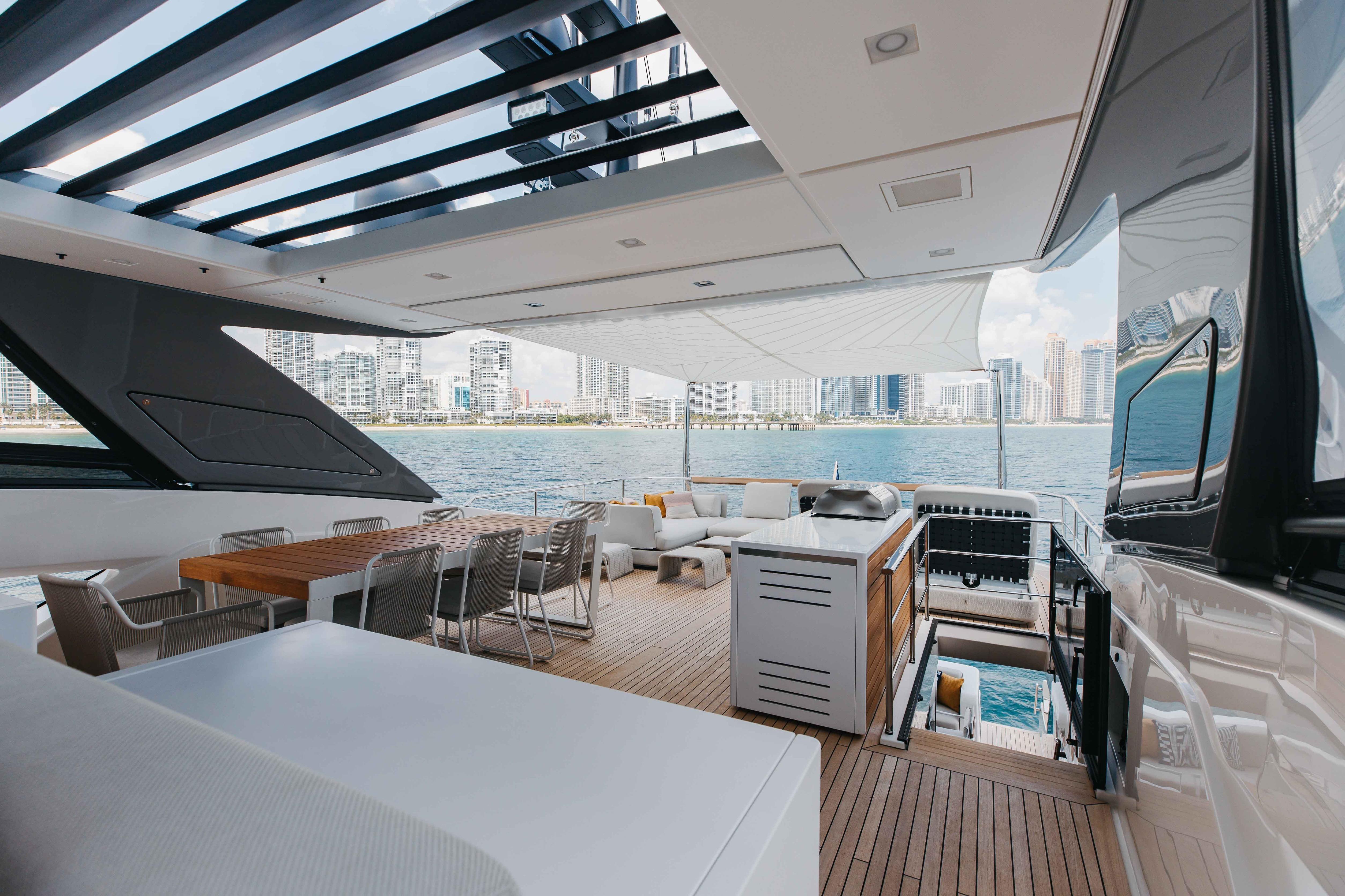 “Chameleon” presents an exceptional opportunity for yacht enthusiasts. A 2024 model year vessel barely a year old, a new owner will inherit a turn-key yacht with all shakedowns behind it, and a long list of valuable stateside upgrades. The yacht has never been chartered and has been meticulously maintained by a full-time Captain and crew.The asymmetric series from Sanlorenzo redefines the boundaries of interior volume on a yacht of this size. An ingenious method elevates the Portside walkarounds from the main deck to the bridge level, granting the yacht an additional 3 feet of interior beam and substantially expanding the available space for interior accommodations.Innovative layout features are seamlessly integrated throughout the SL90A: an expansive full-beam on-deck master stateroom and three spacious cabins below provide guests with unparalleled comfort. A hydraulic bulkhead section can be lowered at the touch of a button on the portside, revealing uninterrupted floor-to-ceiling views of the water from the salon. A spectacular open atrium stretches midships, connecting the bottom guest cabin deck to the raised pilothouse. Access and flow have been meticulously redesigned: an electric door from the master bedroom to the exterior deck of the bow facilitates swift access, while guests can also directly walk from the bridge deck to the bow sunbathing areas. Large skylights connect the sky and master bedroom to the shower, creating an abundance of natural light and fostering a sense of spaciousness.Chameleon is a fully optioned Americas edition yacht, flagged in the United States with Duty paid. A wide range of desirable features and options include CNC electric stabilizer fins, a louvered sunroof, stern garage with a hydraulic swim platform, and more. Furthermore, the owner has invested a significant amount in additional aftermarket upgrades, including: Control 4 iPad-controlled AV, a starling internet infrastructure, upgraded sound, Ubiquity AI cameras, water filtration, extra refrigeration, high-capacity ice makers, upgraded AC chillers, flybridge eisenglass, and a Williams tender.