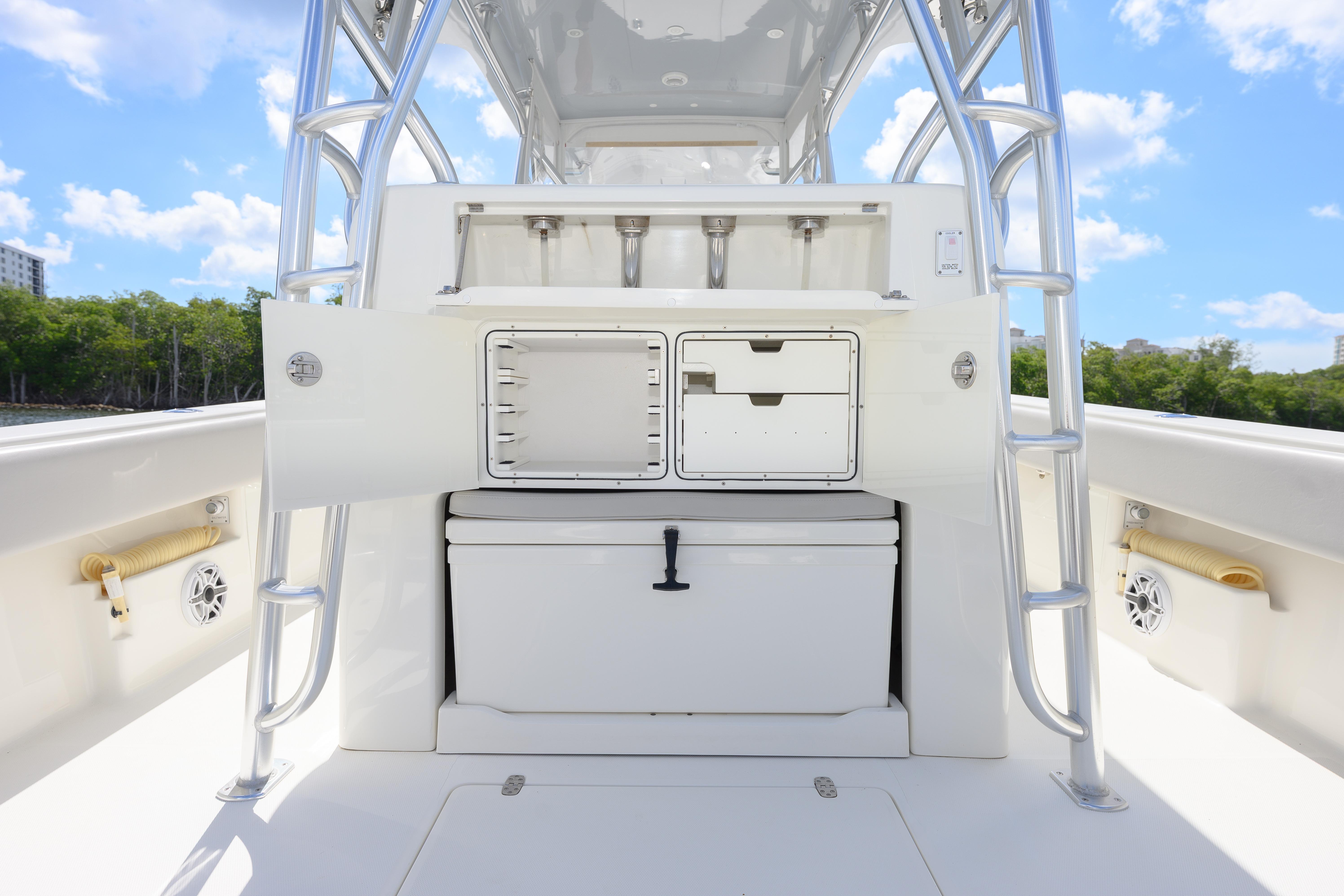 With Quad 400 Merc Verados 390 hrs warranty until 8/17/26 Seakeeper 3 gyroOptimus joystickFiberglass Hard Top w/Full Sailfish Tower w/Full Controls & Garmin 8612 GPS Gemlux Outriggers w/22' Carbon Graphite Poles w/Internal Rigging Custom Hull Color Stars and Stripes with Hull max Clear bottom paint FLIRGOST security systemConsole 3-Sided Polycarbonate Enclosure Fiberglass Helm/Tackle Station w/CoolerFold out Bow Seating Custom Hull Side Dive Door Lebroc Helm chairsRemovable L Shaped Transom Seats Auto Quad Engine Flushelectric head Full Coaming Bolsters Fresh & Raw water WashdownsTransom Large Livewell w/Aquarium Window & forward Floor Well w/3-Pump Seachest 18-Console Rod Holders, 20-Gunnel Rod Holders, 2-Swivel+ 3-Electric Reel Outlets Under Gunnel Lighting Blue + 3-Underwater Lights RGBW 30amp Shore Power & Onboard ChargerGreat Electronics Pkg: Twin Garmin 22" Units 8622s MFDs w/1KW Chirp Transducer, 12kw 4' Open Ray Radar, Auto-Pilot, Grid Remote, Icom M400BB VHF, JL Audio Stereo w/All JL Audio Speakers & Amps, 6-7.7" + 2-8.8" + 2-6.5" In Tower + 6-10" Subs