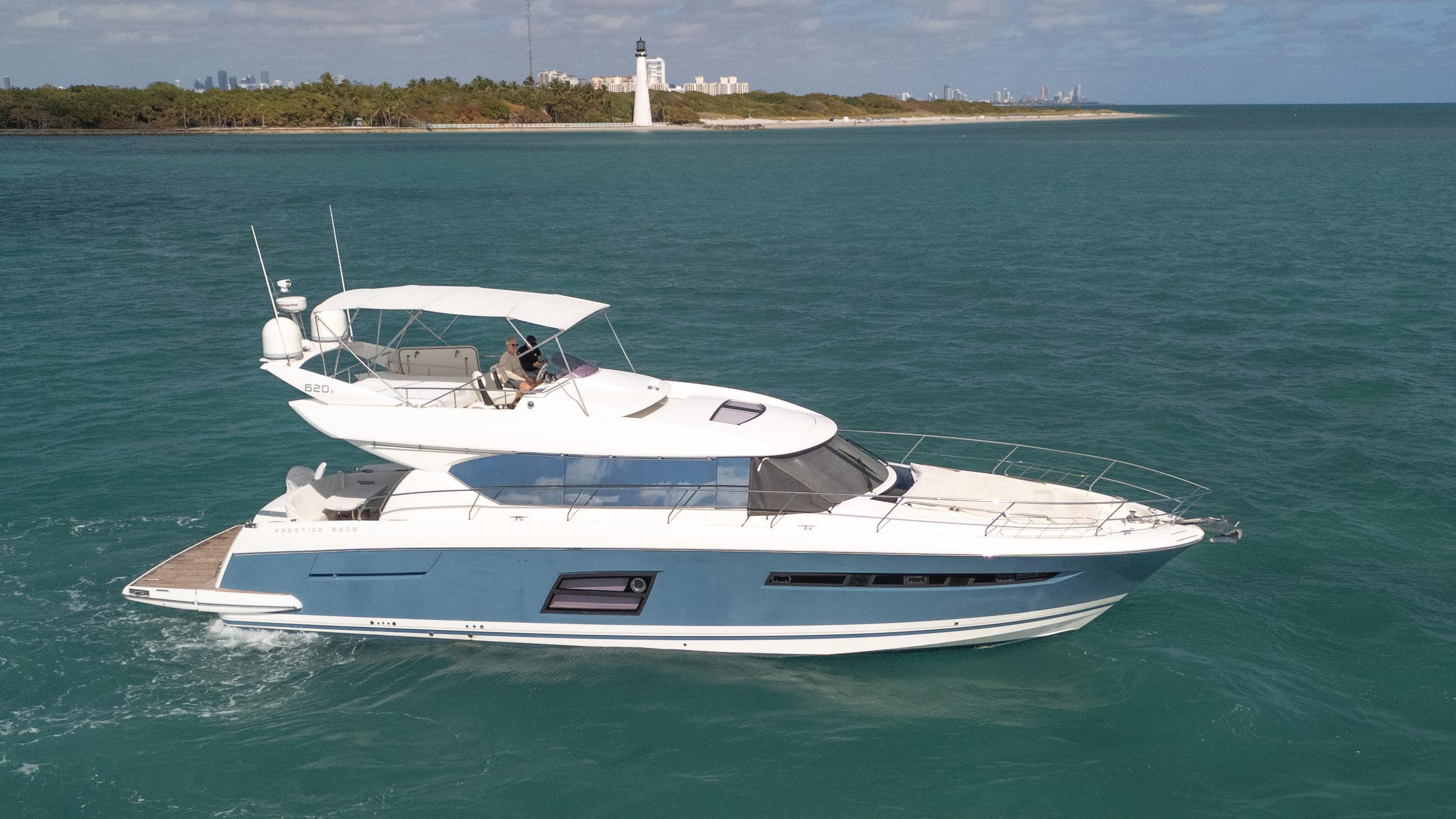 2014 Prestige 620S – Where Elegance Meets Performance.You will not find a more upgraded Prestige 620. The only one with 2 generators, 2 water makers, SeaKeeper 9 and much, much more….. Perfect for Bahamas, Caribbean as well as great loop. Owner has a new boat and is ready to sell!!The 2014 Prestige 620S exemplifies the perfect blend of luxury, innovation, and seaworthiness, crafted to meet the desires of discerning yacht enthusiasts. Combining cutting-edge design with a focus on comfort and functionality, the 620S is a sport version of the renowned Prestige 620, offering sleek lines and enhanced performance capabilities.Key Features and Highlights: • Elegant Profile: The sharp, contemporary design features large glass panels, accentuating natural light and providing panoramic views, making the 620S an icon of sophistication. • Sport Flybridge: A compact yet fully functional sport flybridge provides excellent views for navigation and relaxation, ensuring an elevated cruising experience. • Innovative Layout: The spacious, open-plan main deck seamlessly integrates the saloon, galley, and helm station, creating an inviting atmosphere for socializing and entertaining. • Luxurious Accommodations: Below deck, the Prestige 620S features a three-stateroom layout with en-suite bathrooms, including a full-beam master suite with ample storage, a vanity, and large windows for natural light, plus separate crew cabin with 2 berths and its own head and shower • Performance and Power: Equipped with twin Volvo IPS 900 engines, the yacht delivers smooth, efficient cruising and superior maneuverability. The joystick controls make docking a breeze. "Blue Haven" is also equipped with Volvo DPS (Sky hook) • Outdoor Living Spaces: The yacht boasts multiple outdoor areas for relaxation, including an aft cockpit with a comfortable seating area and a large swim platform, perfect for water activities. • Exceptional Craftsmanship: From the high-quality materials to meticulous attention to detail, the Prestige 620S reflects the brand’s commitment to timeless luxury and durability.WILL ACCEPT CLEAN TRADES!