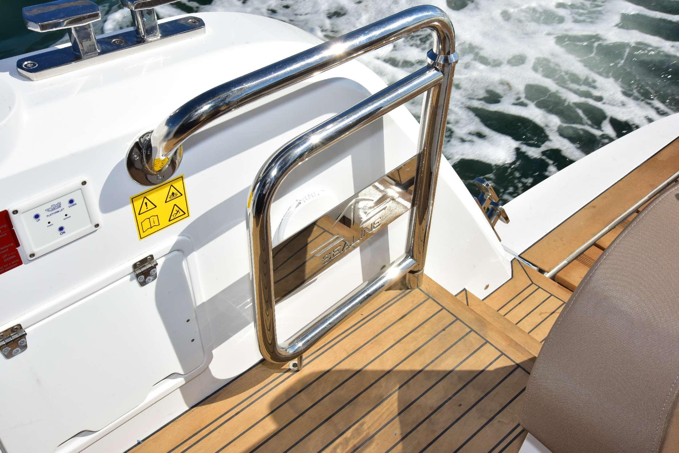 LARGE BATHING PLATFORMHydraulically operated and highly comfortable. The built-in steps unfold as the platform is lowered, providing a safe access to the sea.