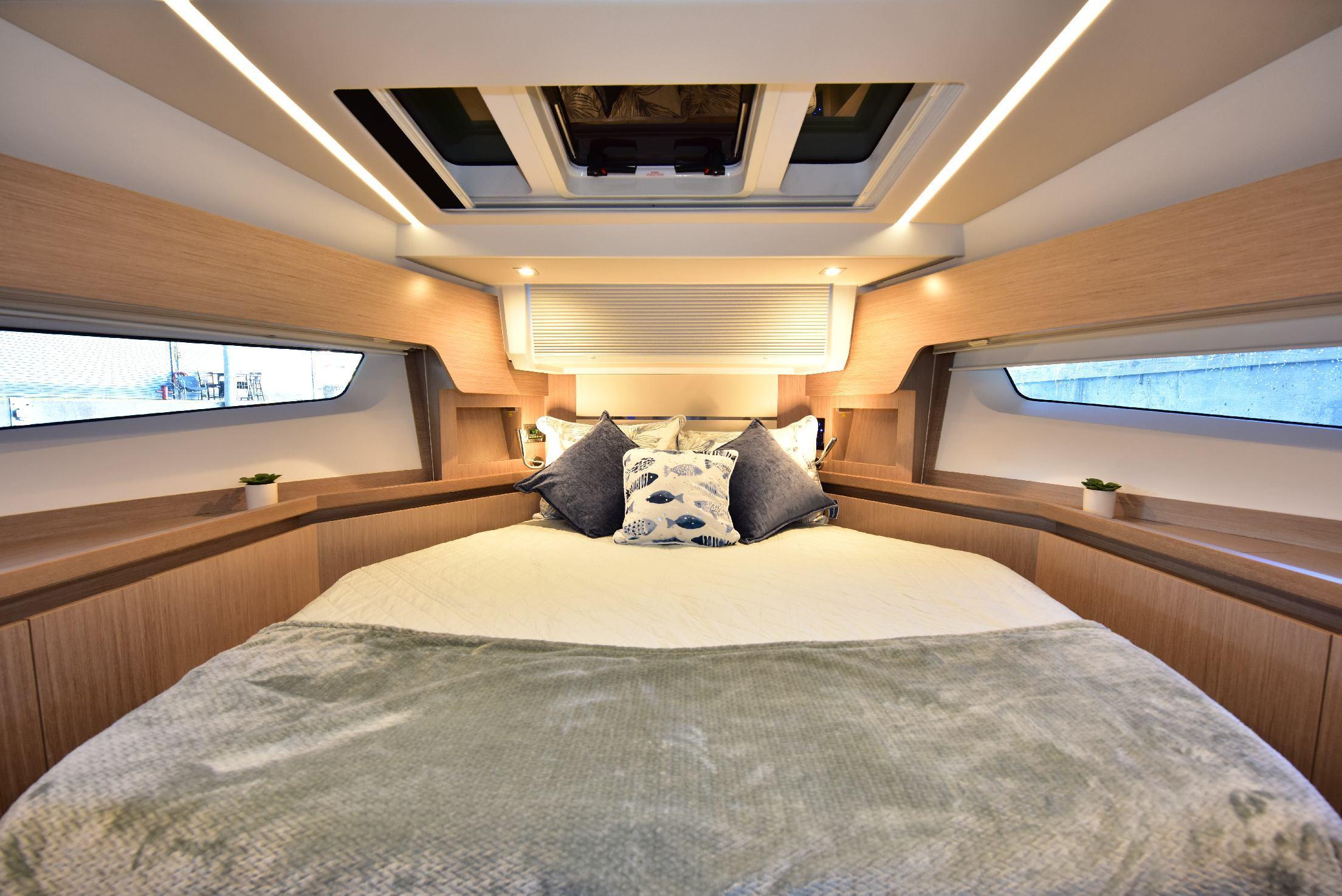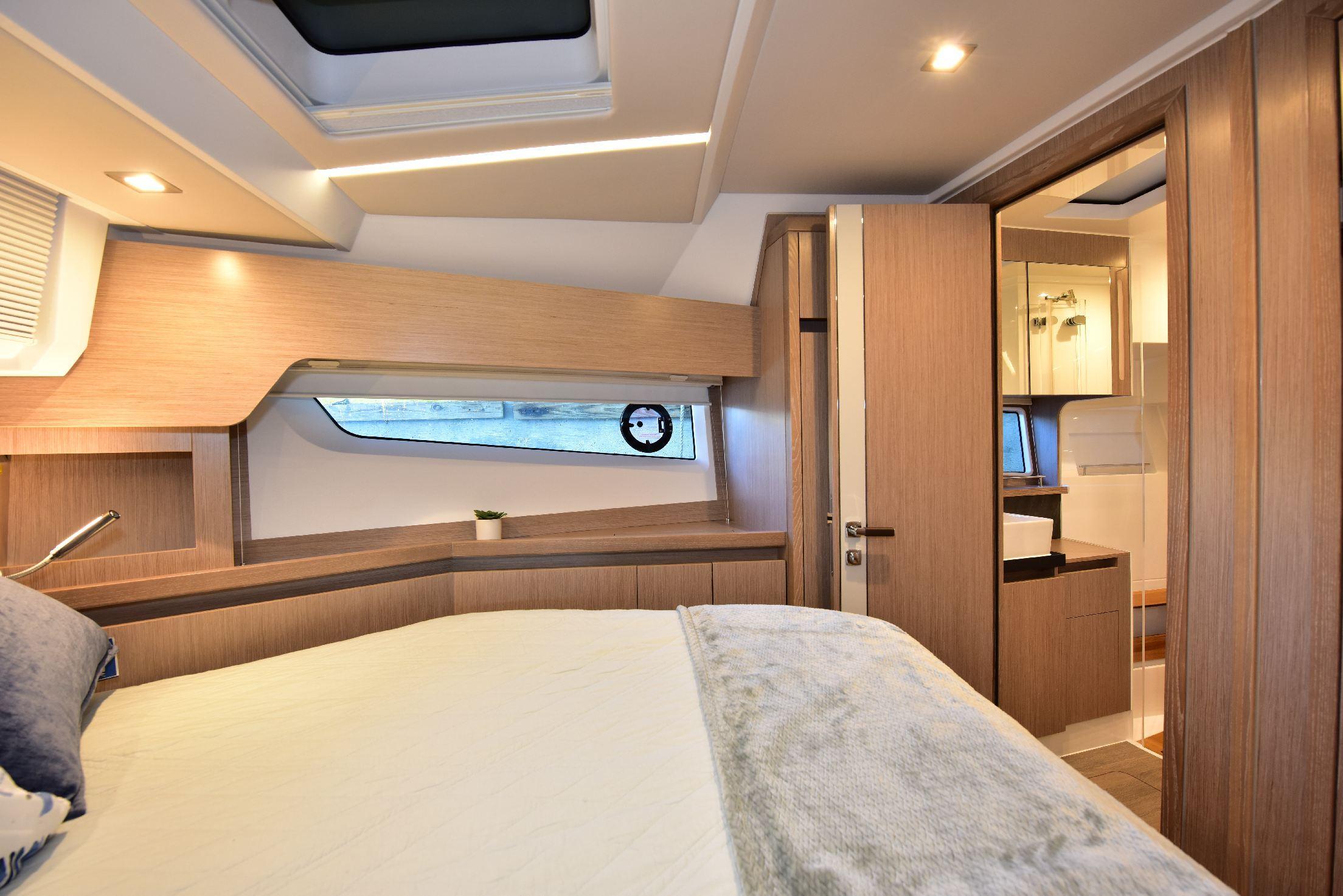 2 DOUBLE CABINS ACROSS 43 FEETExclusive in the entire boating world: the C430 has two comprehensively equipped and luxuriously fitted double cabins.