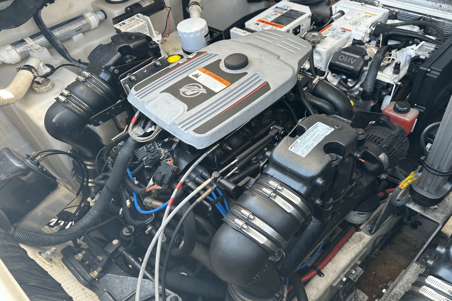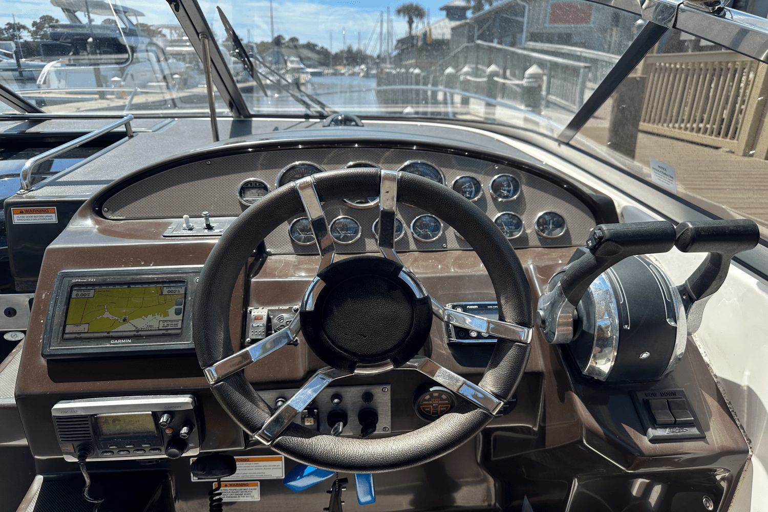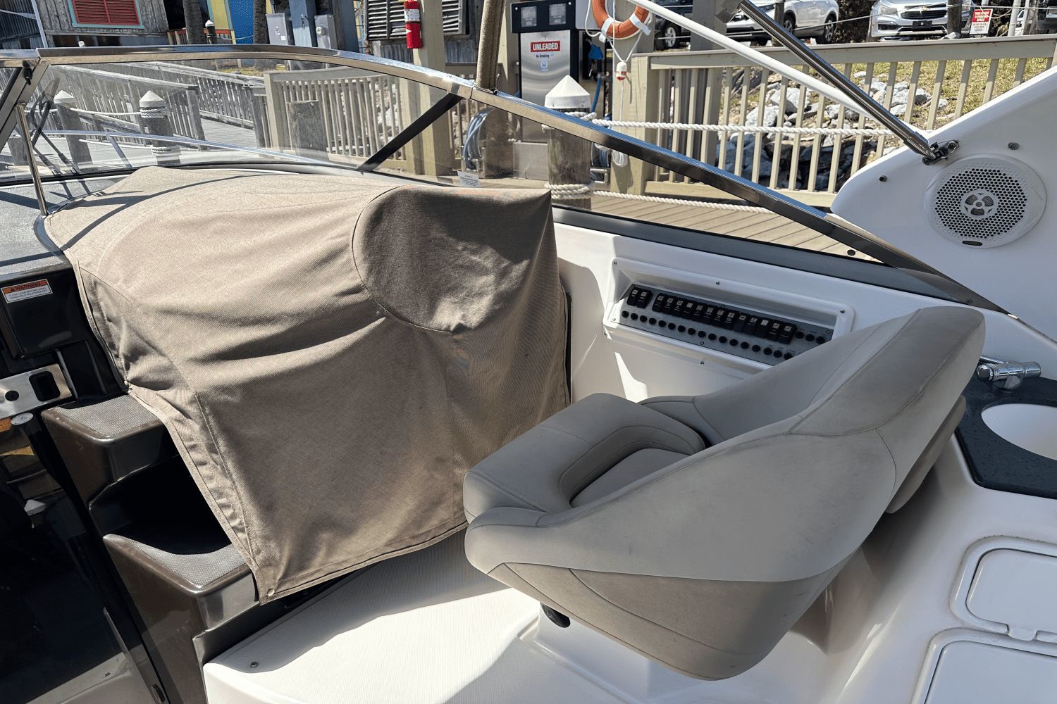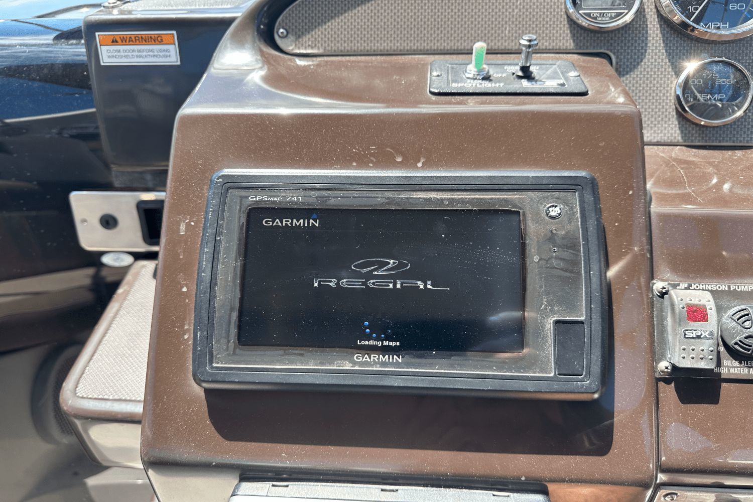Dry Stored on a Rack at MarineMax - 2015 Regal 30 Express - Tan HullDual Mercruiser 4.3MPI 220 HP engines "ONLY 269 HOURS"Kohler Generator Model: 5EKD "445 HOURS"This 2015 Regal 30 Express is designed for overnight trips and longer weekend excursions, featuring essential amenities like a galley (kitchen), a head (bathroom), and sleeping quarters. Just completed:1. Annual Engine Service on Mercruiser Engines2. Annual Generator Service on Kohler generator2015 Regal 30 Express include a full head, a convertible dinette, a galley with a microwave and refrigerator, a private aft berth, a full salon, an extended swim platform, a Kohler 5kw gas generator, a Garmin 741 GPS, a stereo, air conditioning and heating, an electric windlass with an anchor, and a sun pad. The boat also features large hull-side windows for natural light, a remote-controlled marine spot/flood light, trim tabs, and snap-in Seagrass mats on the deck.Below Deck/CabinAccommodations: Sleeps up to 4 with a forward convertible V-berth dinette and a queen-sized mid-cabin berth, a full head with a Vacuflush toilet, vanity, and handheld shower, and a private aft sleeping area.Galley: Features a single-burner electric stove, microwave, on-deck and cabin refrigerators, a stainless steel sink, hot water heater, and cherry-finished cabinetry.Comfort: Equipped with air conditioning and heating, premium vinyl seating, and ample storage solutions throughout.Entertainment: A Majestic Color TV with a DVD player and a Fusion Marine MS-IP 700i stereo with Bluetooth.On DeckHelm & Cockpit: A single helm seat, two cockpit sofas, and a sun pad are standard.Deck Equipment: An extended swim platform with a ladder, an electric windlass with a stainless steel Lewmar anchor, and trim tabs.Convenience: A transom shower, separate cabin and deck tables, and a marine spot/flood light with remote control.Mechanical & NavigationPower:A Kohler 5kw gas generator is included.Navigation:A Garmin 741 GPS with maps, a full ball compass, and Faria non-fogging gauges.Electronics:A Garmin Marine VHF radio