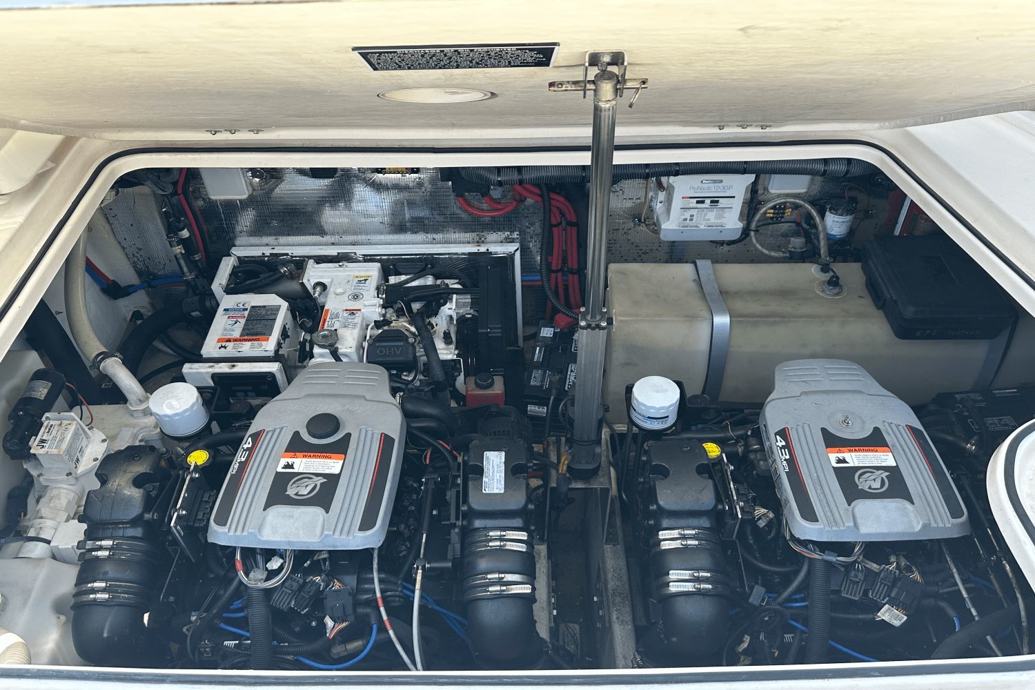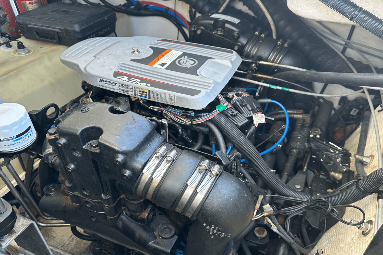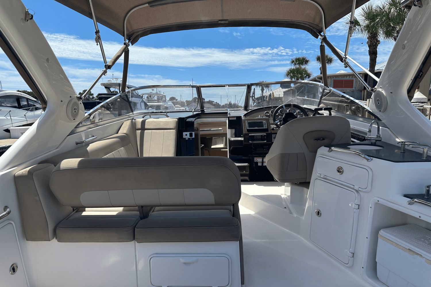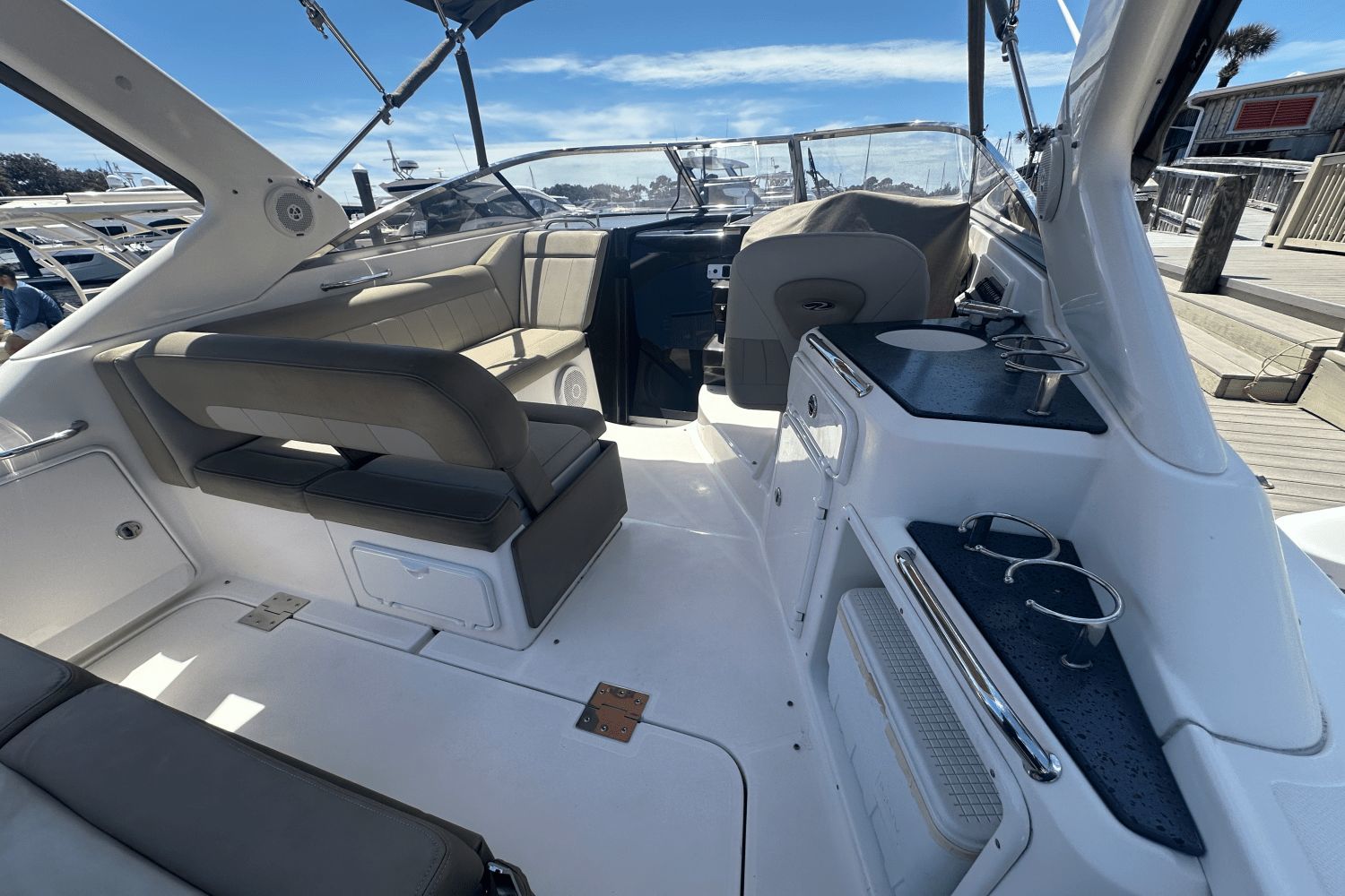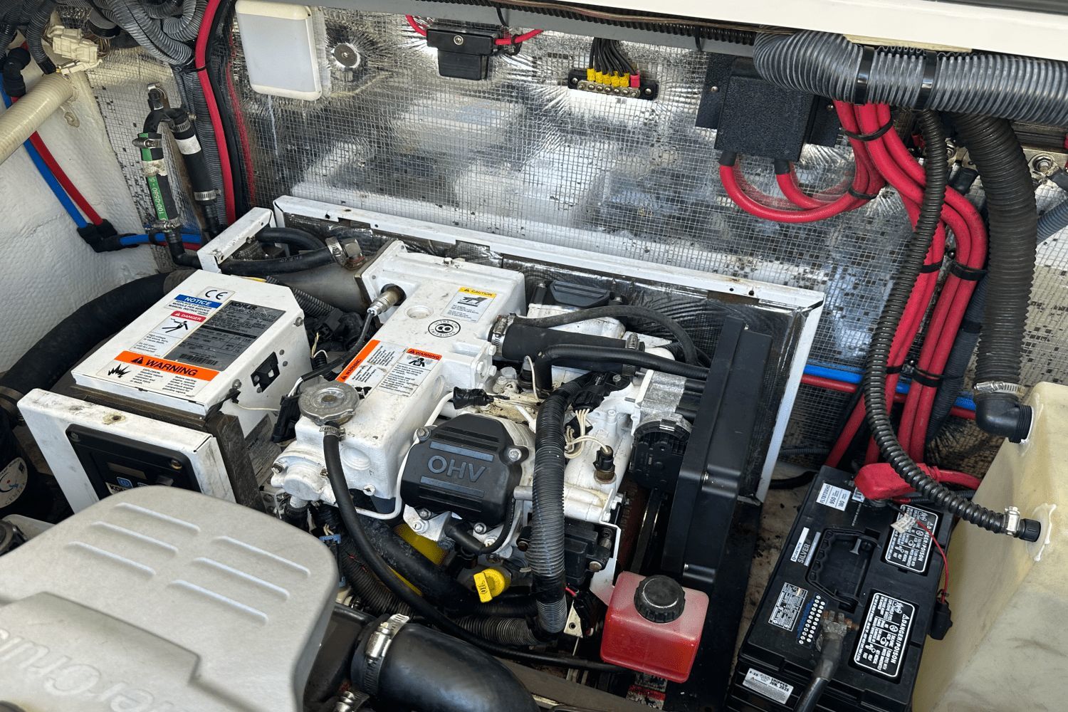 Dry Stored on a Rack at MarineMax - 2015 Regal 30 Express - Tan HullDual Mercruiser 4.3MPI 220 HP engines "ONLY 269 HOURS"Kohler Generator Model: 5EKD "445 HOURS"This 2015 Regal 30 Express is designed for overnight trips and longer weekend excursions, featuring essential amenities like a galley (kitchen), a head (bathroom), and sleeping quarters. Just completed:1. Annual Engine Service on Mercruiser Engines2. Annual Generator Service on Kohler generator2015 Regal 30 Express include a full head, a convertible dinette, a galley with a microwave and refrigerator, a private aft berth, a full salon, an extended swim platform, a Kohler 5kw gas generator, a Garmin 741 GPS, a stereo, air conditioning and heating, an electric windlass with an anchor, and a sun pad. The boat also features large hull-side windows for natural light, a remote-controlled marine spot/flood light, trim tabs, and snap-in Seagrass mats on the deck.Below Deck/CabinAccommodations: Sleeps up to 4 with a forward convertible V-berth dinette and a queen-sized mid-cabin berth, a full head with a Vacuflush toilet, vanity, and handheld shower, and a private aft sleeping area.Galley: Features a single-burner electric stove, microwave, on-deck and cabin refrigerators, a stainless steel sink, hot water heater, and cherry-finished cabinetry.Comfort: Equipped with air conditioning and heating, premium vinyl seating, and ample storage solutions throughout.Entertainment: A Majestic Color TV with a DVD player and a Fusion Marine MS-IP 700i stereo with Bluetooth.On DeckHelm & Cockpit: A single helm seat, two cockpit sofas, and a sun pad are standard.Deck Equipment: An extended swim platform with a ladder, an electric windlass with a stainless steel Lewmar anchor, and trim tabs.Convenience: A transom shower, separate cabin and deck tables, and a marine spot/flood light with remote control.Mechanical & NavigationPower:A Kohler 5kw gas generator is included.Navigation:A Garmin 741 GPS with maps, a full ball compass, and Faria non-fogging gauges.Electronics:A Garmin Marine VHF radio