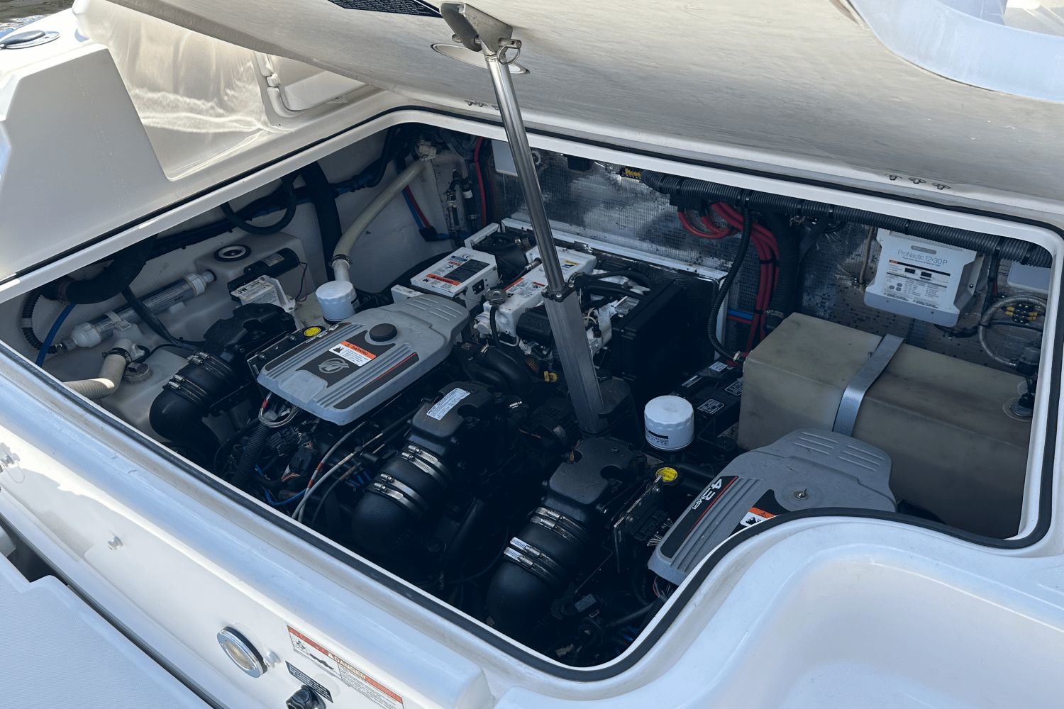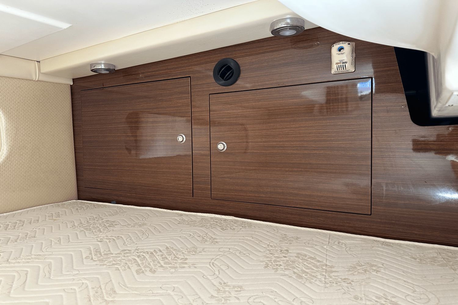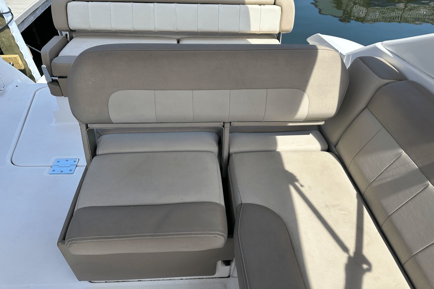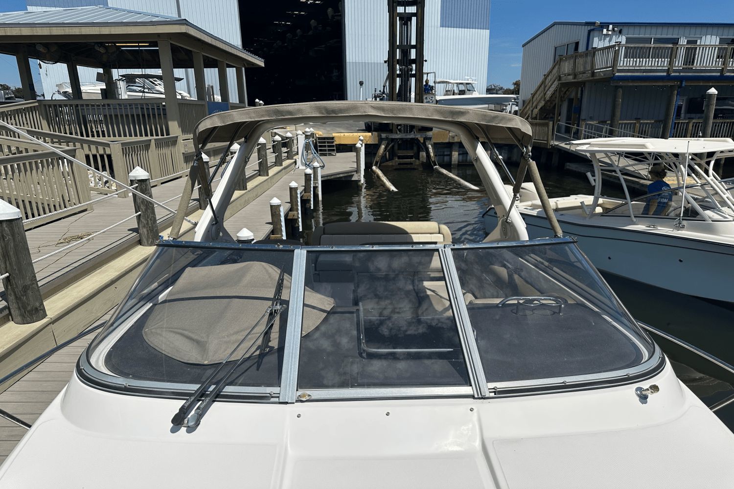 Dry Stored on a Rack at MarineMax - 2015 Regal 30 Express - Tan HullDual Mercruiser 4.3MPI 220 HP engines "ONLY 269 HOURS"Kohler Generator Model: 5EKD "445 HOURS"This 2015 Regal 30 Express is designed for overnight trips and longer weekend excursions, featuring essential amenities like a galley (kitchen), a head (bathroom), and sleeping quarters. Just completed:1. Annual Engine Service on Mercruiser Engines2. Annual Generator Service on Kohler generator2015 Regal 30 Express include a full head, a convertible dinette, a galley with a microwave and refrigerator, a private aft berth, a full salon, an extended swim platform, a Kohler 5kw gas generator, a Garmin 741 GPS, a stereo, air conditioning and heating, an electric windlass with an anchor, and a sun pad. The boat also features large hull-side windows for natural light, a remote-controlled marine spot/flood light, trim tabs, and snap-in Seagrass mats on the deck.Below Deck/CabinAccommodations: Sleeps up to 4 with a forward convertible V-berth dinette and a queen-sized mid-cabin berth, a full head with a Vacuflush toilet, vanity, and handheld shower, and a private aft sleeping area.Galley: Features a single-burner electric stove, microwave, on-deck and cabin refrigerators, a stainless steel sink, hot water heater, and cherry-finished cabinetry.Comfort: Equipped with air conditioning and heating, premium vinyl seating, and ample storage solutions throughout.Entertainment: A Majestic Color TV with a DVD player and a Fusion Marine MS-IP 700i stereo with Bluetooth.On DeckHelm & Cockpit: A single helm seat, two cockpit sofas, and a sun pad are standard.Deck Equipment: An extended swim platform with a ladder, an electric windlass with a stainless steel Lewmar anchor, and trim tabs.Convenience: A transom shower, separate cabin and deck tables, and a marine spot/flood light with remote control.Mechanical & NavigationPower:A Kohler 5kw gas generator is included.Navigation:A Garmin 741 GPS with maps, a full ball compass, and Faria non-fogging gauges.Electronics:A Garmin Marine VHF radio
