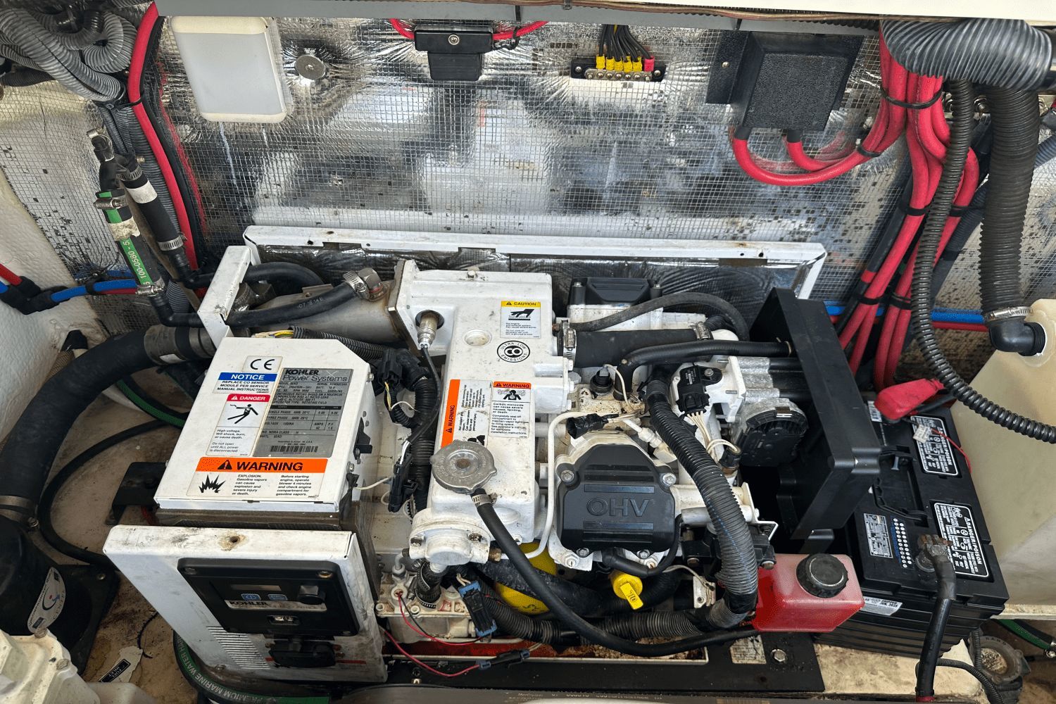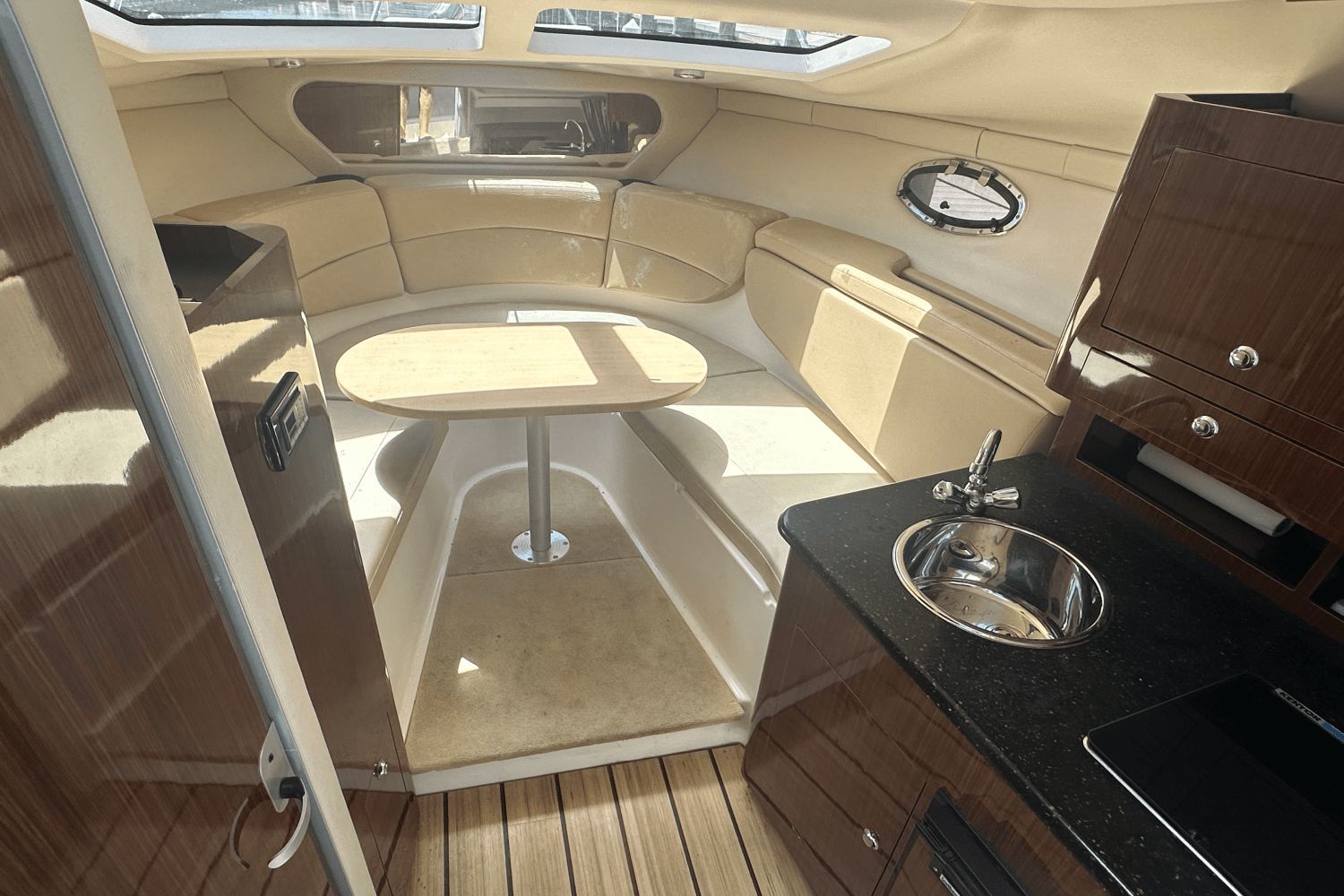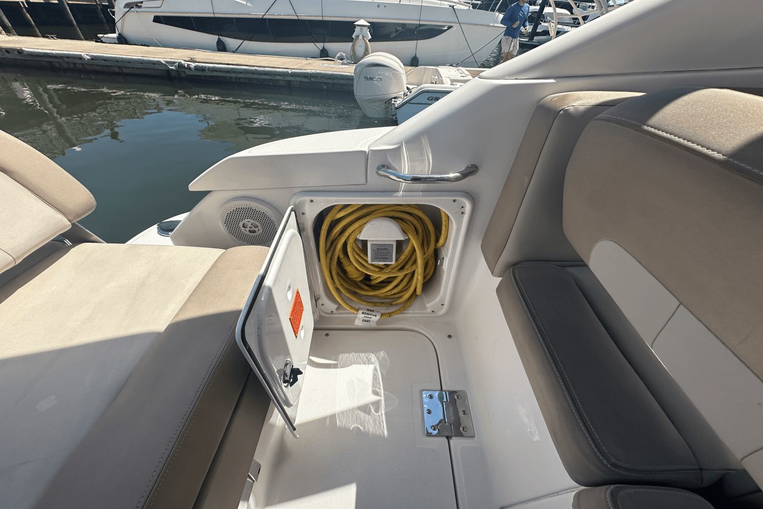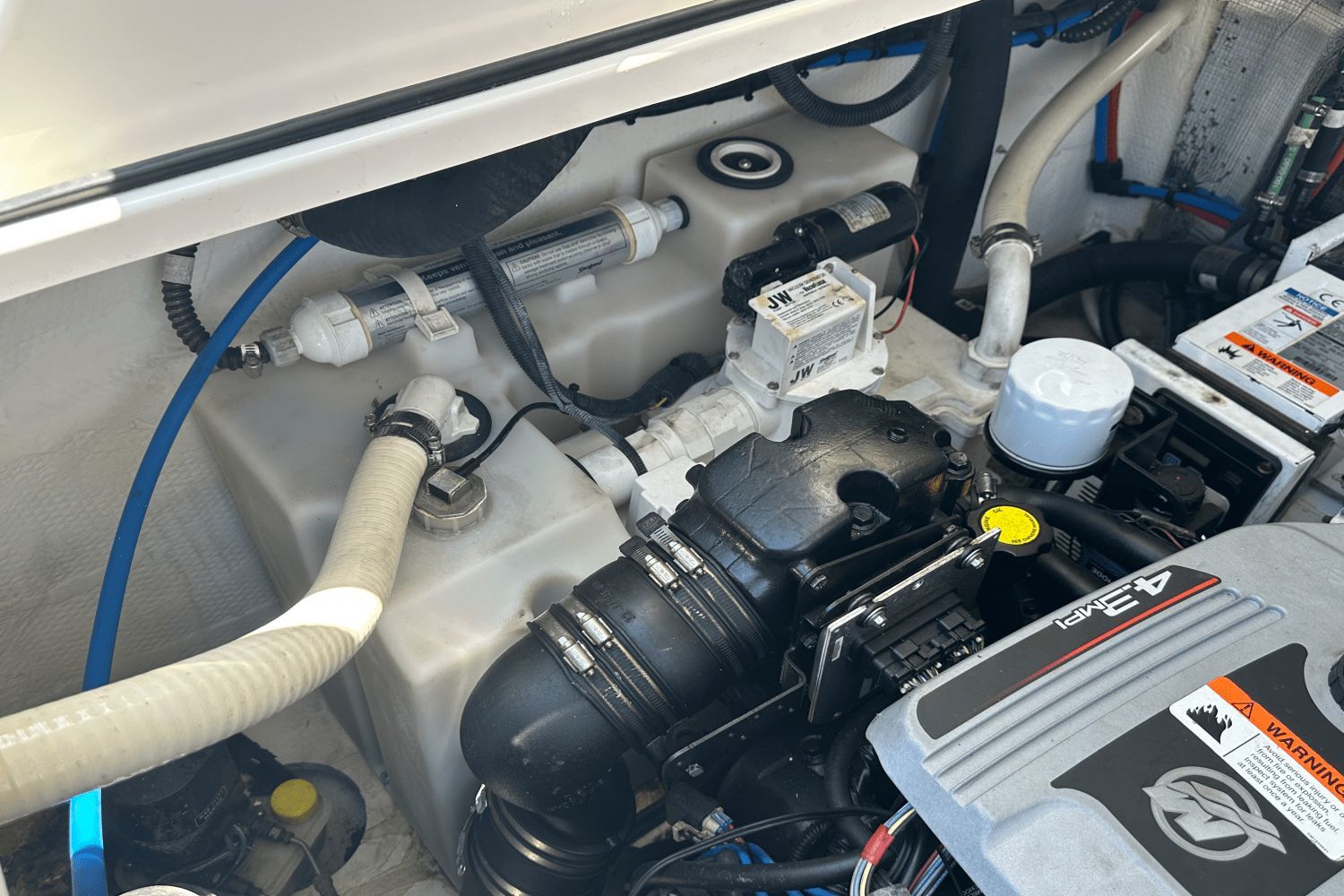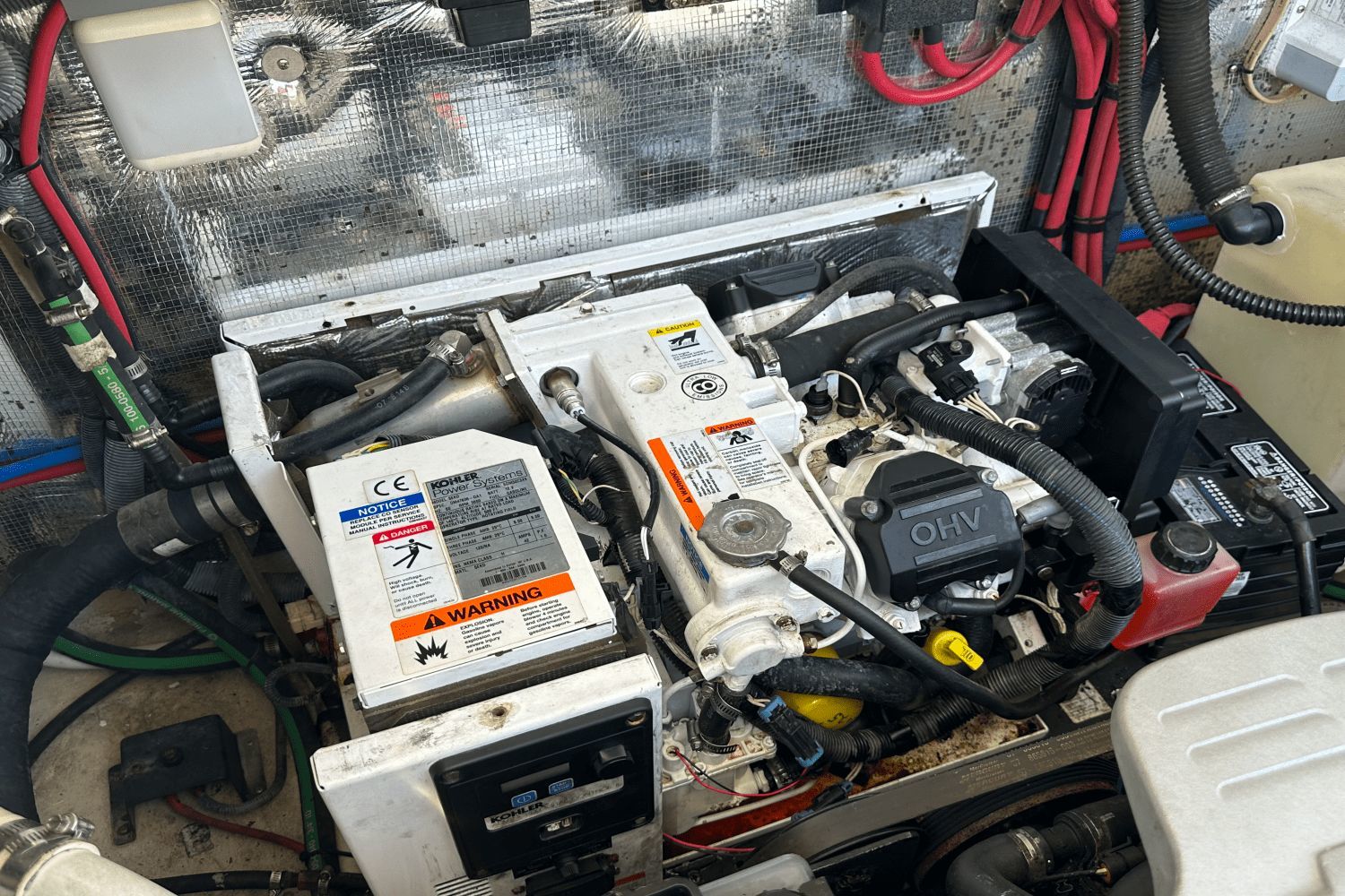 Dry Stored on a Rack at MarineMax - 2015 Regal 30 Express - Tan HullDual Mercruiser 4.3MPI 220 HP engines "ONLY 269 HOURS"Kohler Generator Model: 5EKD "445 HOURS"This 2015 Regal 30 Express is designed for overnight trips and longer weekend excursions, featuring essential amenities like a galley (kitchen), a head (bathroom), and sleeping quarters. Just completed:1. Annual Engine Service on Mercruiser Engines2. Annual Generator Service on Kohler generator2015 Regal 30 Express include a full head, a convertible dinette, a galley with a microwave and refrigerator, a private aft berth, a full salon, an extended swim platform, a Kohler 5kw gas generator, a Garmin 741 GPS, a stereo, air conditioning and heating, an electric windlass with an anchor, and a sun pad. The boat also features large hull-side windows for natural light, a remote-controlled marine spot/flood light, trim tabs, and snap-in Seagrass mats on the deck.Below Deck/CabinAccommodations: Sleeps up to 4 with a forward convertible V-berth dinette and a queen-sized mid-cabin berth, a full head with a Vacuflush toilet, vanity, and handheld shower, and a private aft sleeping area.Galley: Features a single-burner electric stove, microwave, on-deck and cabin refrigerators, a stainless steel sink, hot water heater, and cherry-finished cabinetry.Comfort: Equipped with air conditioning and heating, premium vinyl seating, and ample storage solutions throughout.Entertainment: A Majestic Color TV with a DVD player and a Fusion Marine MS-IP 700i stereo with Bluetooth.On DeckHelm & Cockpit: A single helm seat, two cockpit sofas, and a sun pad are standard.Deck Equipment: An extended swim platform with a ladder, an electric windlass with a stainless steel Lewmar anchor, and trim tabs.Convenience: A transom shower, separate cabin and deck tables, and a marine spot/flood light with remote control.Mechanical & NavigationPower:A Kohler 5kw gas generator is included.Navigation:A Garmin 741 GPS with maps, a full ball compass, and Faria non-fogging gauges.Electronics:A Garmin Marine VHF radio