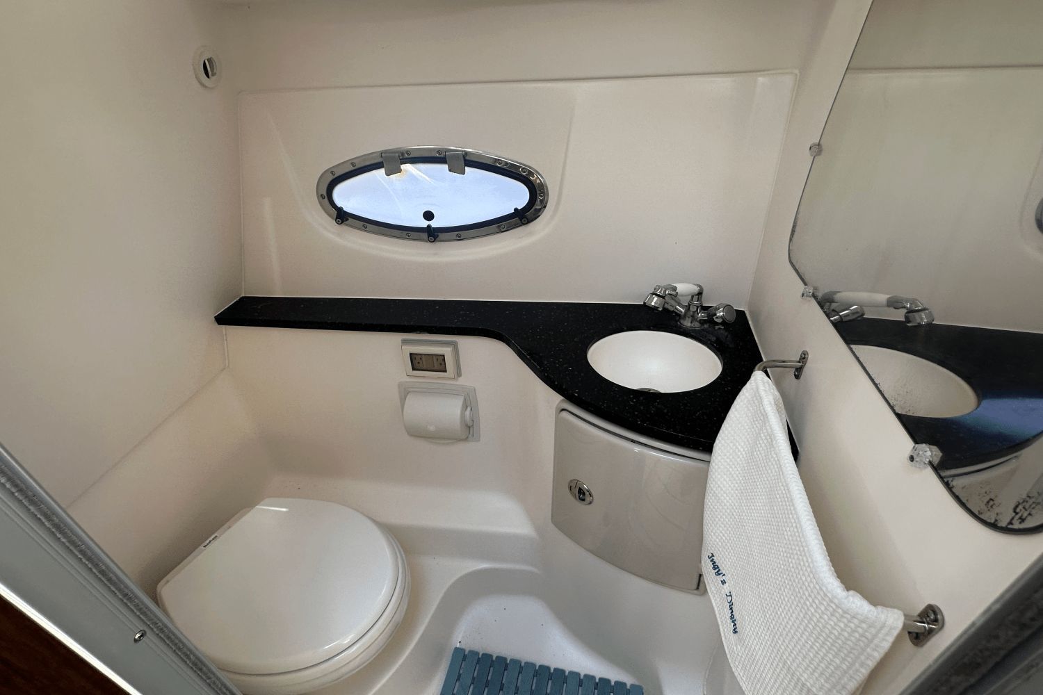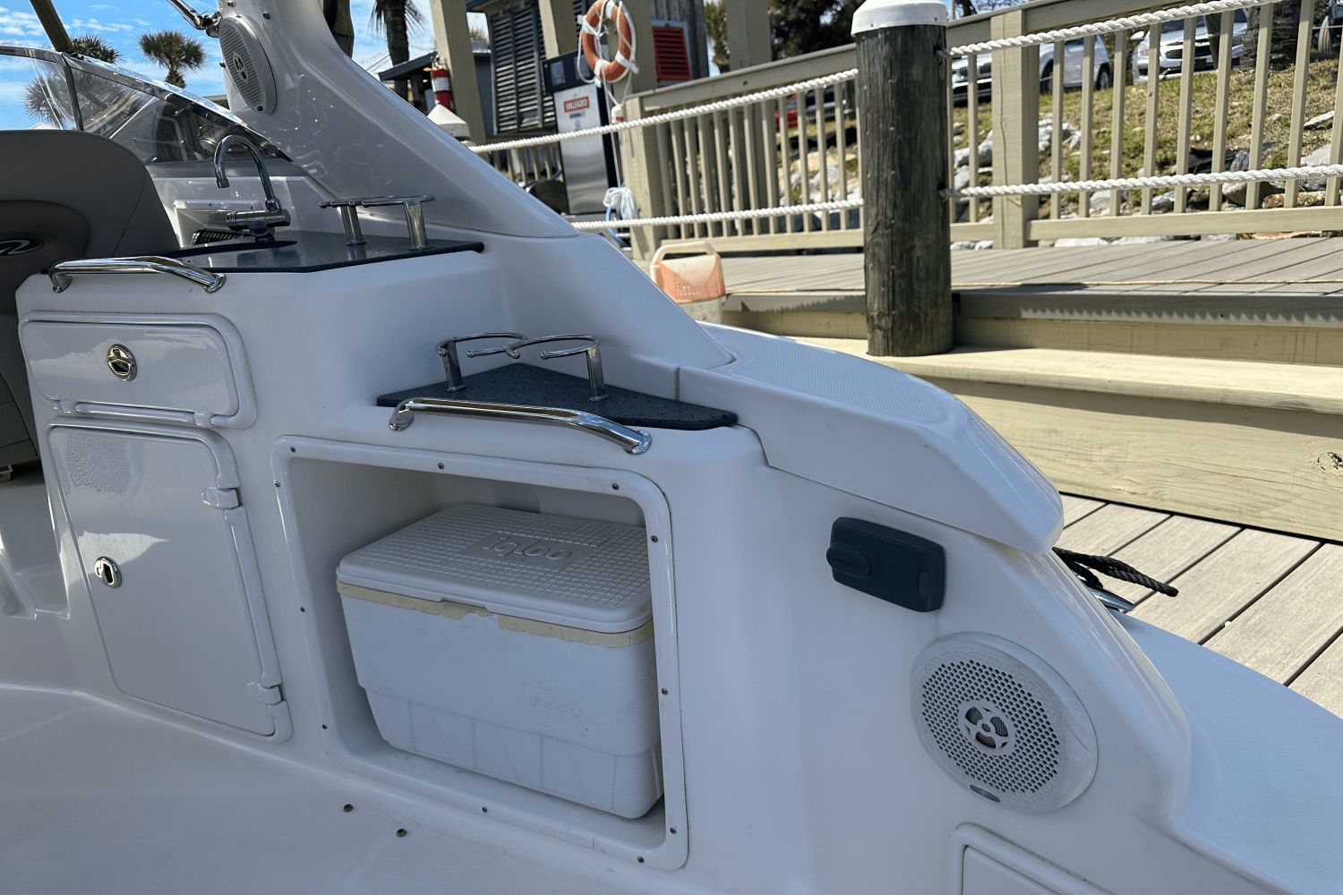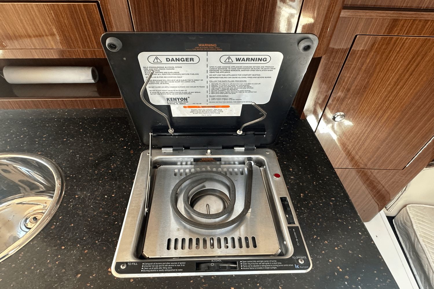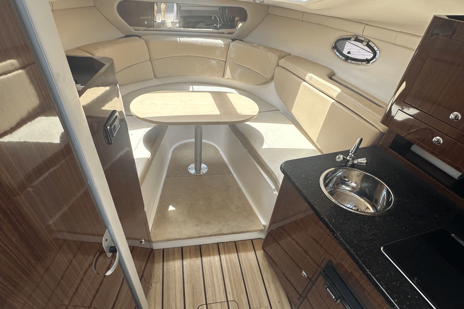 Dry Stored on a Rack at MarineMax - 2015 Regal 30 Express - Tan HullDual Mercruiser 4.3MPI 220 HP engines "ONLY 269 HOURS"Kohler Generator Model: 5EKD "445 HOURS"This 2015 Regal 30 Express is designed for overnight trips and longer weekend excursions, featuring essential amenities like a galley (kitchen), a head (bathroom), and sleeping quarters. Just completed:1. Annual Engine Service on Mercruiser Engines2. Annual Generator Service on Kohler generator2015 Regal 30 Express include a full head, a convertible dinette, a galley with a microwave and refrigerator, a private aft berth, a full salon, an extended swim platform, a Kohler 5kw gas generator, a Garmin 741 GPS, a stereo, air conditioning and heating, an electric windlass with an anchor, and a sun pad. The boat also features large hull-side windows for natural light, a remote-controlled marine spot/flood light, trim tabs, and snap-in Seagrass mats on the deck.Below Deck/CabinAccommodations: Sleeps up to 4 with a forward convertible V-berth dinette and a queen-sized mid-cabin berth, a full head with a Vacuflush toilet, vanity, and handheld shower, and a private aft sleeping area.Galley: Features a single-burner electric stove, microwave, on-deck and cabin refrigerators, a stainless steel sink, hot water heater, and cherry-finished cabinetry.Comfort: Equipped with air conditioning and heating, premium vinyl seating, and ample storage solutions throughout.Entertainment: A Majestic Color TV with a DVD player and a Fusion Marine MS-IP 700i stereo with Bluetooth.On DeckHelm & Cockpit: A single helm seat, two cockpit sofas, and a sun pad are standard.Deck Equipment: An extended swim platform with a ladder, an electric windlass with a stainless steel Lewmar anchor, and trim tabs.Convenience: A transom shower, separate cabin and deck tables, and a marine spot/flood light with remote control.Mechanical & NavigationPower:A Kohler 5kw gas generator is included.Navigation:A Garmin 741 GPS with maps, a full ball compass, and Faria non-fogging gauges.Electronics:A Garmin Marine VHF radio