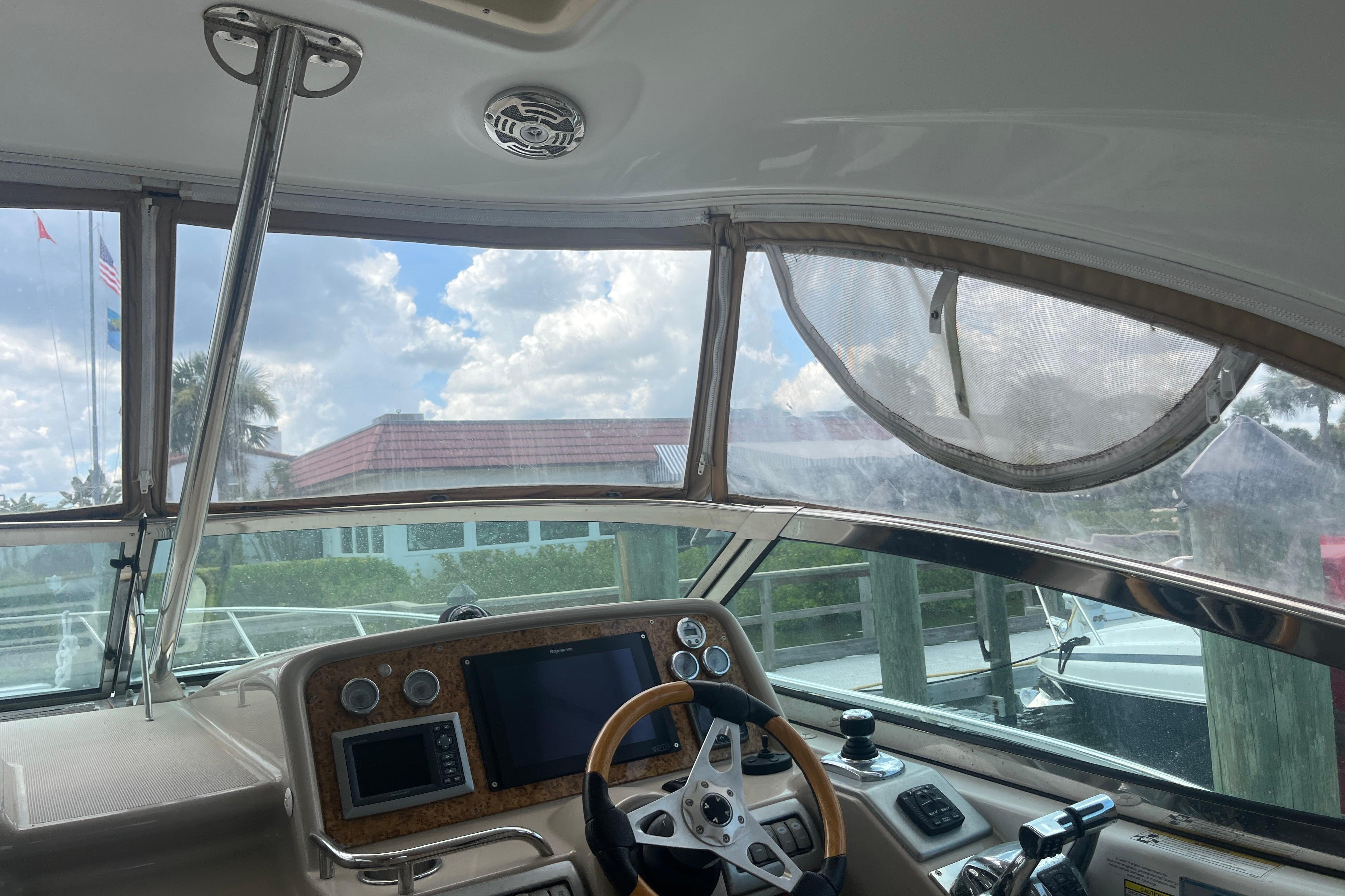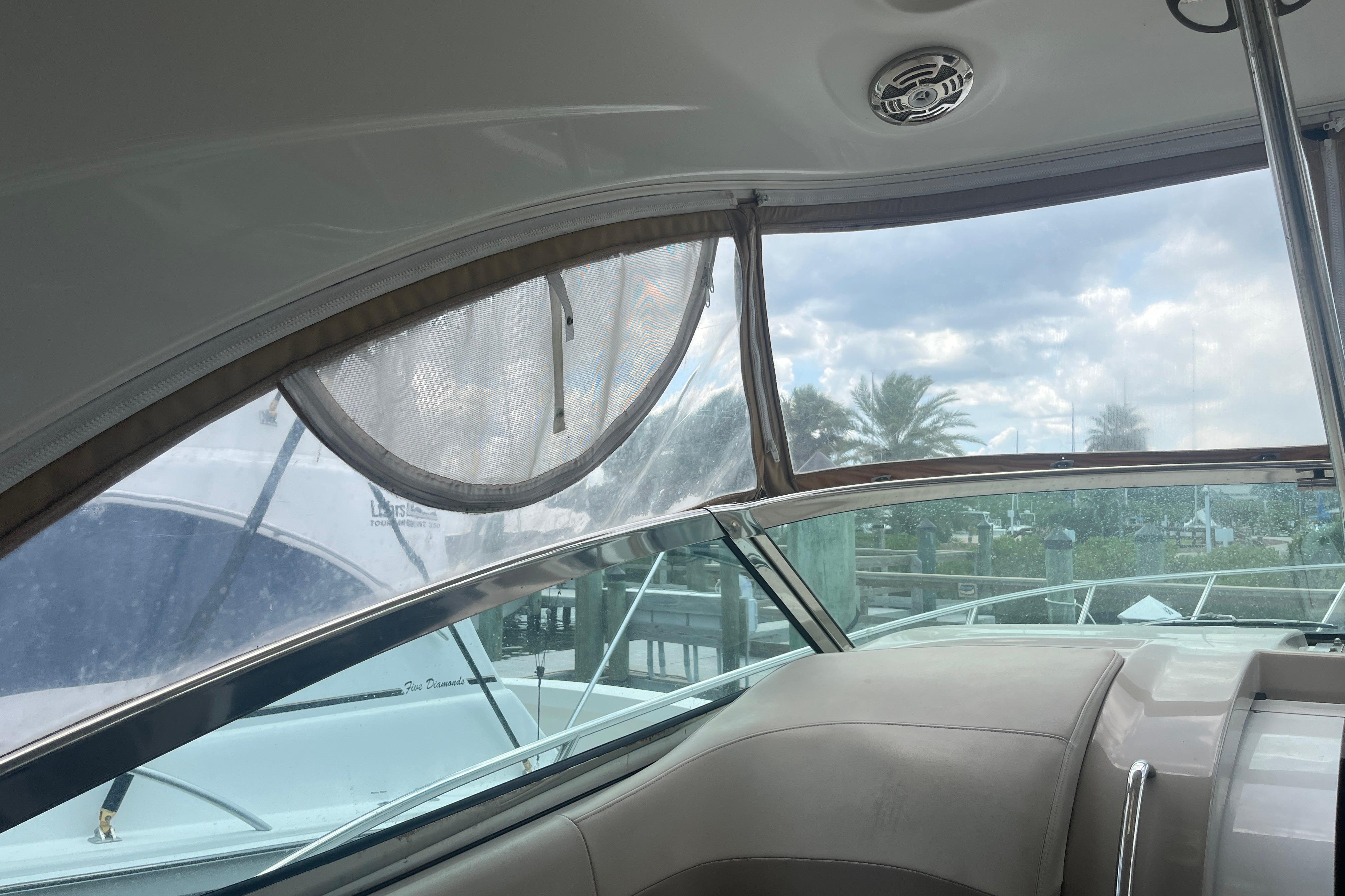 - Bimini top, front & side curtains w/easy-mount zipper connectors & extended aft cockpit enclosure in color-coordinated non-fading Sunbrella® acrylic fabric w/SeaMark™ vinyl undercoating