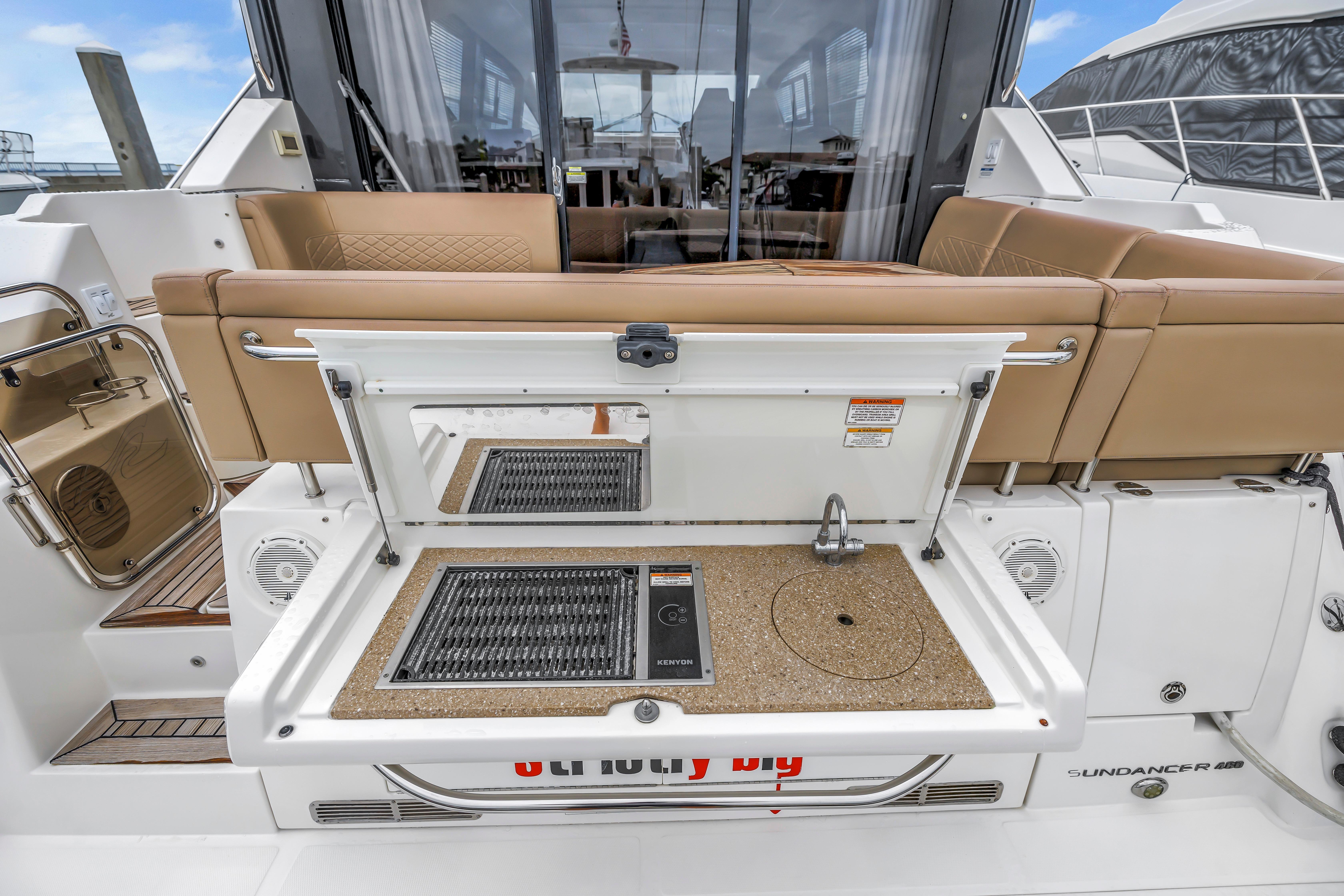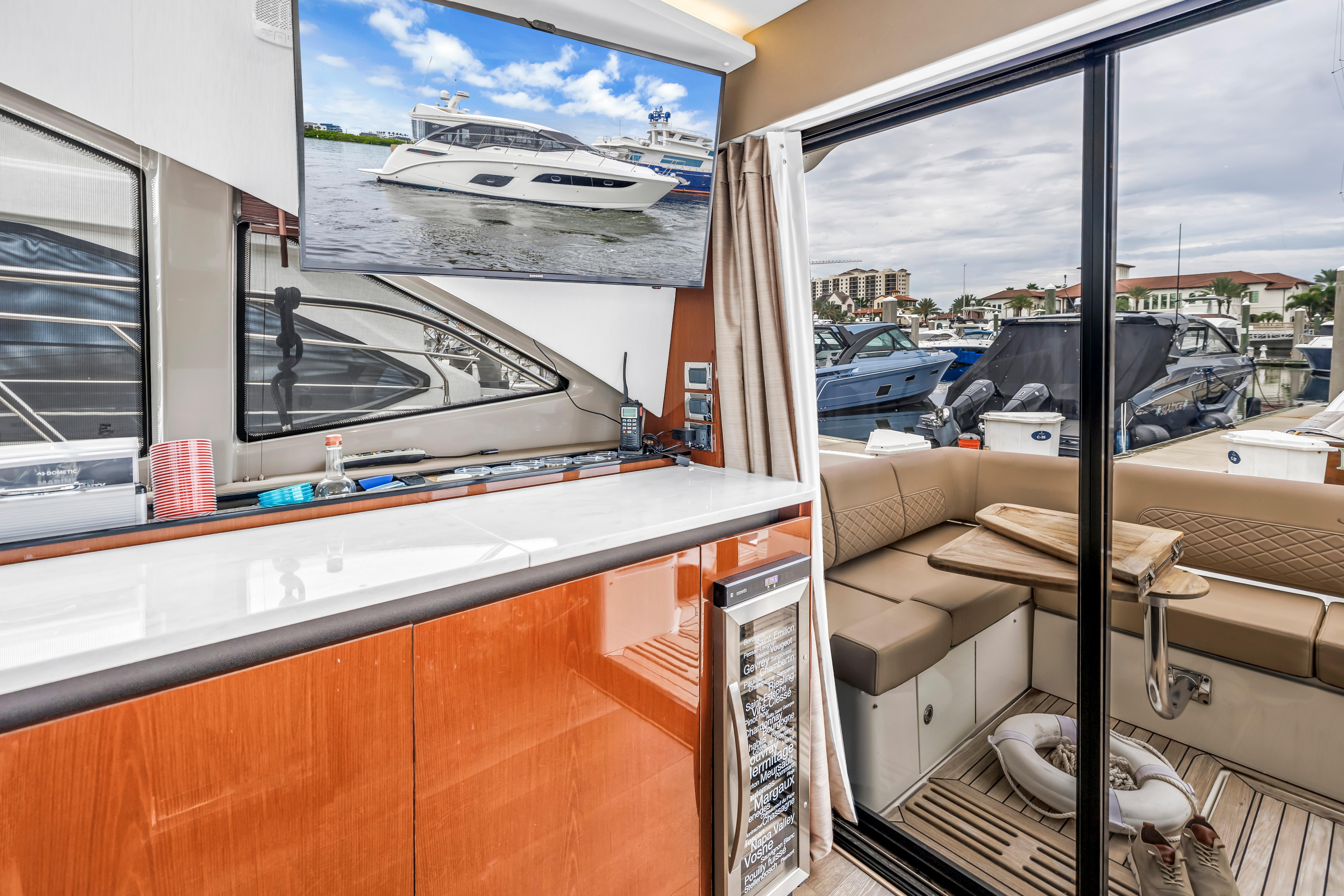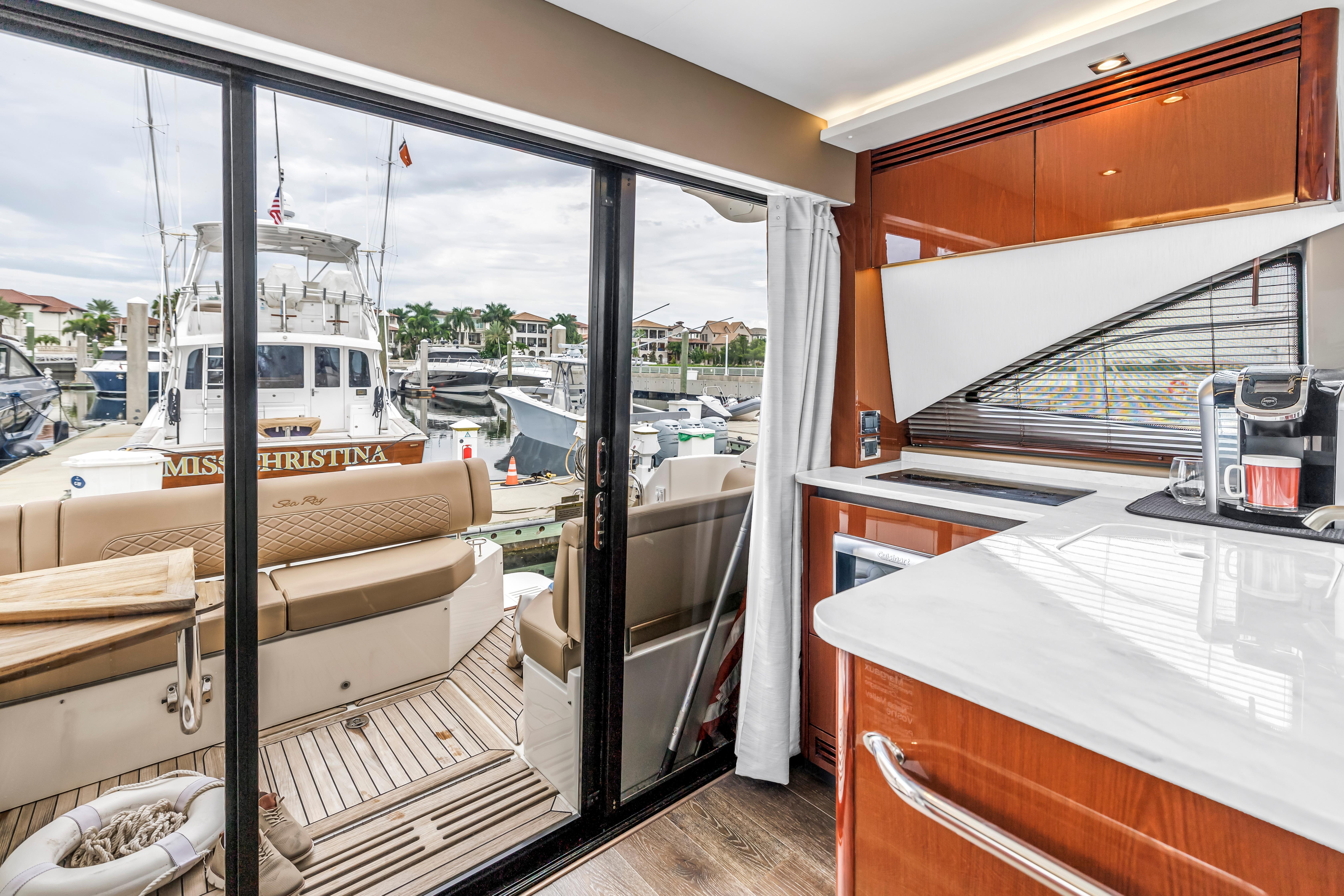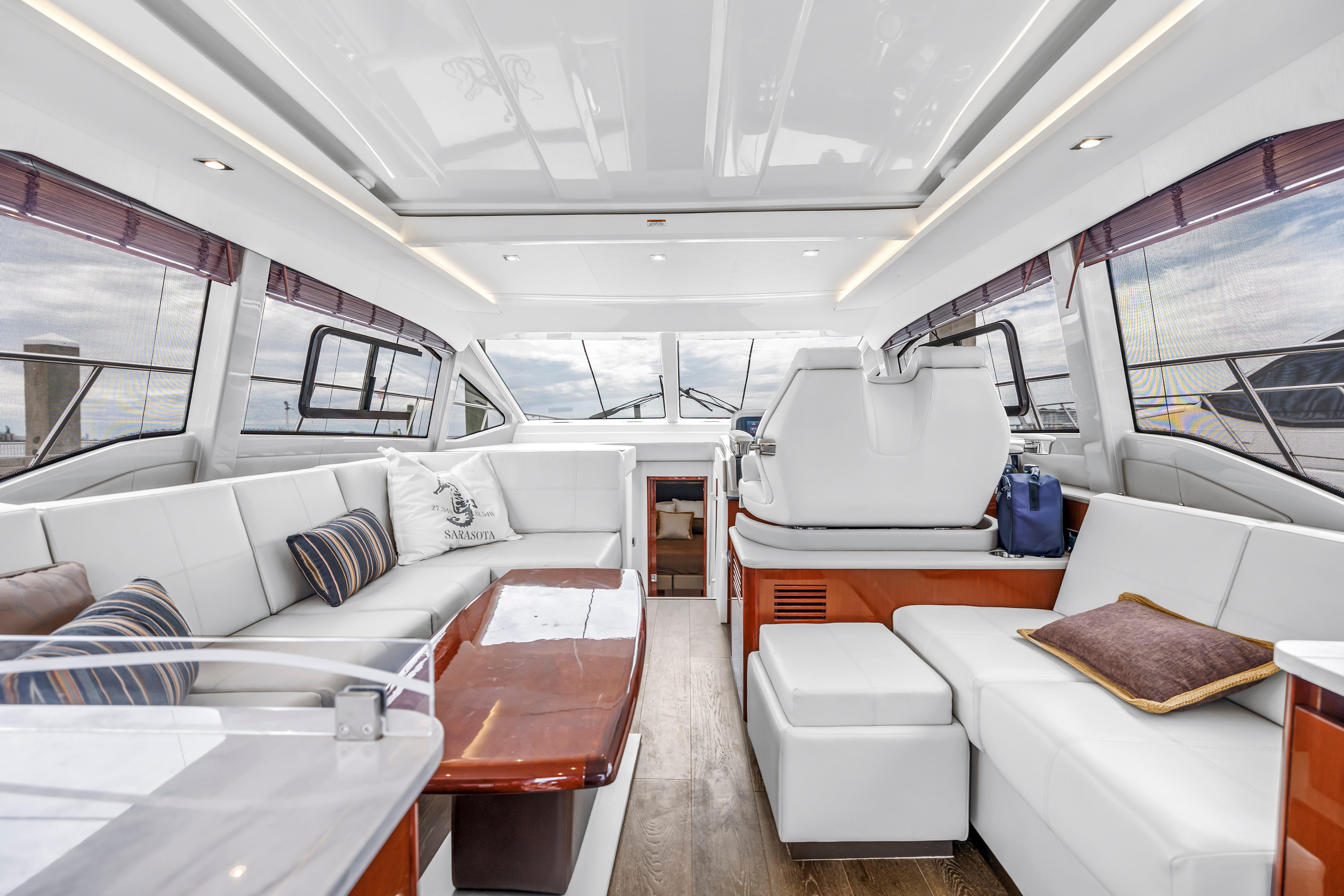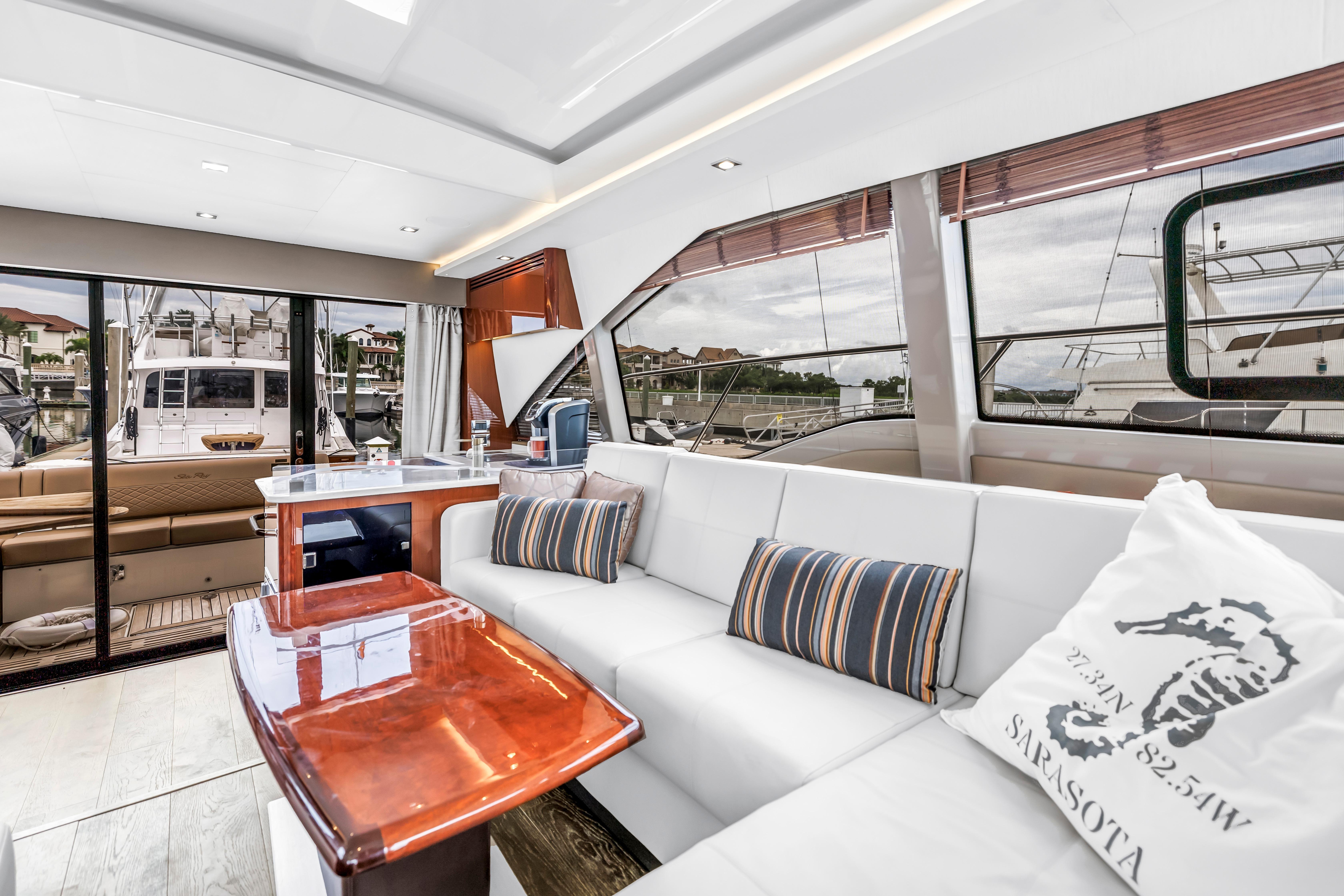 - Spacious enclosed sunroom seamlessly connects to the cockpit