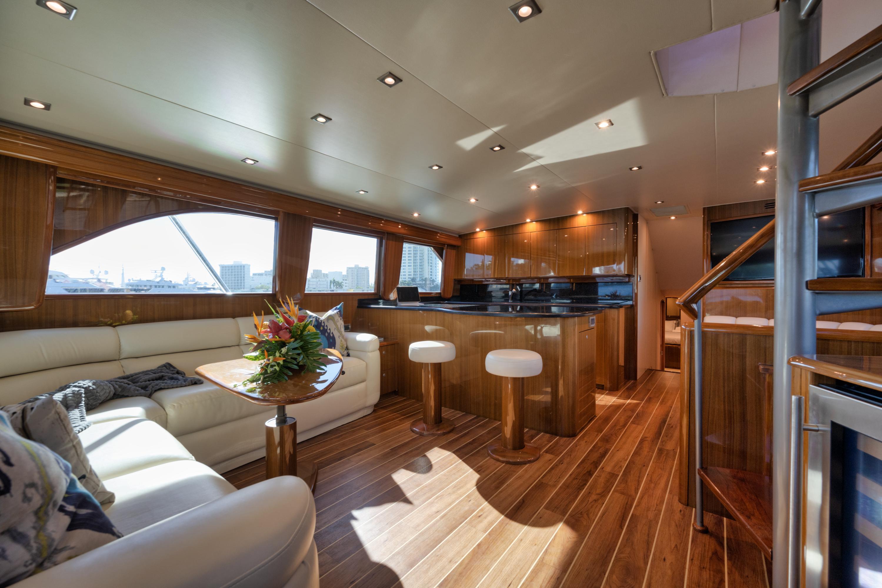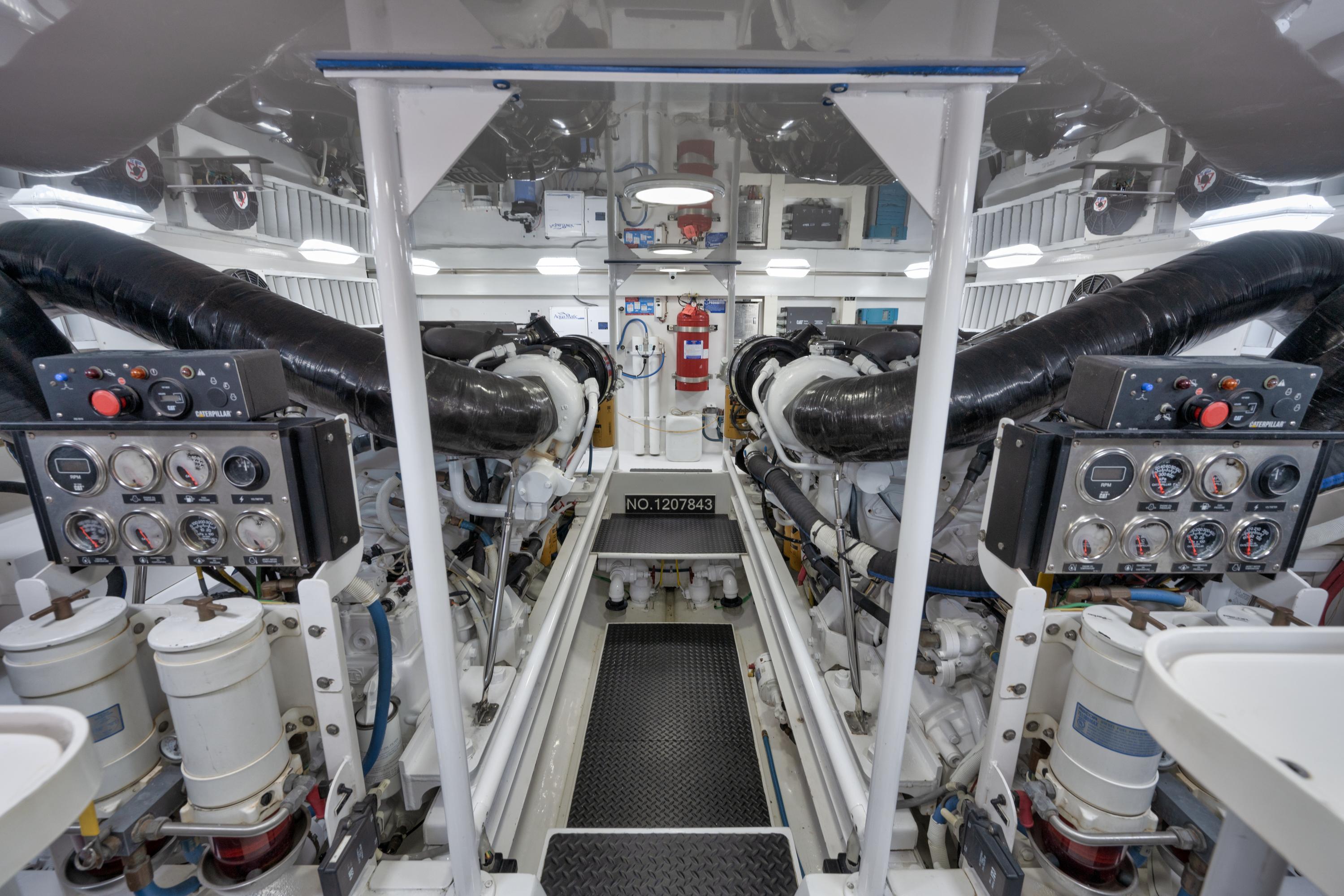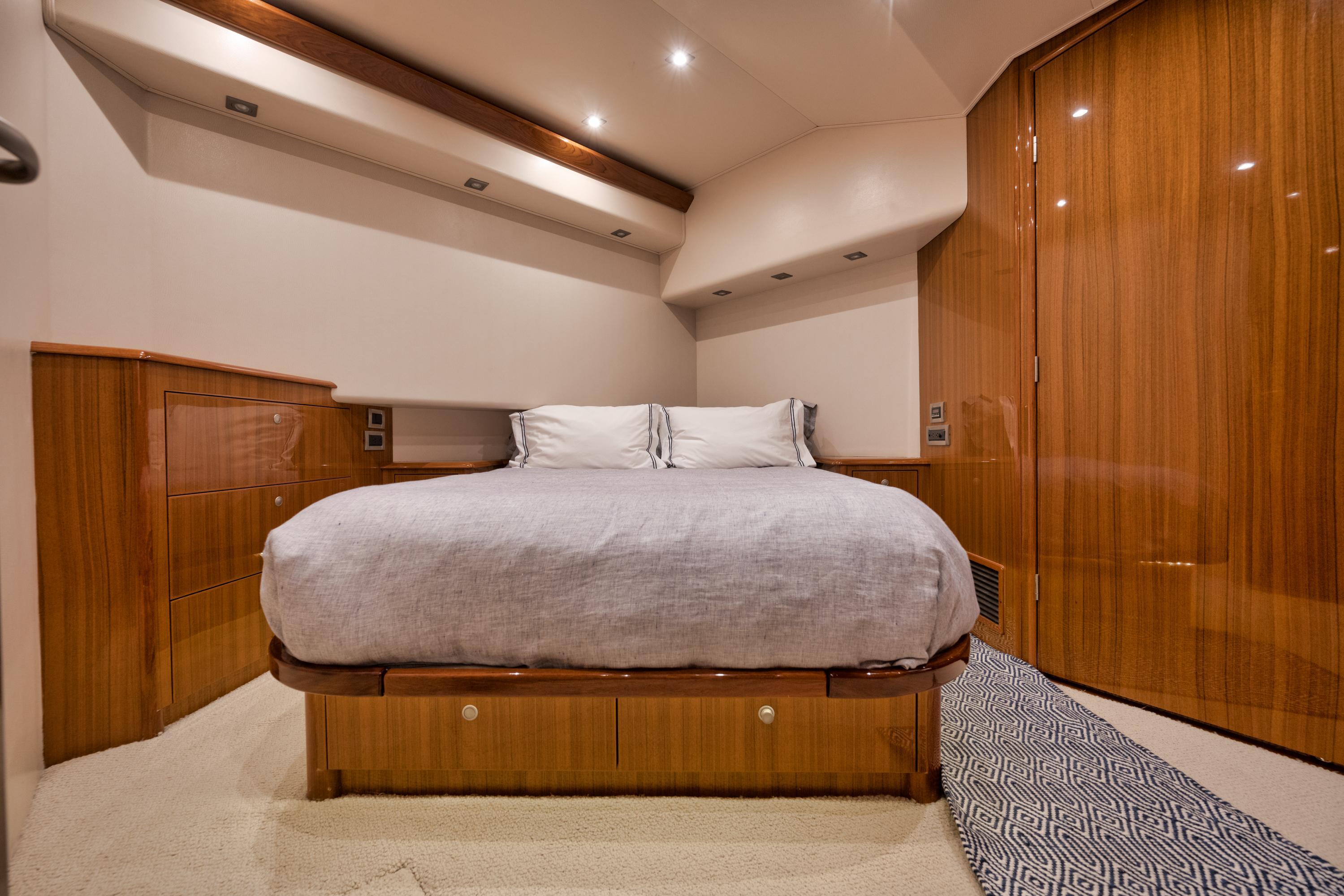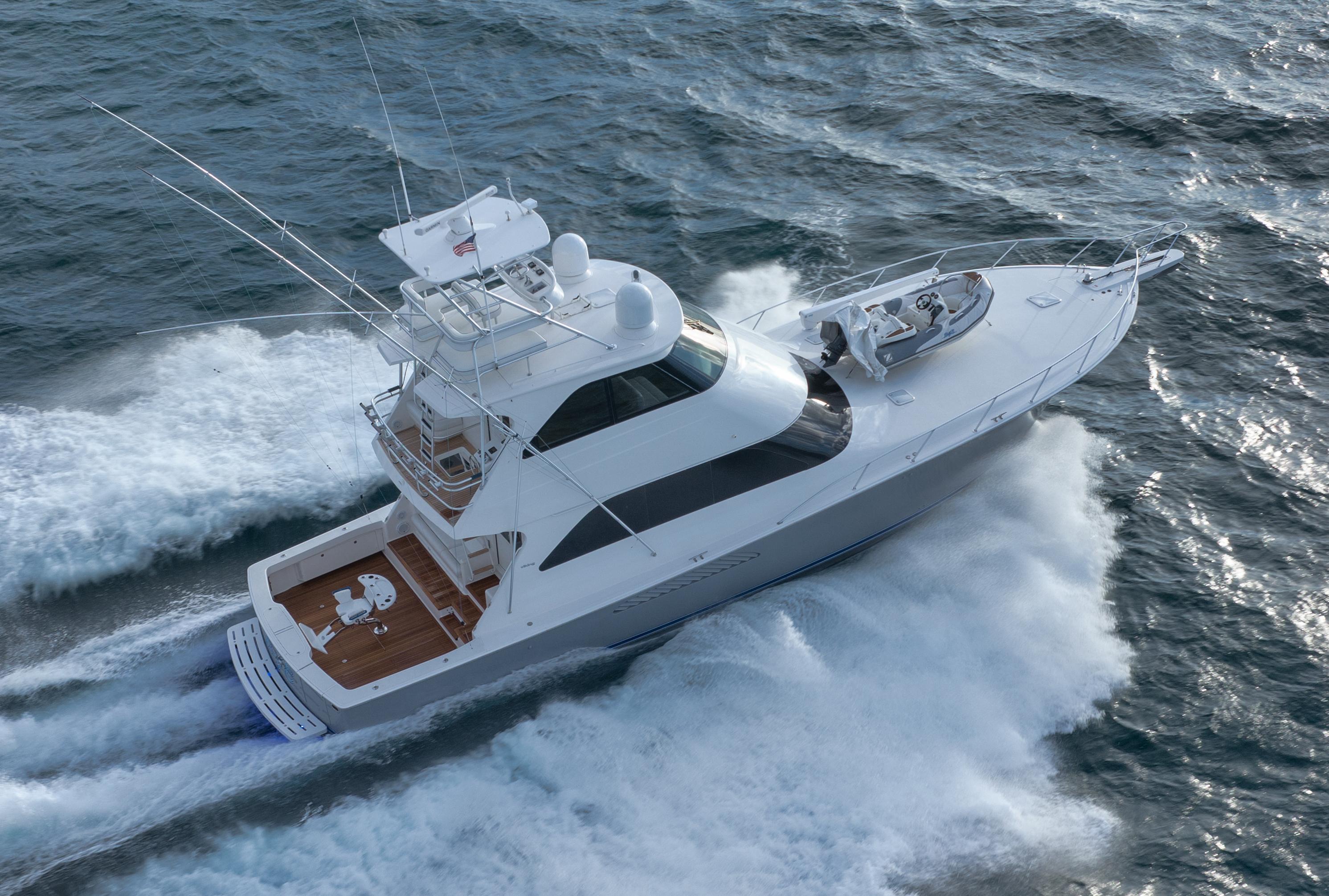 BIG E accommodates up to eight guests across four well-appointed staterooms, including a primary cabin and VIP, each with a queen berth offering enhanced comfort while onboard. Additional accommodations include a twin cabin with side-by-side berths and a second twin cabin with upper and lower bunks. Each stateroom is finished with rich wood cabinetry, generous storage, a private ensuite, and thoughtful detailing, ensuring a flexible and inviting layout for families or groups of friends.The interior of BIG E has a bright, open floor plan that flows effortlessly, blending comfort and functionality into an ideal setting for both relaxation and entertaining. Generous seating invites guests to gather, with a large L-shaped settee in the salon, a forward U-shaped dinette, and bar seating in the fully equipped galley. Designed with both practicality and style, the galley is fitted with granite countertops, refined finishes, and abundant storage. Expansive windows frame panoramic views and flood the space with natural light, while rich wood cabinetry and fine joinery add a warm, polished feel throughout.The spiral staircase in the salon leads directly to the enclosed bridge, a versatile space with lounge seating and sweeping views. Surrounded by large windows, it provides a comfortable vantage point for guests to enjoy the journey alongside the captain and serves as an additional social area that complements the salon below.Built for both serious fishing and comfortable cruising, BIG E offers excellent indoor–outdoor flow. The enclosed bridge features a well-equipped helm with modern Garmin electronics, while the cockpit is tournament-ready with a fighting chair, livewells, rod storage, mezzanine seating, and easy access to the flybridge ladder. Above it all, the Marlin tower offers a clear view for fishing and navigation.Key Features:Seakeeper 26 with annual service completed in 2025Marlin Tower was added in 2018 by Palm Beach Towers Medium Grey Imron hull paint done by Viking Service Center in 2018 LED lighting upgrade throughout the vesselHeadliners have been replacedNew Lumishore underwater lights with Garmin-controlled cockpit displayAll interior soft goods and exterior upholstery have been recently replacedThe bottom was soda blasted, primed, and painted