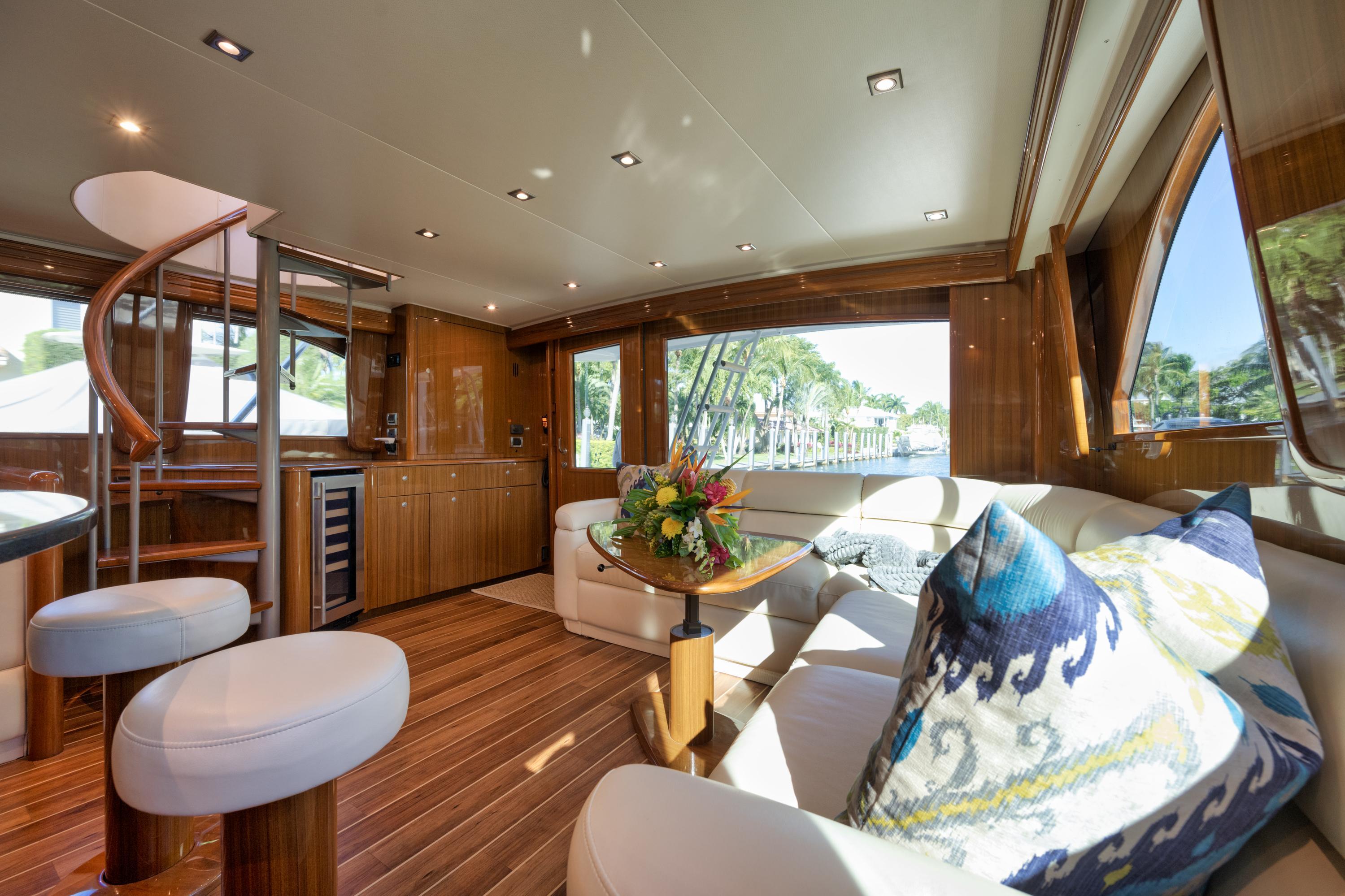 - Interior spiral staircase with teak steps to enclosed flybridge