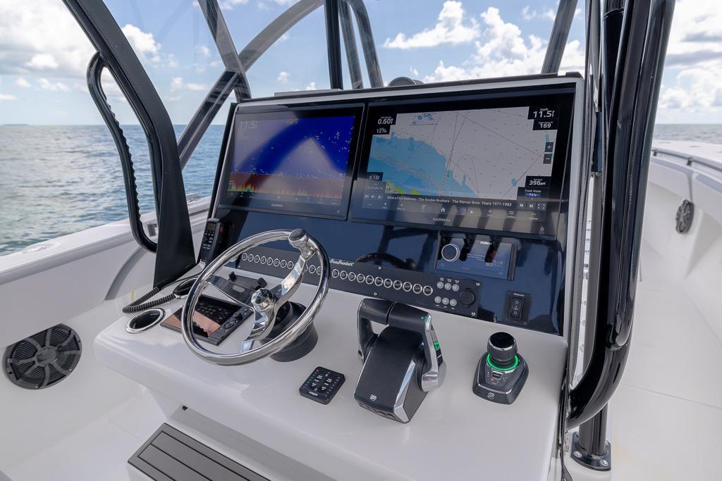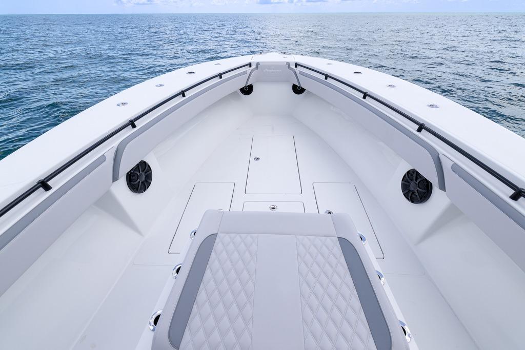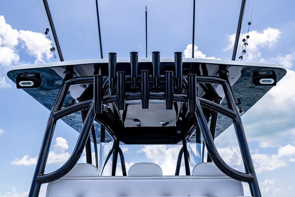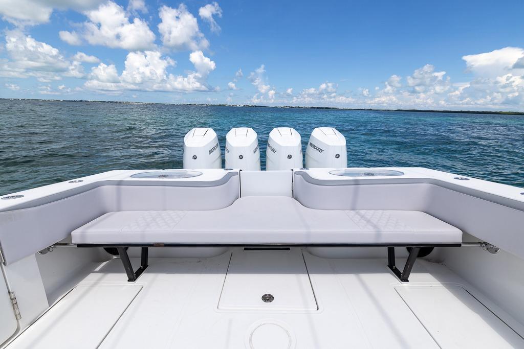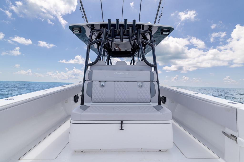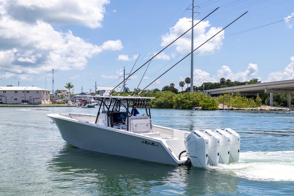 With an overall length of 39 feet 3 inches and a beamy 11’6” width, this fishing machine is at the top of its class for a good reason. The Seahunter Tournament 39 features eight power options and offers triple or quad outboard configurations. Like all Seahunters, it boasts a long list of standard features and an options list that is sure to accommodate any of your needs.