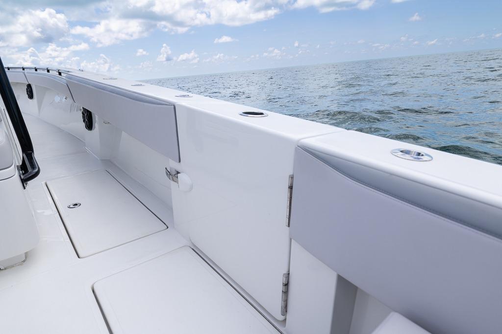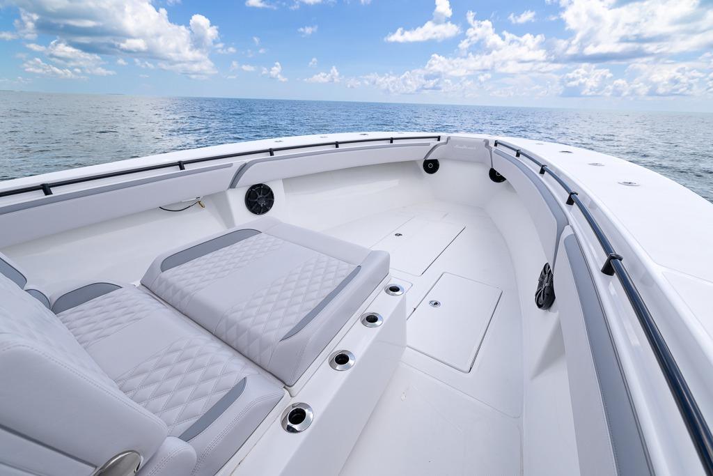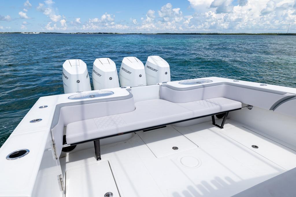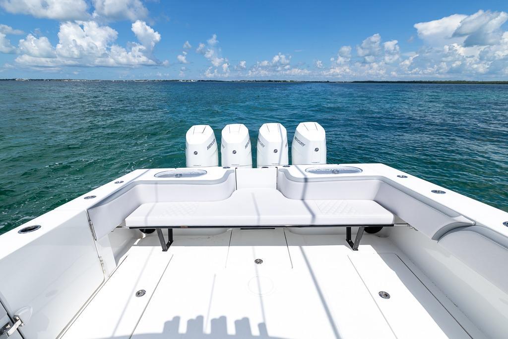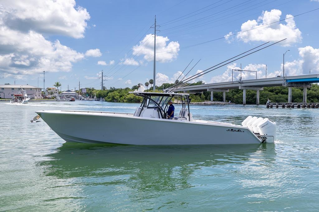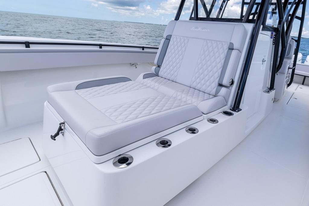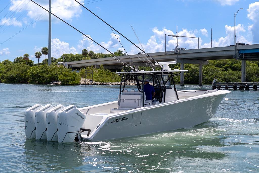 With an overall length of 39 feet 3 inches and a beamy 11’6” width, this fishing machine is at the top of its class for a good reason. The Seahunter Tournament 39 features eight power options and offers triple or quad outboard configurations. Like all Seahunters, it boasts a long list of standard features and an options list that is sure to accommodate any of your needs.
