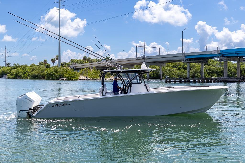 Financing Available! Call our Sales Team today!This is your opportunity to own a like-new 2024 SeaHunter 39 Tournament, one of the most capable and proven offshore center consoles in its class. Powered by quad Mercury 400 V10s with just 180 hours, this boat offers blistering performance, incredible range, and unmatched fishability — all in a rugged, tournament-ready package.Key Features:Quad Mercury 400 V10s – Only 180 hours, meticulously maintainedSpacious 39’ center console hull – renowned for stability, dry ride, and superior rough water handlingLoaded with premium options, including top-tier electronics, custom audio, upgraded upholstery, and moreMassive fish boxes, livewells, and storage – tournament-ready setupTwin Garmin GPS 9022'sGSD 25 1kw CHIRP Sounder, B265LH Transducer, and Network HubGarmin GMR 1234 xHD3 4' Open Array Radar Garmin VHF 315Wetsounds sound system – crystal-clear sound for entertainment at anchor or on the runPremium hardtop with integrated lighting and rod holdersSide Entry DoorMercury Joy Stick, Autopilot and SkyhookSealed Stainless Steel Pump Box w/ 4 1500 PumpsOutriggers: Gemlux Bluewater Complete Kit w/ 22' Carbon Fiber Poles18 Rod Holders2 Swivel Rod HoldersCondition:This boat is in excellent condition, always professionally maintained, cleaned, and stored with care. It's turnkey ready for serious fishing or high-end cruising, with all systems functioning flawlessly.Whether you're heading 100 miles offshore or enjoying a day on the sandbar, the SeaHunter 39 Tournament combines hardcore fishability with first-class comfort and style.