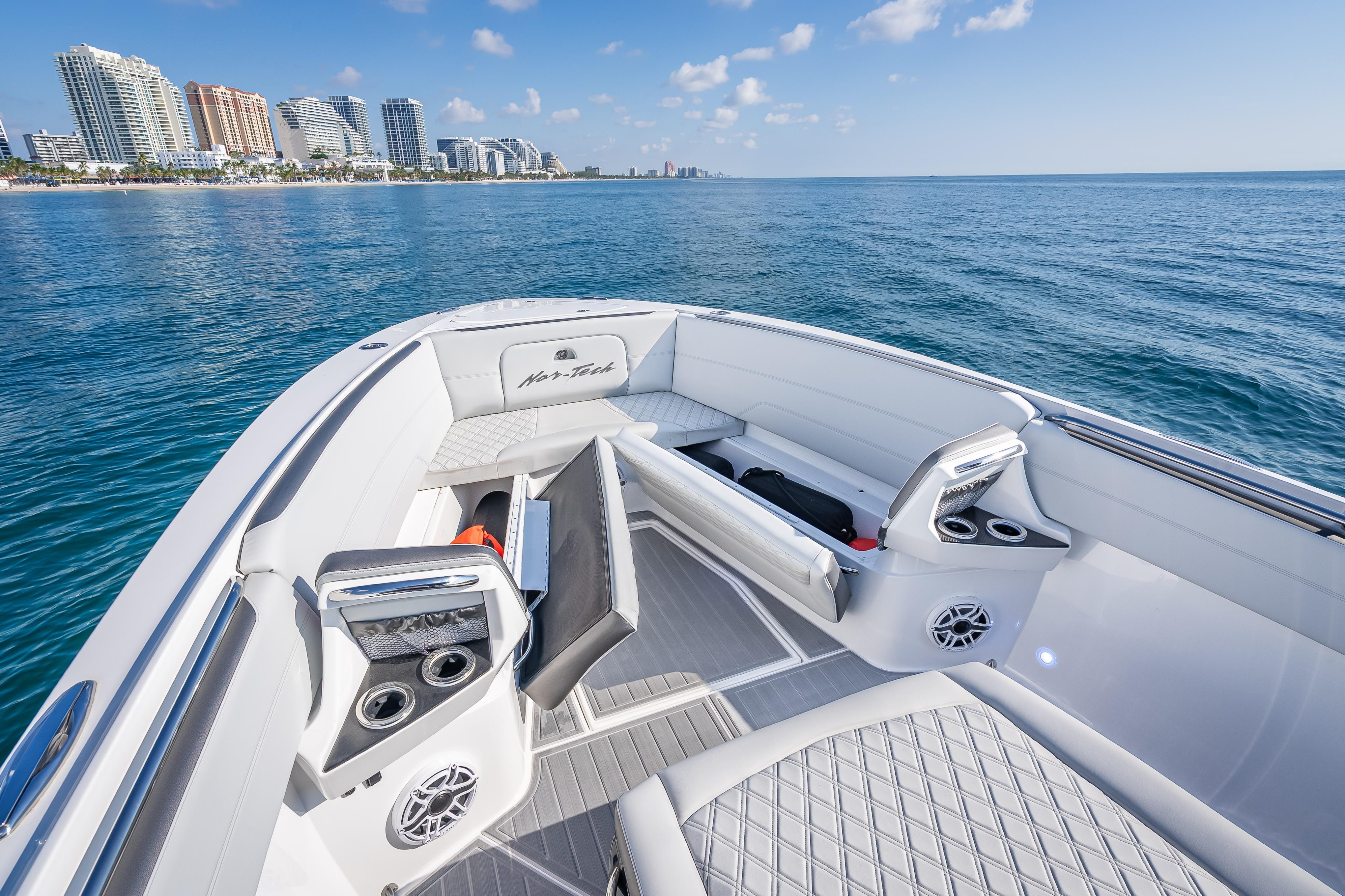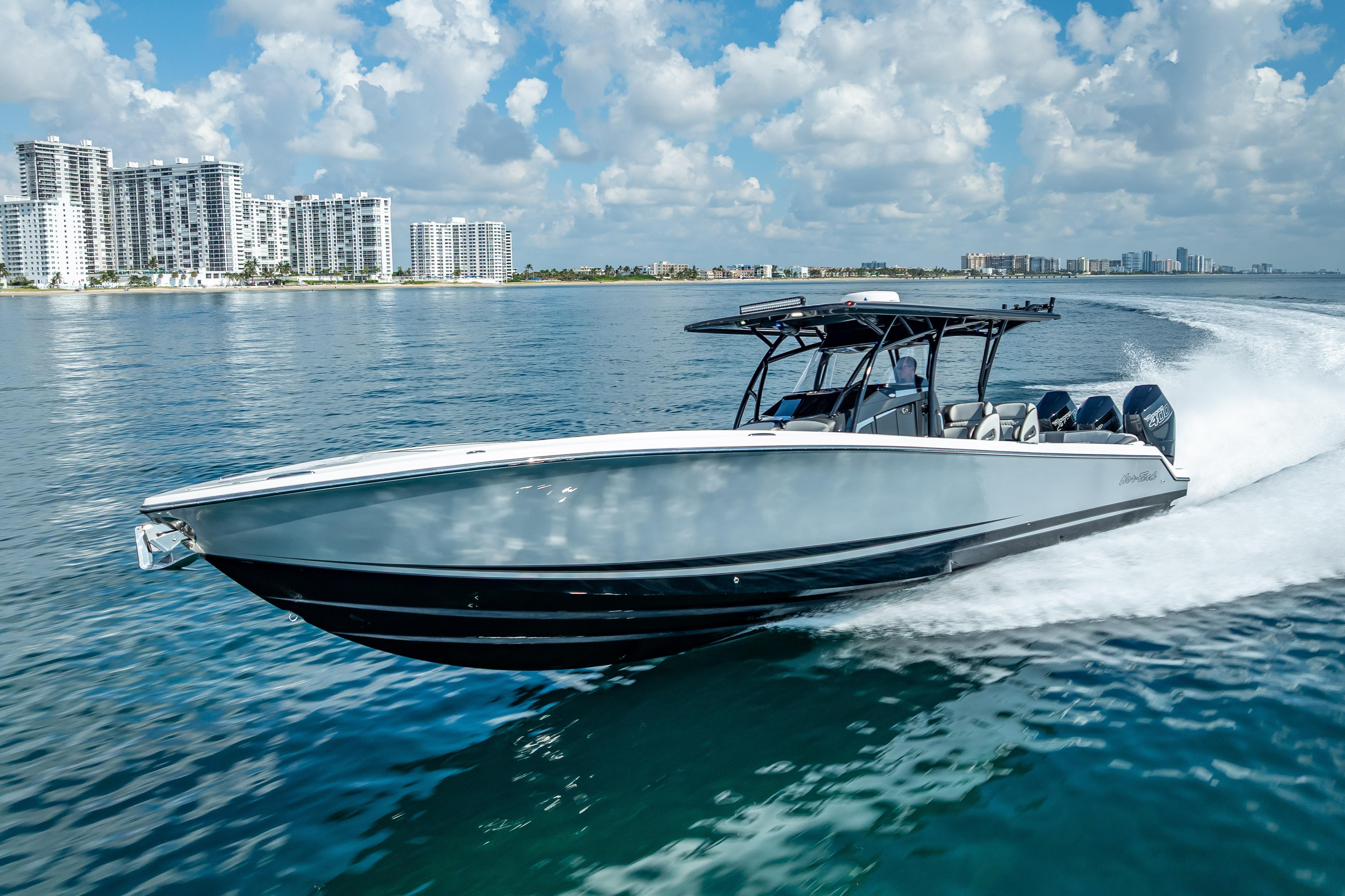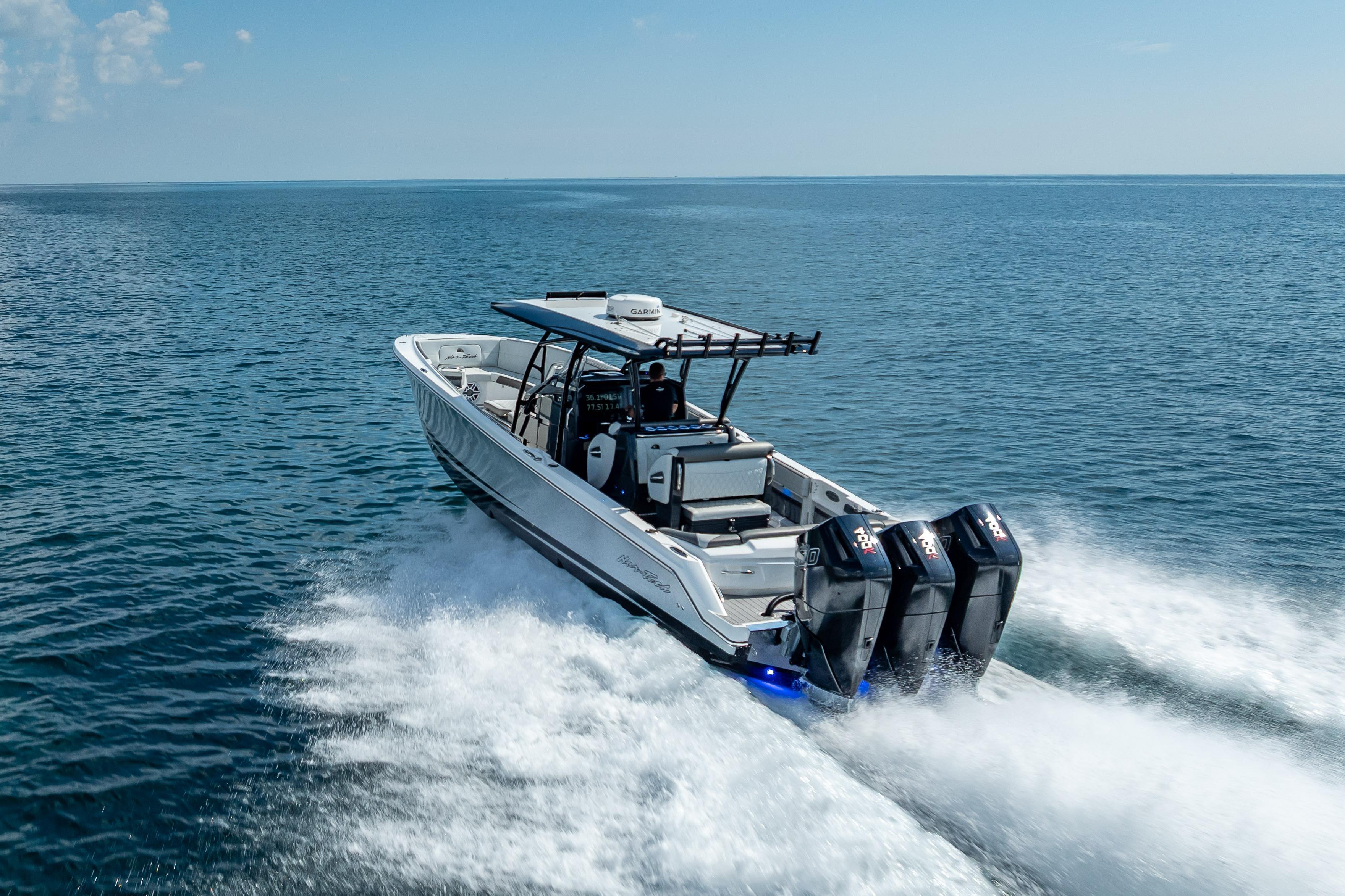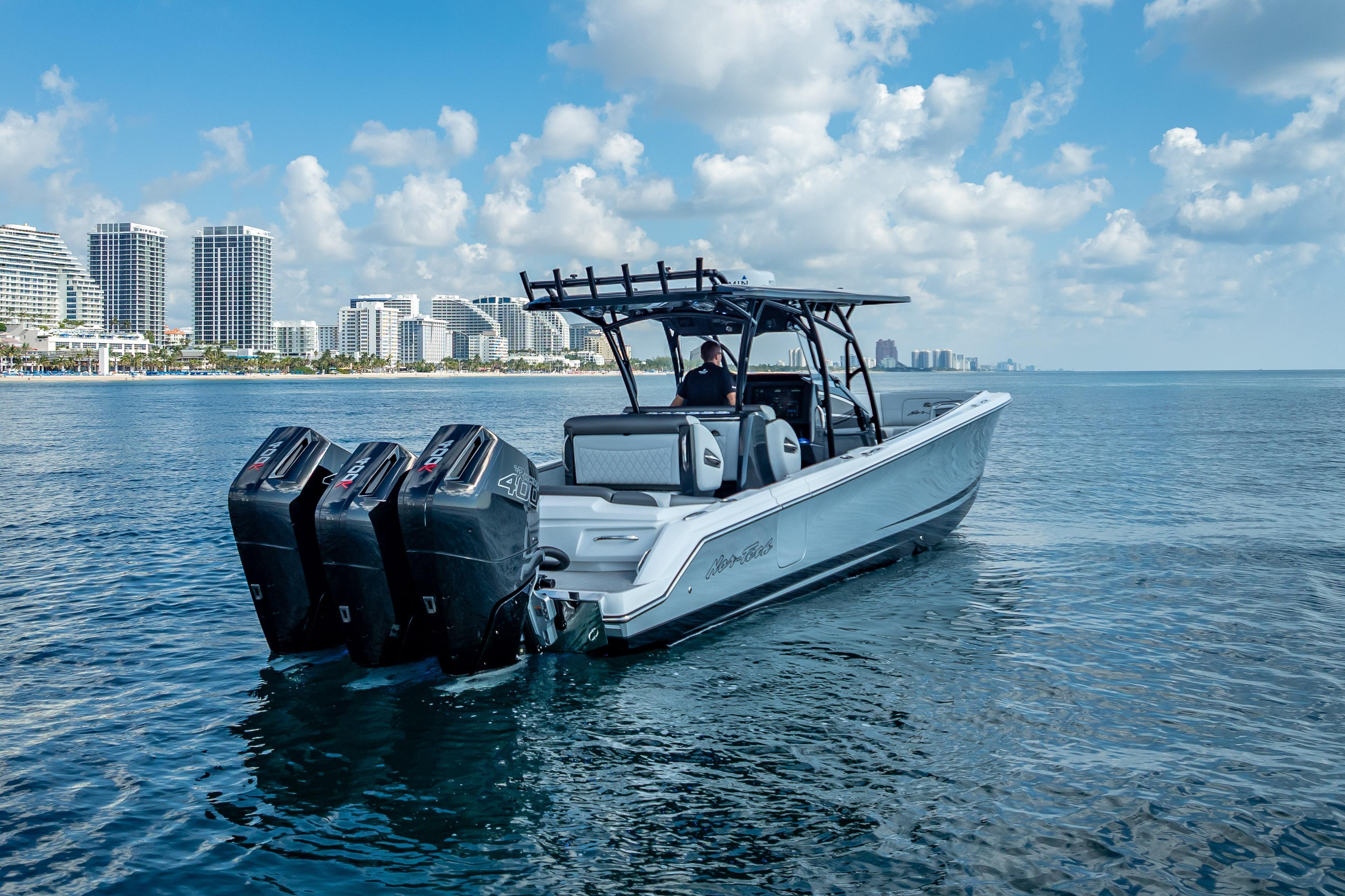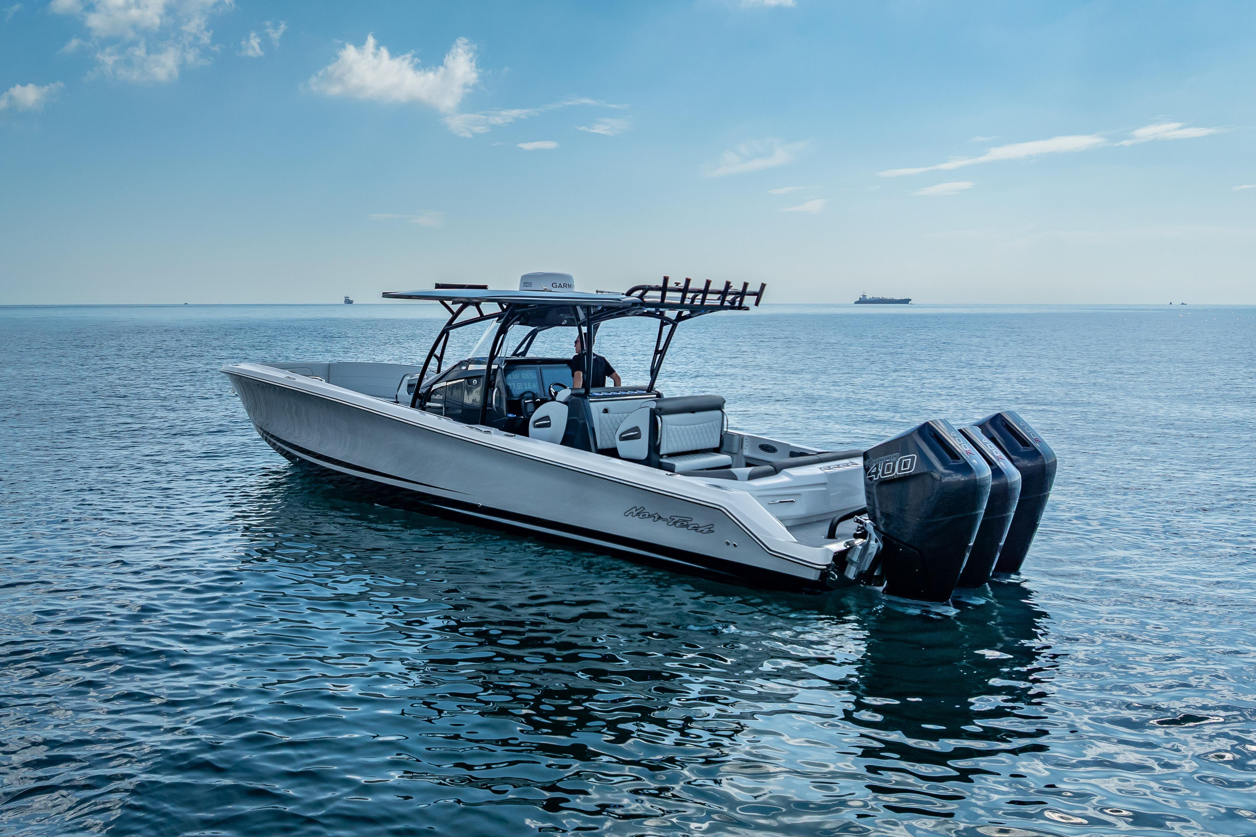 This stunning 2024 Nor-Tech 390 Sport is the ultimate blend of luxury, performance, and style. With triple Mercury Racing 400Rs, a spacious 10’ beam, and a sleek composite hull, this center console is built for speed, comfort, and adventure on the water. Boat DetailsMake: Nor-TechModel: 390 Sport Center ConsoleYear: 2024Length Overall (LOA): 39 ftBeam: 10 ftDraft: 36 inHull Material: CompositeBoat Type: Center ConsoleCondition: Excellent – Like New Engine DetailsEngine Type: OutboardNumber of Engines: 3Engine Make/Model: Mercury Racing 400RHorsepower: 400 HP each (1,200 HP total)Engine Hours: 70 hrsFuel Type: GasolineDrive Type: Outboard Key FeaturesTriple Mercury Racing performance powerSpacious layout with 10’ beam for comfort & stabilityComposite hull for strength and durabilityLow engine hours (70) – like new conditionPerfect balance of offshore performance & luxury styling