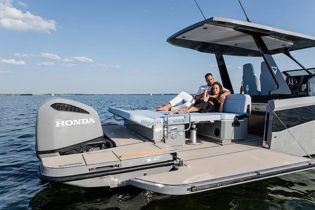 Virtue V10 T-Top -32' 5" / 9.89m-Customizable, Revolutionary, Cutting Edge, Built To Order Base Price + Customizable OptionsWelcome Aboard the Virtue V10 T-TopVirtue Yachts, founded in 2022, is rapidly establishing itself as a leader in the semi-custom luxury dayboating market. Crafted in Poland with Scandinavian-inspired design, their boats feature the innovative Petestep® Hull, which boosts efficiency, stability, and comfort by minimizing drag and spray. Virtue Yachts stands out by owning and operating their own production facilities, emphasizing advanced technology and meticulous craftsmanship. Each vessel is built to order by skilled in-house artisans, offering extensive customization options. Whether you seek a standalone boat or a companion vessel tailored to match a larger mothership’s color scheme, Virtue Yachts delivers exceptional form and function with cutting-edge technology and premium finishes.Built To OrderCustomize your Virtue V10 T-Top to perfectly complement your mothership, private jet, or home’s color scheme. Each Virtue V10 is built to order, the V10 T-Top offers personalized options, including over 42 hull colors, cushions, and unique color combinations, ensuring your yacht is a one-of-a-kind masterpiece.Innovative Beach Club DesignThe Virtue V10 T-Top transforms your on-water experience by intergrading fold-down side platforms often seen aboard Superyacht beach clubs. These hydraulic terraces expand the cockpit into a spacious beach club, creating an unrivaled connection to the sea. Perfect for social gatherings, sunbathing, or water-based activities, this versatile space can be configured as a dining area for eight, bench seating, or a sprawling sunbed, ensuring every moment on the water is unforgettable.Spacious On-Deck ExperienceThe V10 T-Top’s open-bow center console design maximizes deck space for up to 10 guests. The bow features a luxurious double sunbed with cupholders and speakers, while the aft seating area adapts to your needs with a foldable carbon-fiber table. A fully equipped wet bar, including dual 60L refrigerators, a sink, an electric grill, and a cutting board, ensures effortless entertaining. The fixed T-top, supported by sleek carbon-fiber stanchions, provides shade and protection, enhancing year-round usability.Shallow Draft for VersatilityWith a draft of just 0.51m, the V10 T-Top navigates shallow coastal waters with ease, allowing access to hidden coves and secluded bays inaccessible to larger vessels. Its compact 2.90m beam (4.36m with platforms open) fits standard 10x3m Mediterranean marina berths, offering cost savings and docking flexibility.High Cruise Speed & PerformancePowered by a range of outboard engines—single 300hp to twin 300hp gasoline, twin racing, or twin 300hp Evoy electric outboards—the V10 T-Top delivers exhilarating performance with a top speed of up to 55 knots (100 km/h) and a cruising speed of 30-40 knots. The patented Petestep® hull technology, with concave spray rails and twin hull steps, reduces drag by up to 30%, enhances lift, and ensures a smoother, more efficient ride, even in challenging conditions.Luxurious Cabin RetreatBelow deck, the V10 T-Top offers a plush cabin with a double berth, wardrobe, lockers, and a bathroom with a toilet, shower, and wash basin. With a standing height of 1.95m and optional air conditioning, this compact yet luxurious space provides a comfortable retreat for short overnight stays or a respite from the sun.Eco-Conscious InnovationFor environmentally conscious boaters, the V10 T-Top offers an optional Evoy electric propulsion system, delivering a top speed of 37 knots and a range of up to 60 nautical miles at 25 knots. Solar panels integrated into the T-top support onboard systems, reducing your carbon footprint while maintaining high performance.Premium FeaturesPetestep® Hull: Enhances efficiency, stability, and ride comfort with reduced drag and spray.Gourmet Wet Bar: Equipped with dual refrigerators, sink, electric grill, and cutting board for seamless entertaining.Premium Sound System: Fusion Bluetooth with 8 speakers, 2 amplifiers, and a subwoofer for immersive audio.Advanced Helm: Features twin Garmin MFDs, electronic engine controls, and optional carbon-fiber console with a stylish switch panel.Customizable Options: Choose from bespoke hull colors, upholstery, solar shades, underwater lights, and a bow thruster for personalized luxury.Smart Design: Hidden anchor hatch, sunken cleats, and recessed grab rails for a sleek, trip-free deck.Why Choose the Virtue V10 T-Top?The Virtue V10 T-Top redefines day boating with its Scandinavian style, innovative engineering, and versatile functionality. Whether hosting a vibrant gathering at anchor, cruising at high speeds along the coast, or retreating to the cozy cabin, this vessel delivers an unmatched experience. Its shallow draft opens new destinations, while the high cruise speed ensures swift, stylish arrivals. Built on-demand for exclusivity, every V10 T-Top is tailored to your vision of luxury boating.