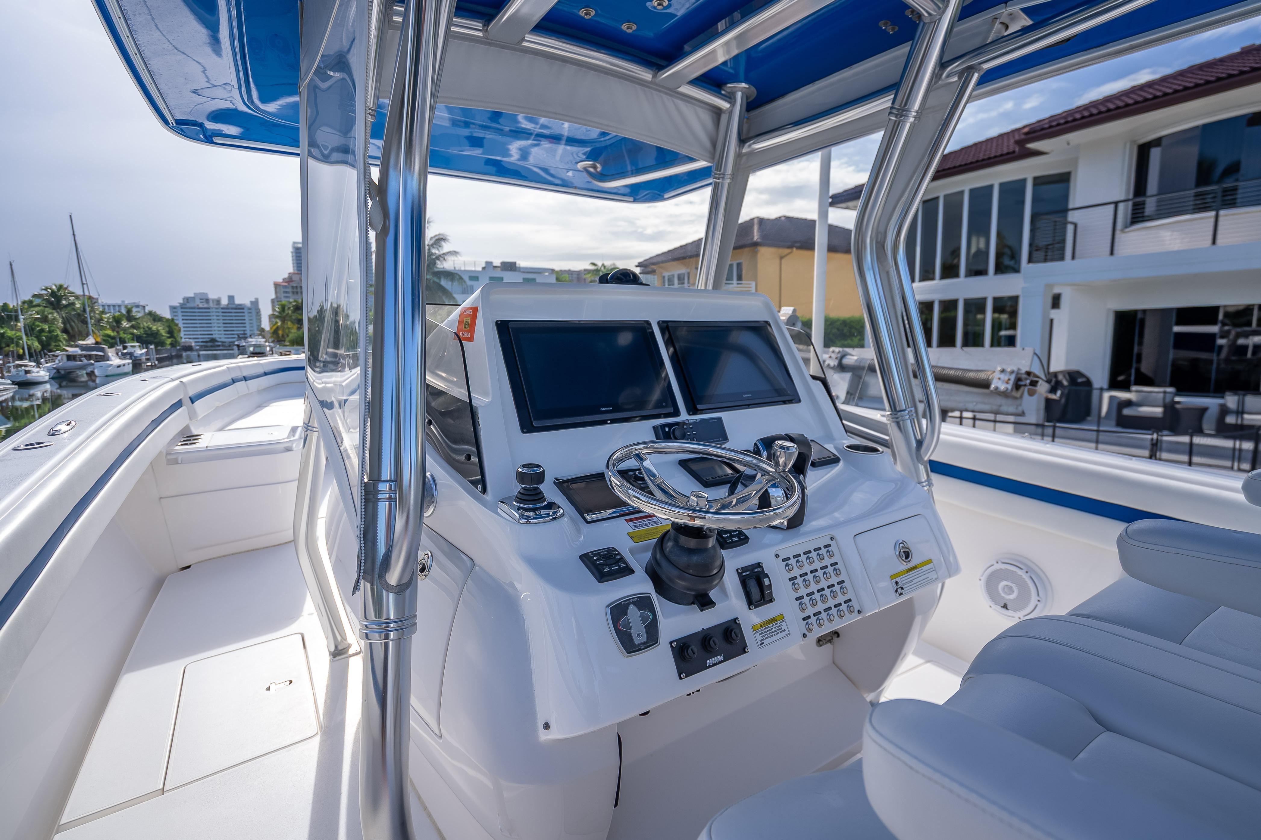 Great Opportunity!Very Well Maintained 40 Center Console is Ready for a New Home.Build Features:Triple Mercury 350 VeradosAll Services Up to Date (Service Records Available)Mercury Cold Fusion White Color UpgradeJoystick Piloting Vetus Bow ThrusterMaxwell Windlass System w/ Polished Stainless Steel AnchorFold Down Rear Bench SeatSwing in Dive Door w/ Fold Out LadderForward Wrap Around Seating w/ Custom StorageWalk Down Head w/ Sink & ShowerCustom Imron Blue Hull ColorCockpit BaitwellTaco 380 Grand Slam Outrigger System w/ Carbon Fiber PolesLift Kept (Bottom Painted)Electronics:Dual Garmin 8616 DisplaysGarmin xHD2 GMR 424 Open Array RadarGarmin GMI 20 Multifunction Displays (4)Mercury Autopilot FLIR Night CameraICOM VHF RadioLight Bar Dual Trumpet HornUnderwater Lights (Rear Facing & Side Beams)