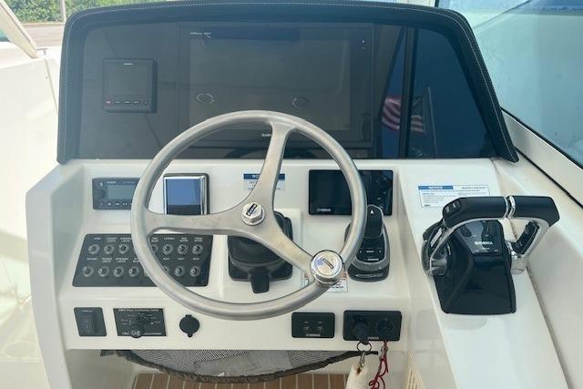 Introducing the 2018 World Cat 320 DC, a remarkable power catamaran that combines performance and comfort in a sleek 32-foot design. Crafted from durable fiberglass, this vessel boasts a catamaran hull shape, ensuring stability and smooth navigation on the water. Equipped with twin Yamaha F300 outboard engines, each delivering an impressive 300 horsepower, this boat achieves a cruising speed of 24 mph and a maximum hull speed of 45 mph, making it perfect for exhilarating outings. With 520 hours of use, these engines promise reliability and power for your adventures. The 320 DC is designed for those who appreciate quality and functionality, featuring essential equipment that enhances your boating experience. Whether you're cruising with friends or enjoying a day on the water, this catamaran offers an exceptional blend of performance and style, making it a fantastic choice for any boating enthusiast.