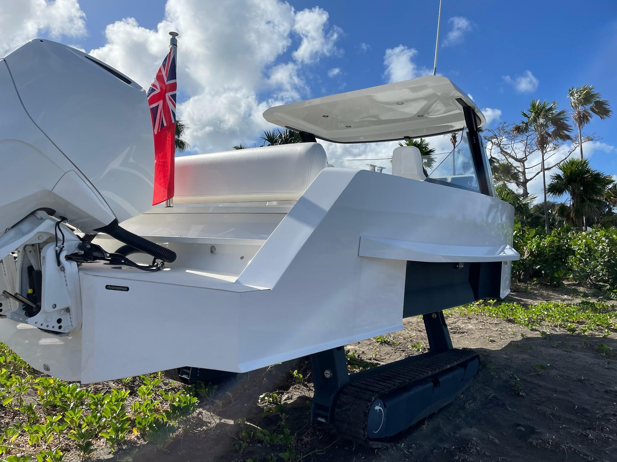 This amphibious boat boasts some very unique features, including an all-around windshield and an electric hardtop that seals around the windshield, allowing for total protection or fresh-air driving. With low hours and fully loaded, including outboard joystick control and twin engines, this boat is one of a kind.Contact us now to make it yours or to learn more.On Water DimensionsLOA (single engine down): 9.20 mLOA (single engine up and turned right): 9.45 mBeam: 3.10 mBeam (without deflectors): 2.75 mDraft (motor up): 0.55 mDraft (motor down): 0.78 mDraft (twin engines, motors down): 0.68 mDraft (landing gear down): 1.17 mMinimal height above water: 1.71 mHeight above water (with extended roof): 2.38 mOn Land DimensionsMinimal height: 2.26 mTotal height on track: 2.88 mTotal height on track (with hardtop extended): 3.55 mWeightDry weight (one engine, with common options): 3,900 kgDry weight (two engines, with common options): 4,100 kgMinimum dry weight: 3,800 kgMaximum total weight: 5,430 kgMaximum payload (including fuel & water): 1,330 kgPassenger capacity: Cat C - 8 persons, Cat D - 12 personsCapacitiesFuel tank: 380 LFreshwater tank: 54 LStorage box: 330 LAnchor: 6 kg + 8m chain + 42m line12V Batteries: Engine(s) - 80Ah, Auxiliary - 80Ah