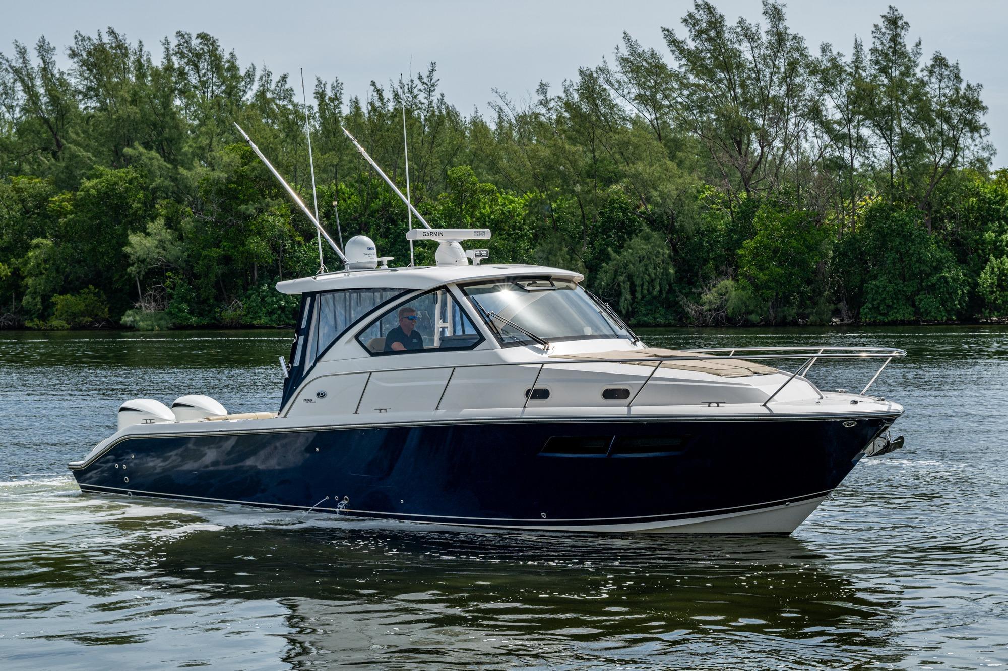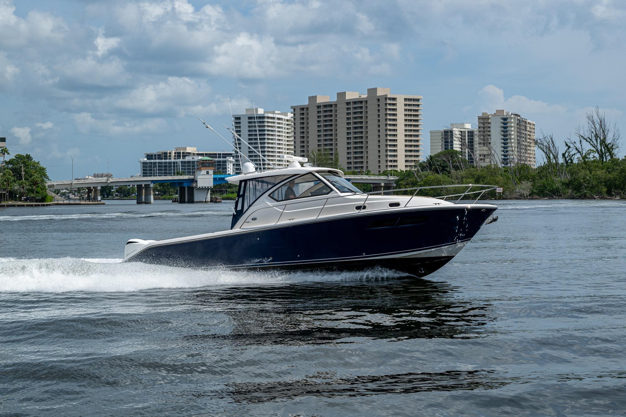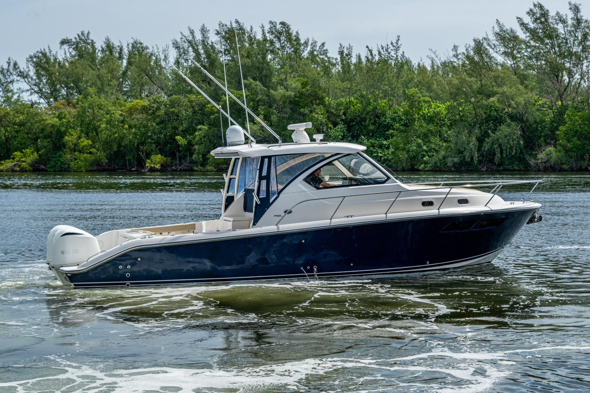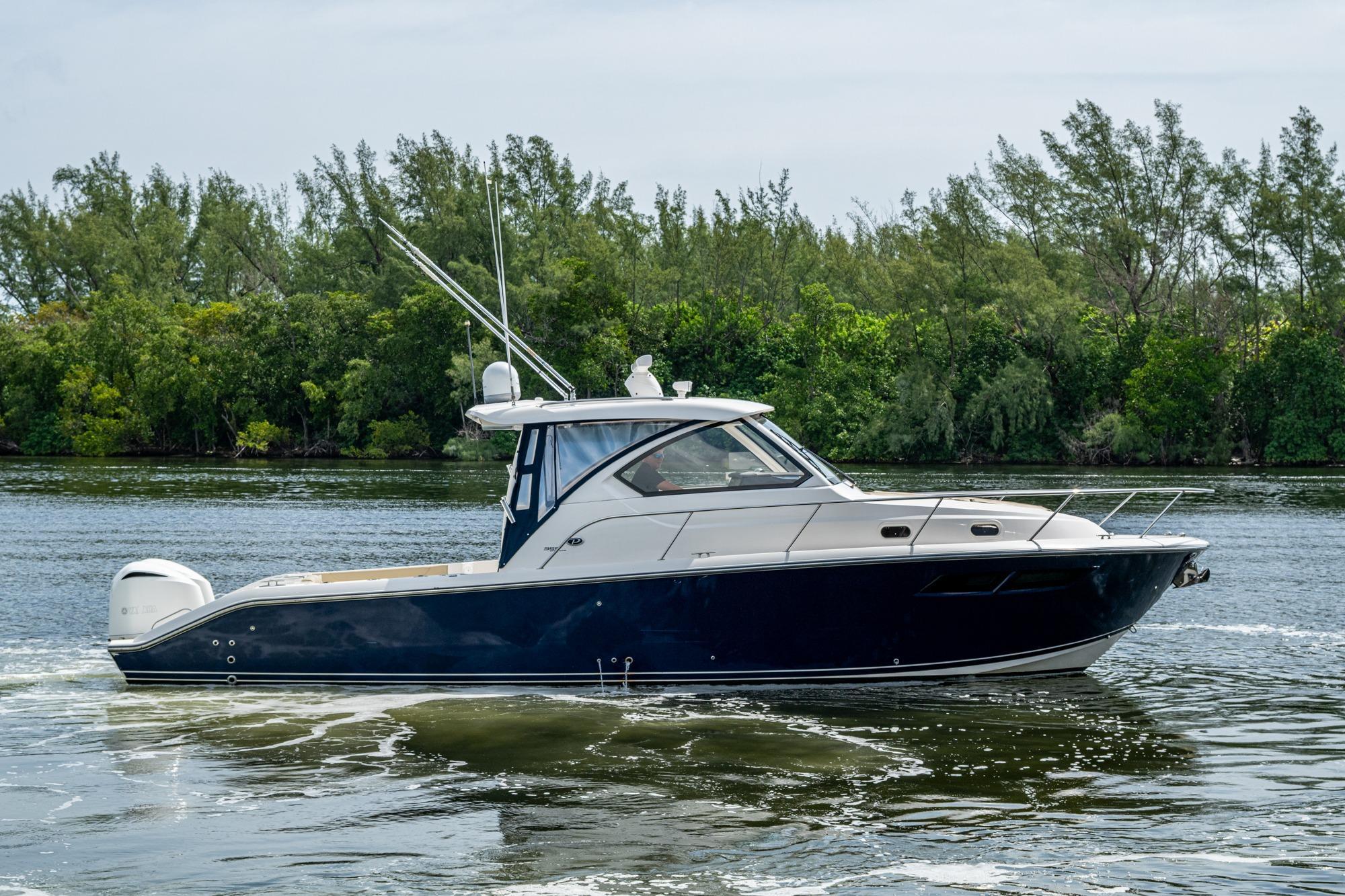 The 2017 Pursuit 335 is a beautifully engineered offshore express cruiser that combines Pursuit’s legendary craftsmanship with modern performance and comfort. Built for both serious offshore anglers and discerning weekend adventurers, this vessel delivers an unmatched combination of reliability, seaworthiness, and style. Powered by twin Yamaha 350s, she is capable of high-speed runs to offshore fishing grounds while maintaining a smooth, dry ride, thanks to her hand-laid fiberglass Deep-V hull.This Pursuit 335 is designed with both performance and comfort in mind. The open cockpit offers everything an angler could desire — rod holders, tackle storage, a large 45-gallon livewell, dual insulated fish boxes, and a convenient prep station with sink. Meanwhile, the cabin below deck provides a welcoming retreat with a forward V-berth, galley, and enclosed head, perfect for overnight trips or weekend cruising. Every inch of this vessel reflects thoughtful design and meticulous construction, hallmarks of the Pursuit brand.Boat Type / StyleType: Offshore Express / Sportfish CruiserLayout: Raised helm with companion seating, open fishing cockpit, comfortable cabin below deck with forward V-berth and galleySleeps: 2 comfortablyCockpit: Generously sized and fishing-focused, with storage, prep areas, and easy access to the transomSpecificationsLength Overall (LOA): 33’ 5”Beam: 11’ 4”Draft: 27”Weight: Approx. 11,000 lbs (dry)Fuel Capacity: 300 gallons – ideal for long offshore tripsWater Capacity: 44 gallonsHolding Tank: 10 gallonsHull Material: Hand-laid fiberglass, Deep-V design for stability and a smooth ridePower & PerformanceEngines: Twin Yamaha 350s— renowned for reliability and offshore powerDigital electronic controls with stainless steel propsCapable of cruising comfortably at 25–30 knots, with top speeds exceeding 40 knots depending on loadDeep-V hull ensures a dry, stable ride in rough conditions, giving confidence for offshore passagesOptional bow thruster (if equipped) assists with precision docking and close-quarters maneuveringHelm & ElectronicsSpacious helm with comfortable captain’s chair and companion seatingDual multi-function displays with integrated chartplotter, sonar, and radar-ready functionalityVHF radio with AIS for safe communication and navigation offshoreWindlass with helm control for easy anchor handlingTrim tabs and remote spotlight for improved handling and night operationsFishing FeaturesOversized cockpit designed specifically for serious sportfishing45-gallon livewell with internal lighting for keeping bait freshDual insulated fish boxes with macerator pump-outs for convenienceAmple rod holders located throughout the cockpit, gunwales, and transomDedicated tackle and rigging drawers for organizationCockpit prep station with sink and cutting areaTransom door providing easy access for boarding or handling catchCabin & Comfort FeaturesSleeps 2 comfortably in forward V-berthGalley equipped with refrigerator, microwave, cooktop, and sink, perfect for weekend tripsConvertible dinette adds flexibility and additional seating for guestsEnclosed head with electric flush toilet, sink, and stand-up showerTeak cabinetry and flooring throughout the cabin for a warm, high-end feelClimate-controlled helm deck (if equipped with A/C)Premium stereo system for entertainment on the waterAmple storage throughout for personal items, gear, and provisionsHull & ConstructionHand-laid fiberglass Deep-V hull designed for offshore stability and durabilityFoam flotation ensures compliance with USCG safety standardsReinforced transom and stringer system for strength and long-term reliabilityDesigned to deliver a smooth, dry ride even in challenging offshore conditionsConditionProfessionally maintained, and fully serviced. This Pursuit 335 is turn-key and ready for immediate use, whether it’s offshore sportfishing, cruising the Bahamas, or weekend adventures with family. Every system on board is operational, and the boat presents in excellent condition, reflecting careful ownership and attention to detail.