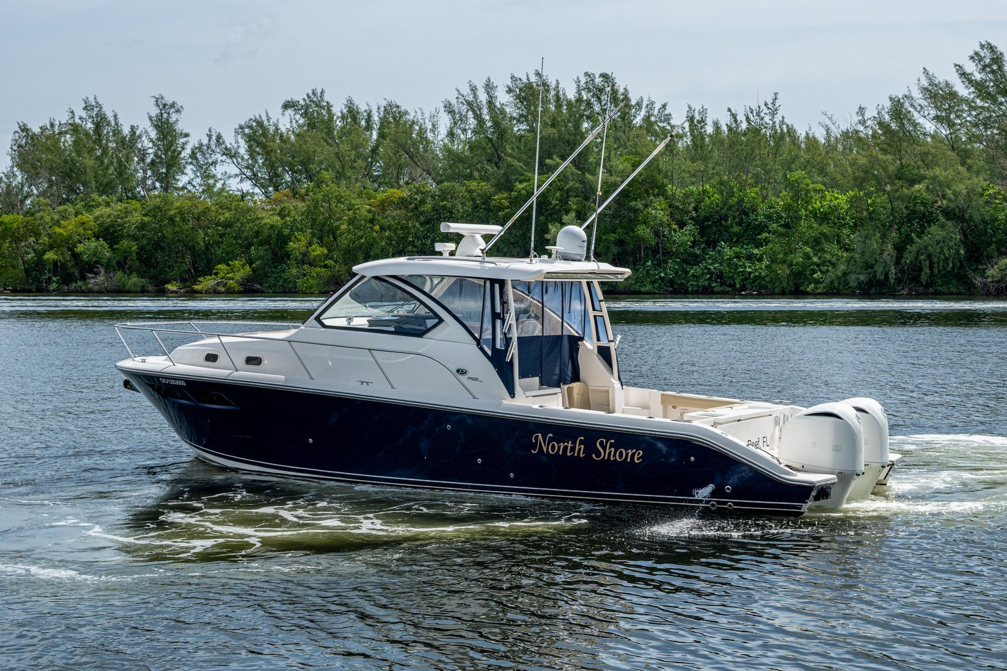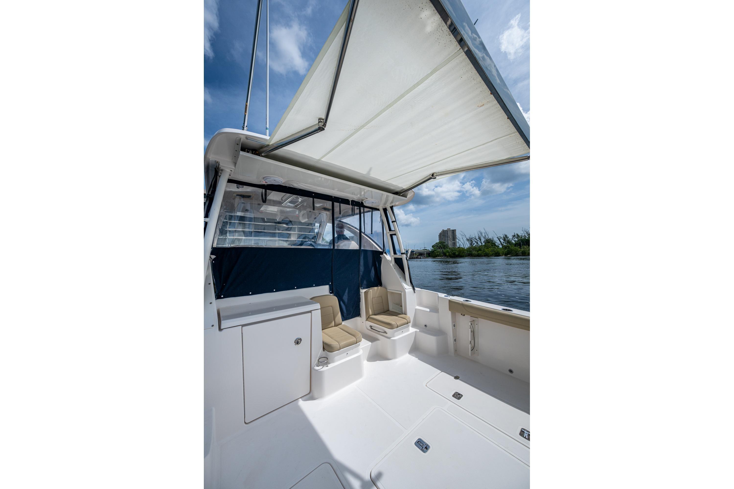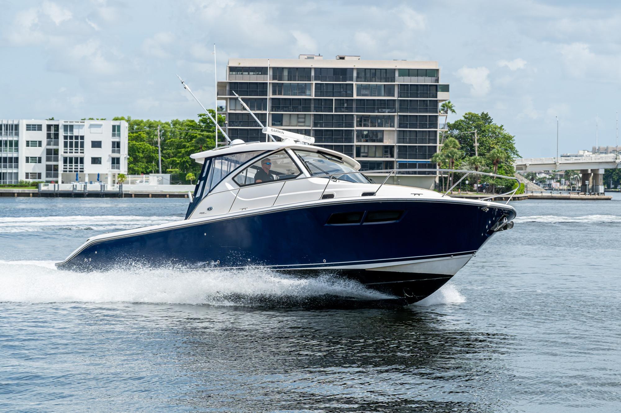 The 2017 Pursuit 335 is a beautifully engineered offshore express cruiser that combines Pursuit’s legendary craftsmanship with modern performance and comfort. Built for both serious offshore anglers and discerning weekend adventurers, this vessel delivers an unmatched combination of reliability, seaworthiness, and style. Powered by twin Yamaha 350s, she is capable of high-speed runs to offshore fishing grounds while maintaining a smooth, dry ride, thanks to her hand-laid fiberglass Deep-V hull.This Pursuit 335 is designed with both performance and comfort in mind. The open cockpit offers everything an angler could desire — rod holders, tackle storage, a large 45-gallon livewell, dual insulated fish boxes, and a convenient prep station with sink. Meanwhile, the cabin below deck provides a welcoming retreat with a forward V-berth, galley, and enclosed head, perfect for overnight trips or weekend cruising. Every inch of this vessel reflects thoughtful design and meticulous construction, hallmarks of the Pursuit brand.Boat Type / StyleType: Offshore Express / Sportfish CruiserLayout: Raised helm with companion seating, open fishing cockpit, comfortable cabin below deck with forward V-berth and galleySleeps: 2 comfortablyCockpit: Generously sized and fishing-focused, with storage, prep areas, and easy access to the transomSpecificationsLength Overall (LOA): 33’ 5”Beam: 11’ 4”Draft: 27”Weight: Approx. 11,000 lbs (dry)Fuel Capacity: 300 gallons – ideal for long offshore tripsWater Capacity: 44 gallonsHolding Tank: 10 gallonsHull Material: Hand-laid fiberglass, Deep-V design for stability and a smooth ridePower & PerformanceEngines: Twin Yamaha 350s— renowned for reliability and offshore powerDigital electronic controls with stainless steel propsCapable of cruising comfortably at 25–30 knots, with top speeds exceeding 40 knots depending on loadDeep-V hull ensures a dry, stable ride in rough conditions, giving confidence for offshore passagesOptional bow thruster (if equipped) assists with precision docking and close-quarters maneuveringHelm & ElectronicsSpacious helm with comfortable captain’s chair and companion seatingDual multi-function displays with integrated chartplotter, sonar, and radar-ready functionalityVHF radio with AIS for safe communication and navigation offshoreWindlass with helm control for easy anchor handlingTrim tabs and remote spotlight for improved handling and night operationsFishing FeaturesOversized cockpit designed specifically for serious sportfishing45-gallon livewell with internal lighting for keeping bait freshDual insulated fish boxes with macerator pump-outs for convenienceAmple rod holders located throughout the cockpit, gunwales, and transomDedicated tackle and rigging drawers for organizationCockpit prep station with sink and cutting areaTransom door providing easy access for boarding or handling catchCabin & Comfort FeaturesSleeps 2 comfortably in forward V-berthGalley equipped with refrigerator, microwave, cooktop, and sink, perfect for weekend tripsConvertible dinette adds flexibility and additional seating for guestsEnclosed head with electric flush toilet, sink, and stand-up showerTeak cabinetry and flooring throughout the cabin for a warm, high-end feelClimate-controlled helm deck (if equipped with A/C)Premium stereo system for entertainment on the waterAmple storage throughout for personal items, gear, and provisionsHull & ConstructionHand-laid fiberglass Deep-V hull designed for offshore stability and durabilityFoam flotation ensures compliance with USCG safety standardsReinforced transom and stringer system for strength and long-term reliabilityDesigned to deliver a smooth, dry ride even in challenging offshore conditionsConditionProfessionally maintained, and fully serviced. This Pursuit 335 is turn-key and ready for immediate use, whether it’s offshore sportfishing, cruising the Bahamas, or weekend adventures with family. Every system on board is operational, and the boat presents in excellent condition, reflecting careful ownership and attention to detail.