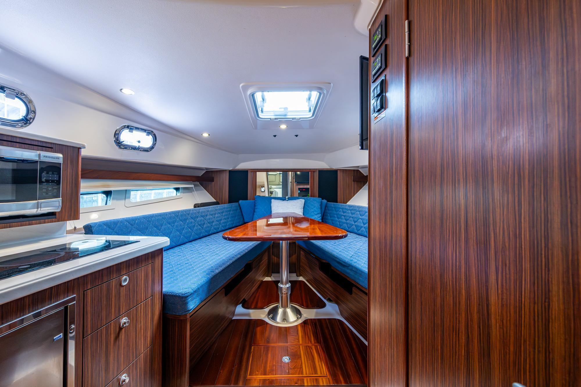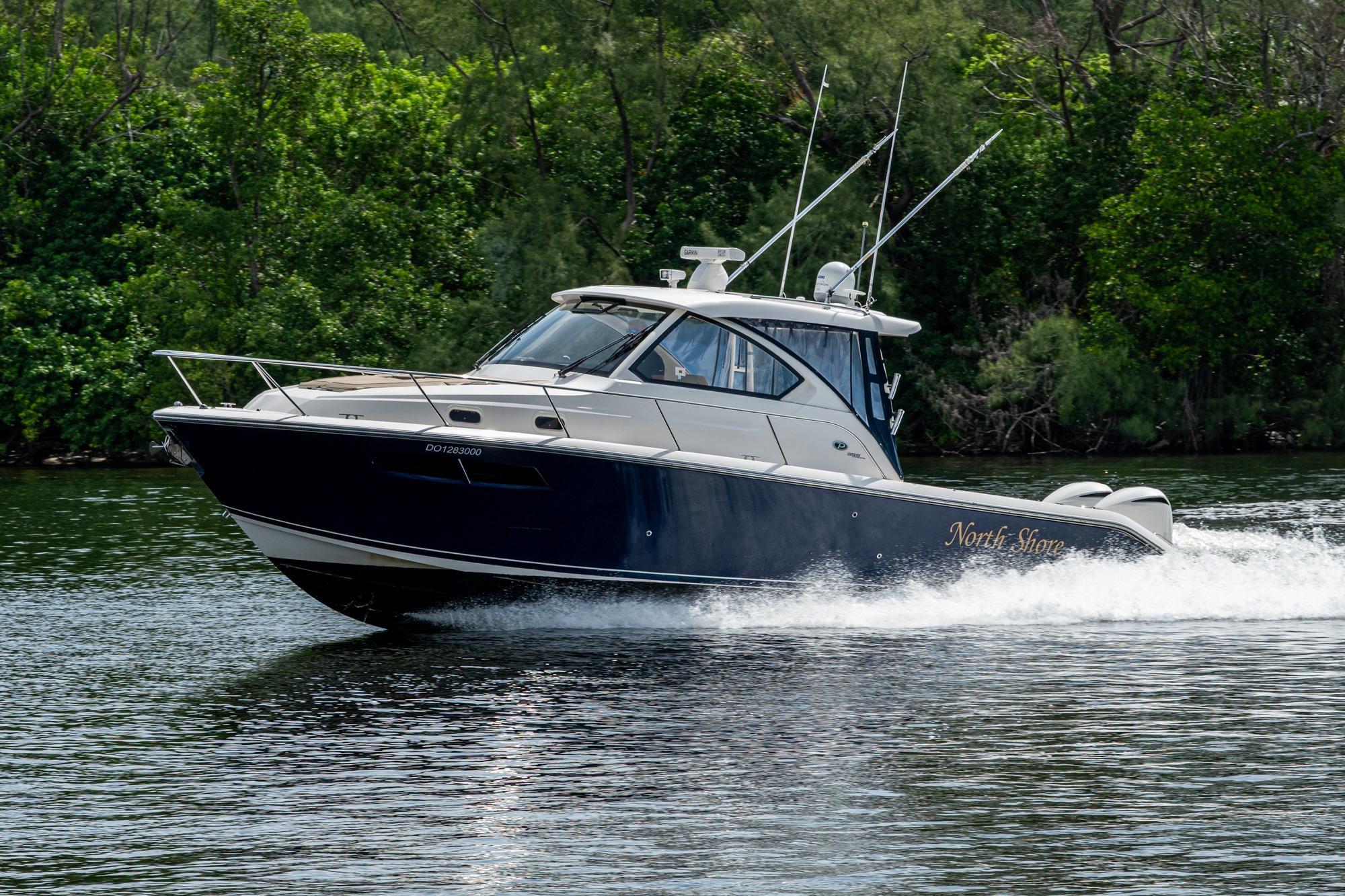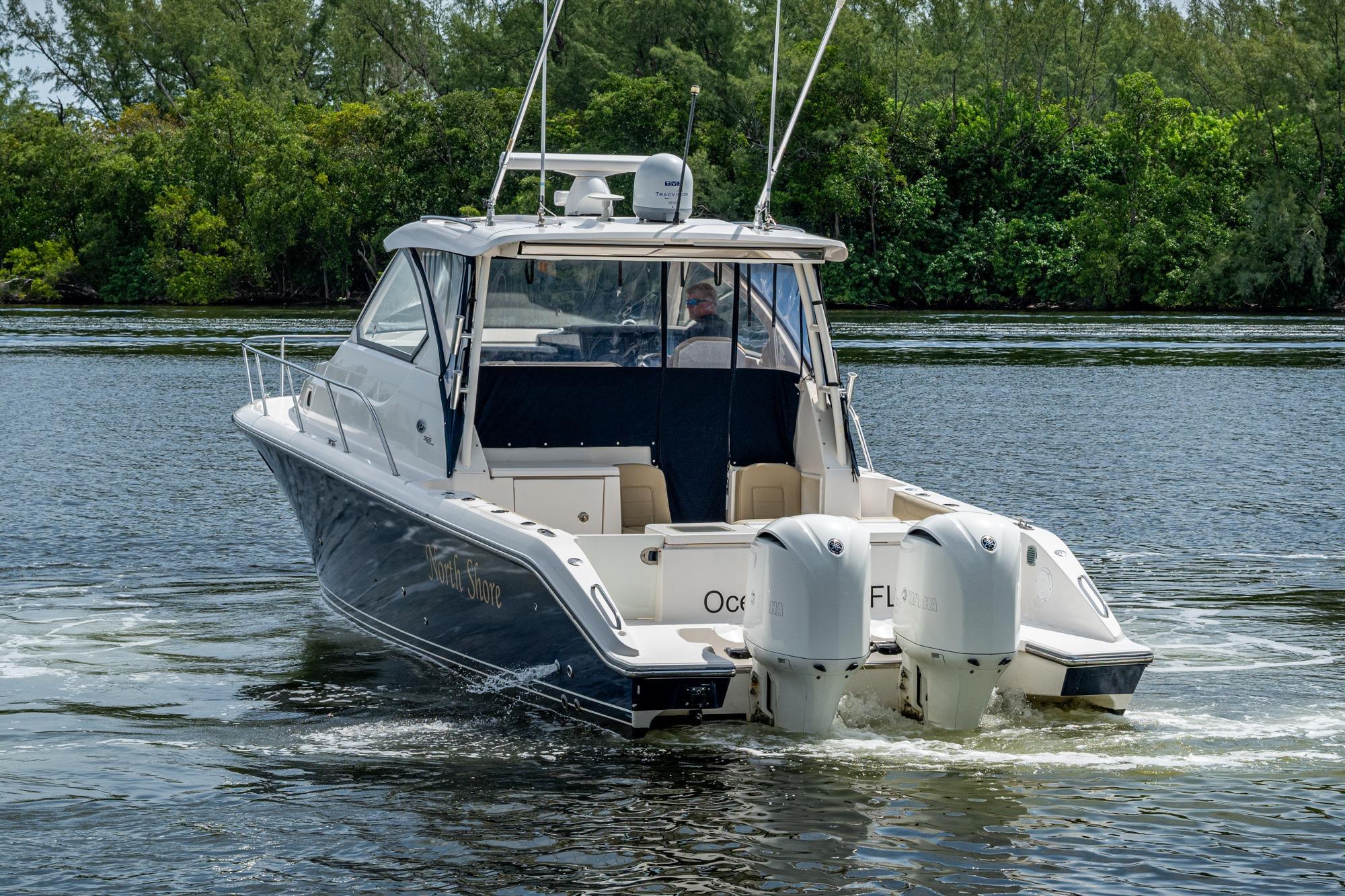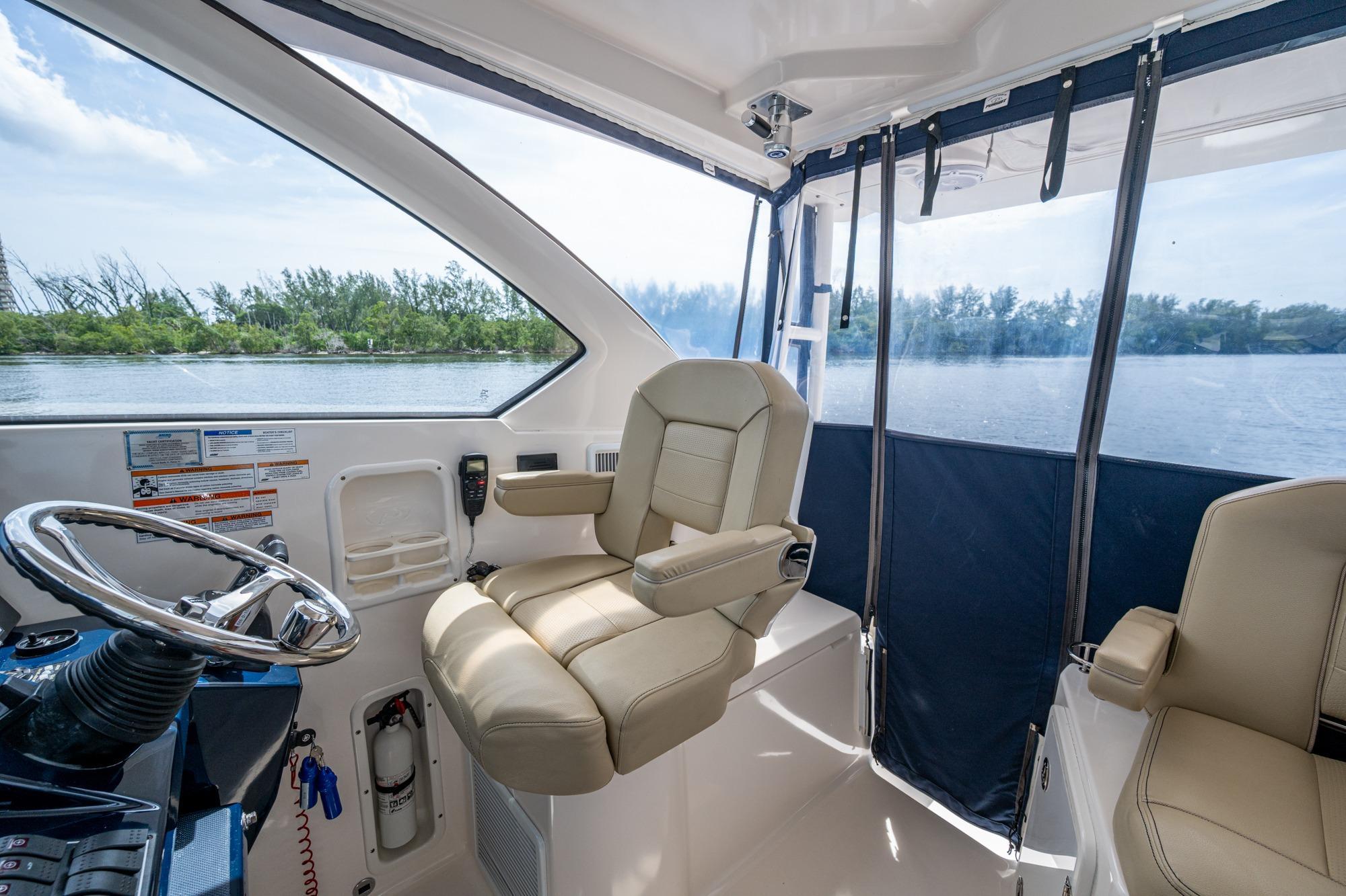 The 2017 Pursuit 335 is a beautifully engineered offshore express cruiser that combines Pursuit’s legendary craftsmanship with modern performance and comfort. Built for both serious offshore anglers and discerning weekend adventurers, this vessel delivers an unmatched combination of reliability, seaworthiness, and style. Powered by twin Yamaha 350s, she is capable of high-speed runs to offshore fishing grounds while maintaining a smooth, dry ride, thanks to her hand-laid fiberglass Deep-V hull.This Pursuit 335 is designed with both performance and comfort in mind. The open cockpit offers everything an angler could desire — rod holders, tackle storage, a large 45-gallon livewell, dual insulated fish boxes, and a convenient prep station with sink. Meanwhile, the cabin below deck provides a welcoming retreat with a forward V-berth, galley, and enclosed head, perfect for overnight trips or weekend cruising. Every inch of this vessel reflects thoughtful design and meticulous construction, hallmarks of the Pursuit brand.Boat Type / StyleType: Offshore Express / Sportfish CruiserLayout: Raised helm with companion seating, open fishing cockpit, comfortable cabin below deck with forward V-berth and galleySleeps: 2 comfortablyCockpit: Generously sized and fishing-focused, with storage, prep areas, and easy access to the transomSpecificationsLength Overall (LOA): 33’ 5”Beam: 11’ 4”Draft: 27”Weight: Approx. 11,000 lbs (dry)Fuel Capacity: 300 gallons – ideal for long offshore tripsWater Capacity: 44 gallonsHolding Tank: 10 gallonsHull Material: Hand-laid fiberglass, Deep-V design for stability and a smooth ridePower & PerformanceEngines: Twin Yamaha 350s— renowned for reliability and offshore powerDigital electronic controls with stainless steel propsCapable of cruising comfortably at 25–30 knots, with top speeds exceeding 40 knots depending on loadDeep-V hull ensures a dry, stable ride in rough conditions, giving confidence for offshore passagesOptional bow thruster (if equipped) assists with precision docking and close-quarters maneuveringHelm & ElectronicsSpacious helm with comfortable captain’s chair and companion seatingDual multi-function displays with integrated chartplotter, sonar, and radar-ready functionalityVHF radio with AIS for safe communication and navigation offshoreWindlass with helm control for easy anchor handlingTrim tabs and remote spotlight for improved handling and night operationsFishing FeaturesOversized cockpit designed specifically for serious sportfishing45-gallon livewell with internal lighting for keeping bait freshDual insulated fish boxes with macerator pump-outs for convenienceAmple rod holders located throughout the cockpit, gunwales, and transomDedicated tackle and rigging drawers for organizationCockpit prep station with sink and cutting areaTransom door providing easy access for boarding or handling catchCabin & Comfort FeaturesSleeps 2 comfortably in forward V-berthGalley equipped with refrigerator, microwave, cooktop, and sink, perfect for weekend tripsConvertible dinette adds flexibility and additional seating for guestsEnclosed head with electric flush toilet, sink, and stand-up showerTeak cabinetry and flooring throughout the cabin for a warm, high-end feelClimate-controlled helm deck (if equipped with A/C)Premium stereo system for entertainment on the waterAmple storage throughout for personal items, gear, and provisionsHull & ConstructionHand-laid fiberglass Deep-V hull designed for offshore stability and durabilityFoam flotation ensures compliance with USCG safety standardsReinforced transom and stringer system for strength and long-term reliabilityDesigned to deliver a smooth, dry ride even in challenging offshore conditionsConditionProfessionally maintained, and fully serviced. This Pursuit 335 is turn-key and ready for immediate use, whether it’s offshore sportfishing, cruising the Bahamas, or weekend adventures with family. Every system on board is operational, and the boat presents in excellent condition, reflecting careful ownership and attention to detail.