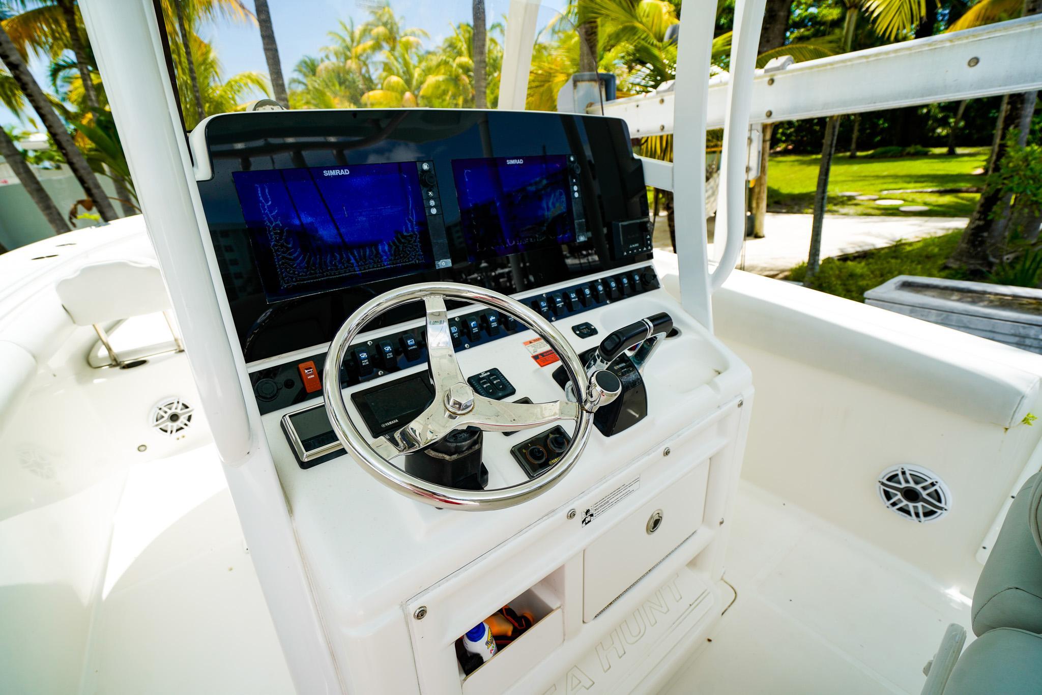 Financing available. Considering offers!Recently completely serviced. New LED Light Bar, New Underwater Lights, Electrical Rework & New Bus Bars, New Batteries, New Terminals/Breakers/Switches, New Windlass Relay Solenoid.Freshly bottom painted & detailed. Motors serviced!Trailer not included - one can be sourced upon request.This series delivers exactly what the serious fishermen demand in a sportfishing center console boat. These boats come ready to fish with standard freatures such as multiple insulated fishboxes and livewells, cockpit and bow bolsters, all stainless hardware and Yamaha Command Link digital gauges. The Gamefish series have recessed trim tabs, and hydraulic steering as standard equipment as well. The cockpits are designed to have abundant room for 360-degree of fishing. These hulls deliver soft dry rides second to none.Twin 2016 Yamaha F300XCA (680 Hours)(2) Simrad NSS12 evo2Simrad RS12 Fixed-Mount VHF RadioYamaha CL5 Touchscreen DisplayYamaha Auto PilotYamaha Helm Master Digital ThrottlePush Button IgnitionJL Audio MediaMaster 105 Weatherproof Source Unit(6) JL Audio SpeakersLenco Trim TabsUnderwater LightsSea Hunt Marine Dash MatConsole Tempered Glass Windscreen EnclosureMezzanine Leaning Post with Rear Facing SeatCaptains Chairs with Bolsters, Flip-Down Armrests, & Folding FootrestDeluxe Hard Top with Mister System, Livewell, Courtesy & Spreader Lights, Speakers, Glove Box, & Rod HoldersVapor Mist Cooling System(4) Rocket Launcher Rod HoldersLewmar Anchor WindlassFresh & Raw Water WashdownTransom ShowerBuilt In Tackle StorageTransom Aerated Livewell (27 Gallons)Transom Fishbox (60 Gallons)(2) Battery SwitchesChina Toilet with Pumpout & Overboard DischargeProMariner ProSport 20 Plus Triple Bank On-Board Marine Battery ChargerPort Side Dive DoorAft Dive Door