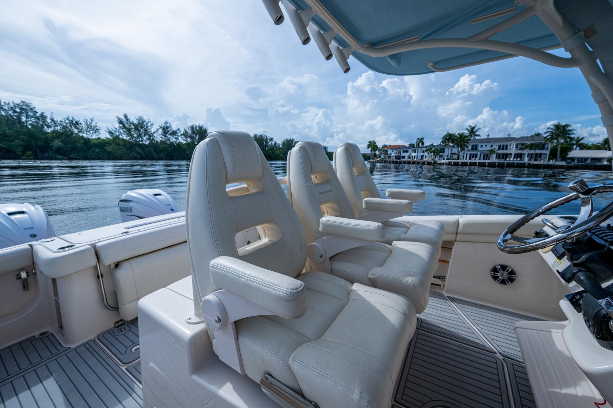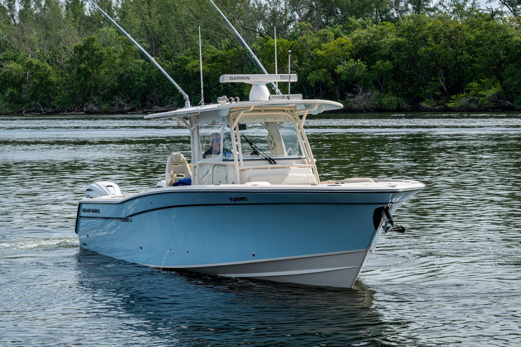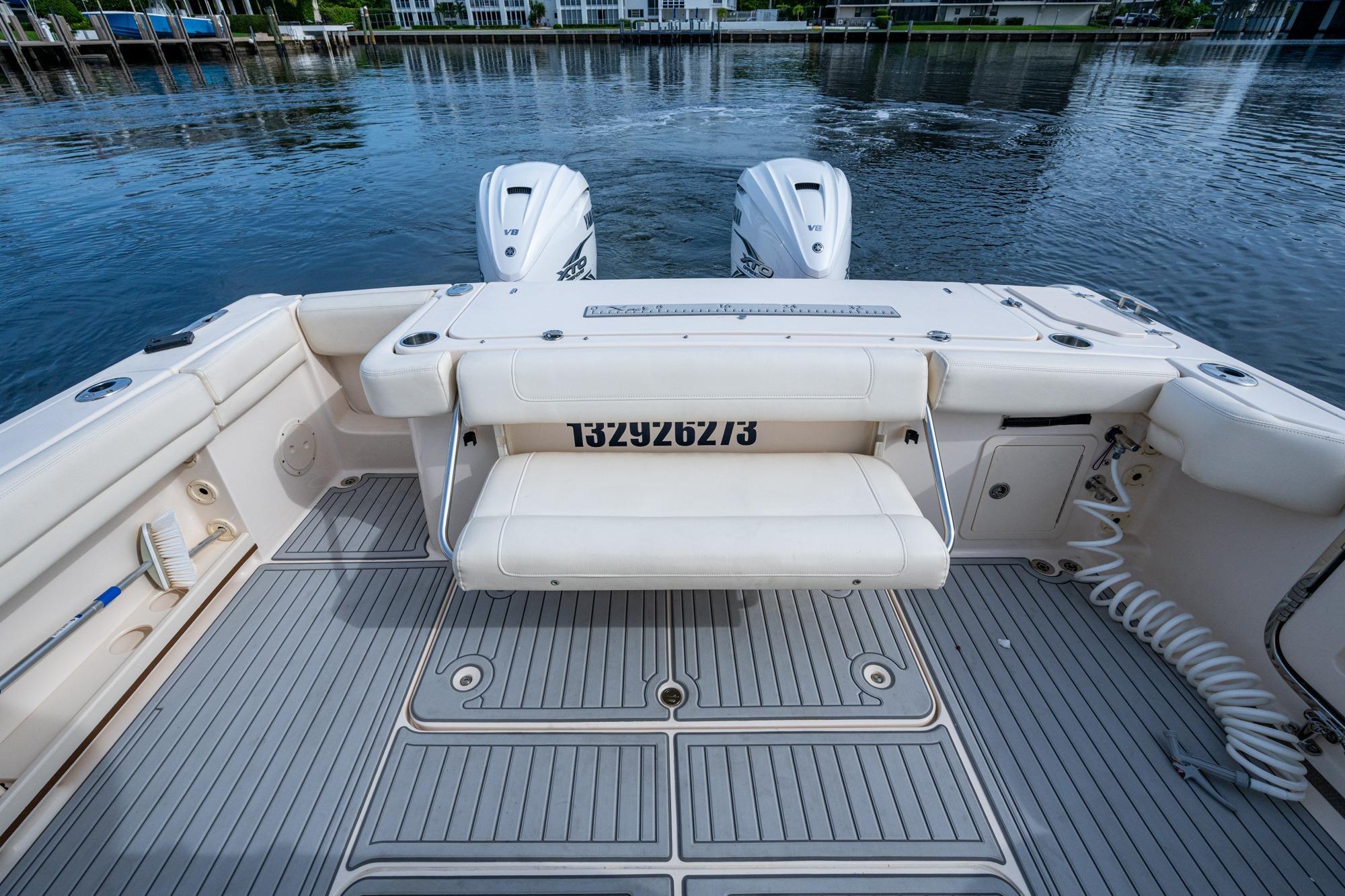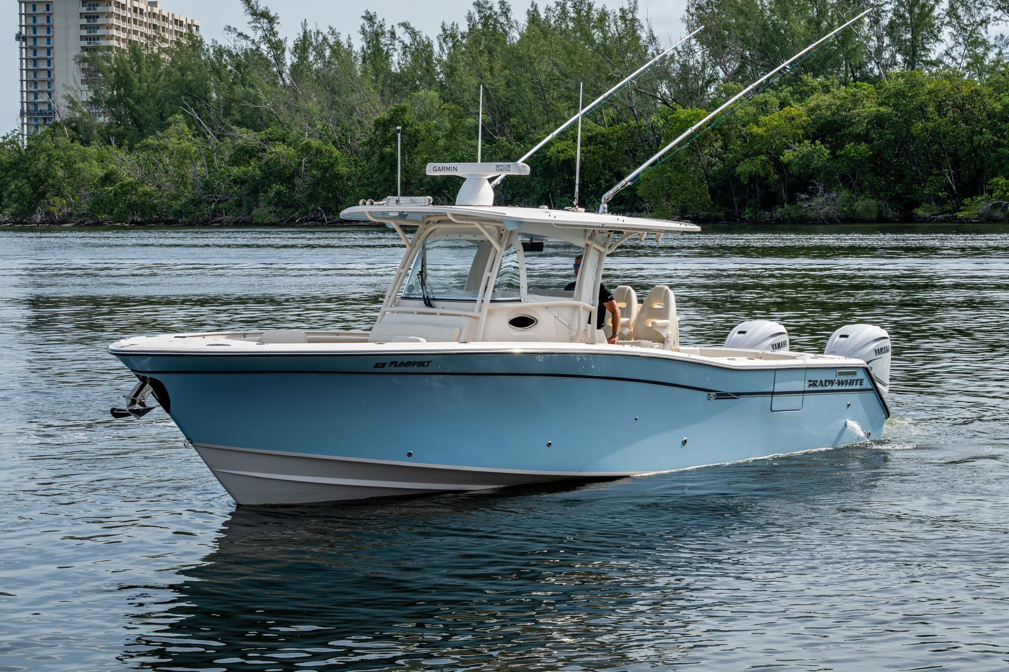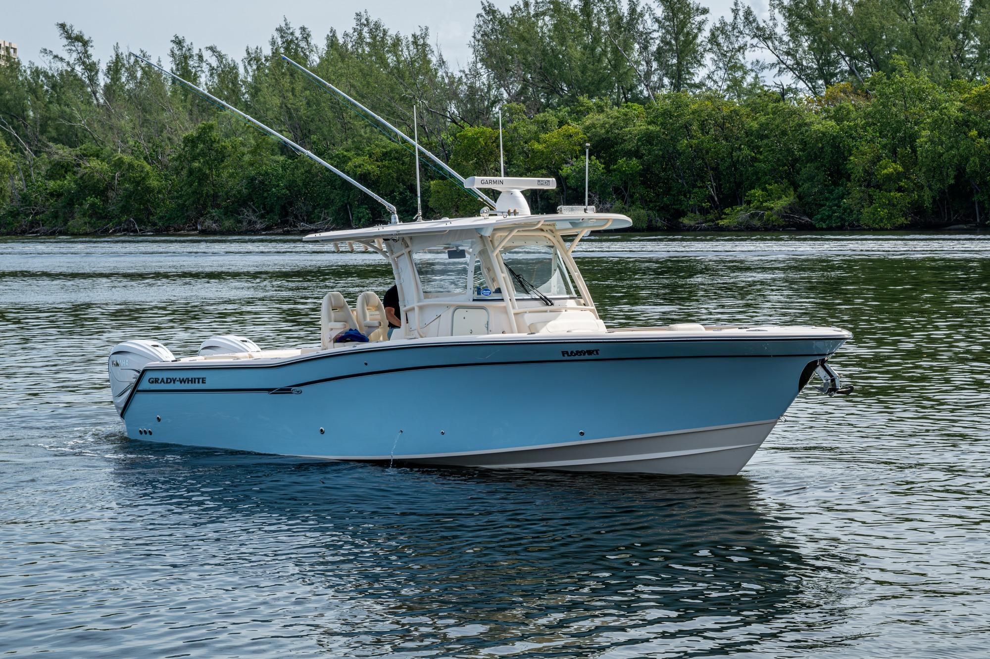 2019 Grady-White 330 Express – Twin Yamaha XTO 425s – Offshore ReadyThe 2019 Grady-White 330 Express is the ultimate combination of offshore performance, fishability, and comfort. Powered by twin Yamaha XTO Offshore 425s, this boat delivers the torque and reliability needed for serious runs offshore, while still offering premium features for weekend cruising. Outfitted with a full electronics package, generator, air conditioning, and every major fishing upgrade, she’s 100% turn-key and ready for her next owner.SpecificationsLength Overall: 33’ 6”Beam: 11’ 7”Draft: 27”Weight: Approx. 10,000 lbs (dry)Fuel Capacity: 331 gallonsWater Capacity: 44 gallonsHolding Tank: 10 gallonsPower & PerformanceEngines: Twin Yamaha XTO Offshore 425s (approx. XXXX hours)Stainless steel props with digital electronic controlsBow Thruster for confident low-speed maneuveringCruise comfortably at 30+ knots | Top speed in the 50s (depending on load/props)Helm & ElectronicsDual multi-function displays with integrated chartplotter, sonar, and radarOpen-array radar for offshore visibilityAutopilot for hands-free navigationVHF radio with AISYamaha CL7 engine monitoring displaysWindlass with helm controlTrim tabs & remote spotlightFishing FeaturesHardtop with outriggers45-gallon livewell with lightDual insulated fish boxes with macerator pump-outsRod holders throughout gunwales, transom, and hardtopRigging/tackle storage drawersCockpit sink & prep stationTransom door for hauling big fish or divingComfort & Cruising FeaturesHelm deck air conditioning with full enclosureAdjustable captain’s chair with companion seatingFold-away aft cockpit bench seatCockpit refrigerator/freezer (if equipped)Premium Fusion/JL Audio stereo systemSwim platform with integrated boarding ladderHot/cold freshwater transom showerCabin & AccommodationsSleeps 2 comfortably (forward V-berth)Galley: refrigerator, microwave, cooktop, sink, Corian countersTeak cabinetry and flooring throughoutEnclosed head with electric flush toilet, sink, and stand-up showerAmple storage for gear and suppliesConditionMeticulously maintained, fully serviced, and lift-kept (if true). All systems are operational — this boat is turn-key and Bahamas/Bimini ready.