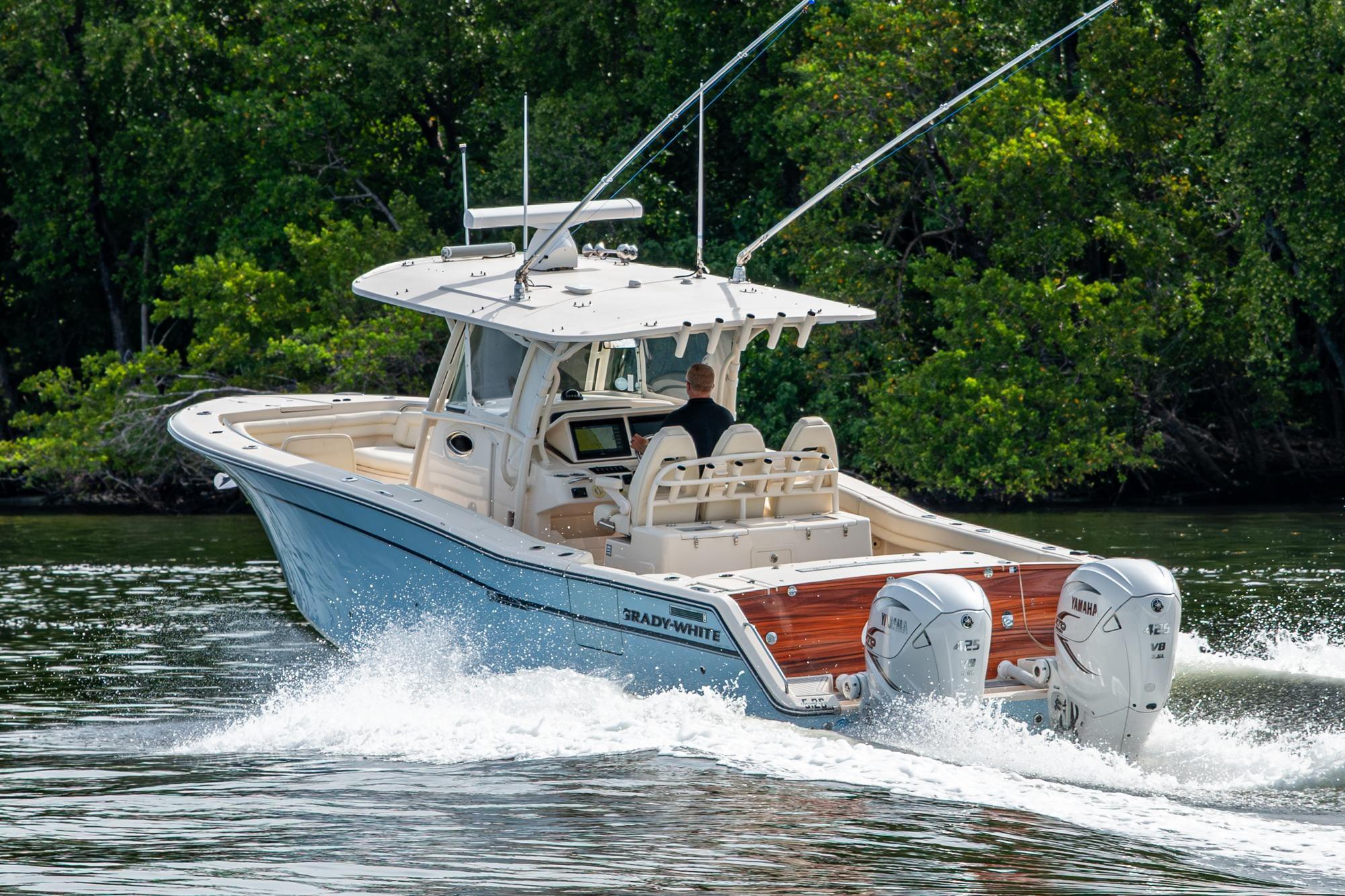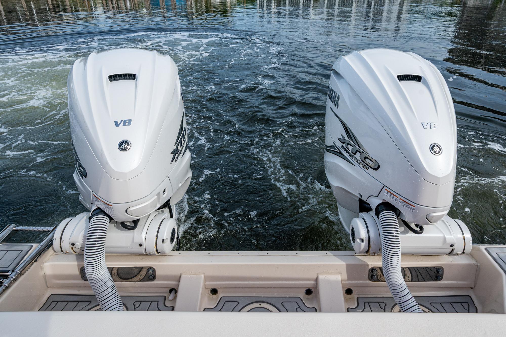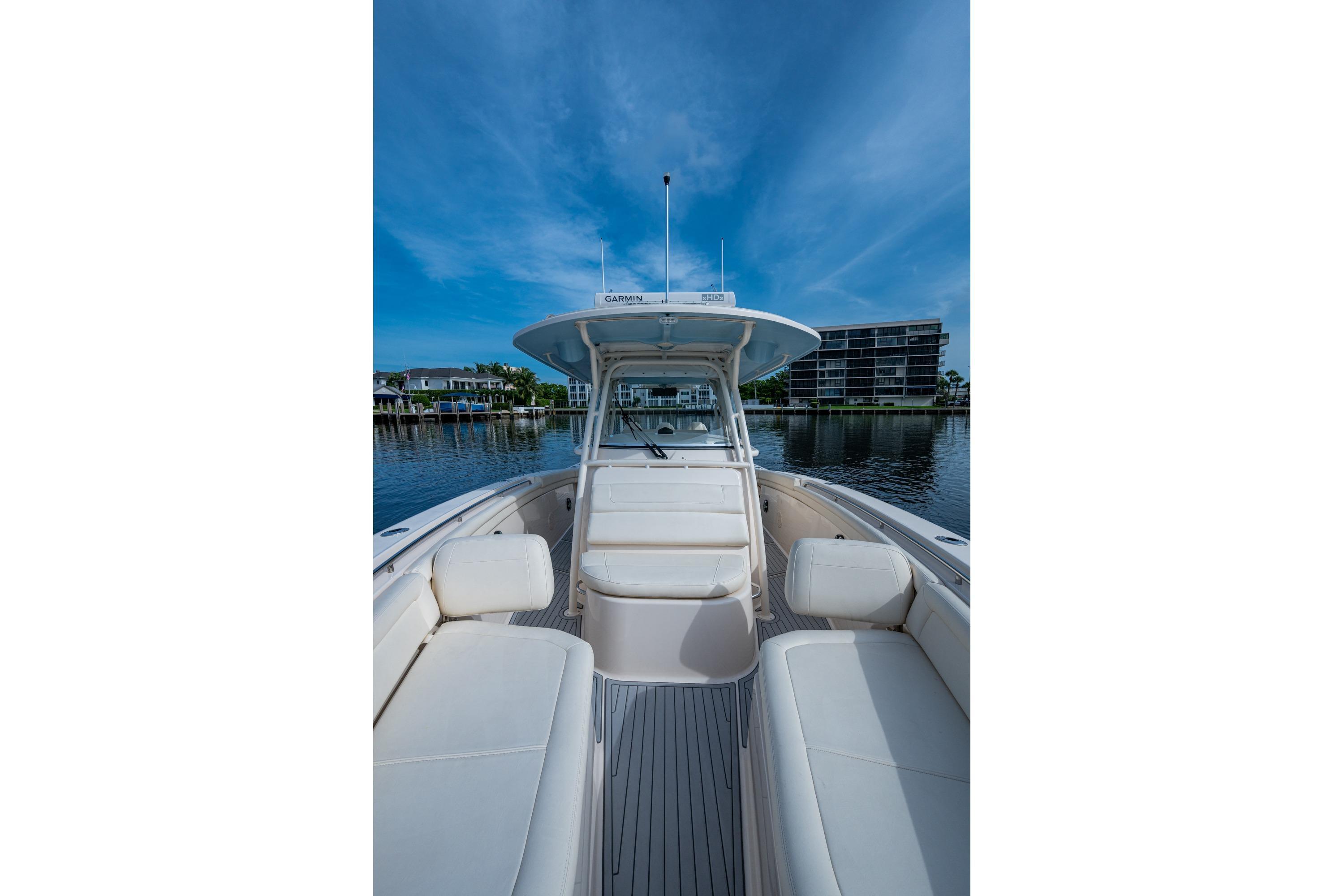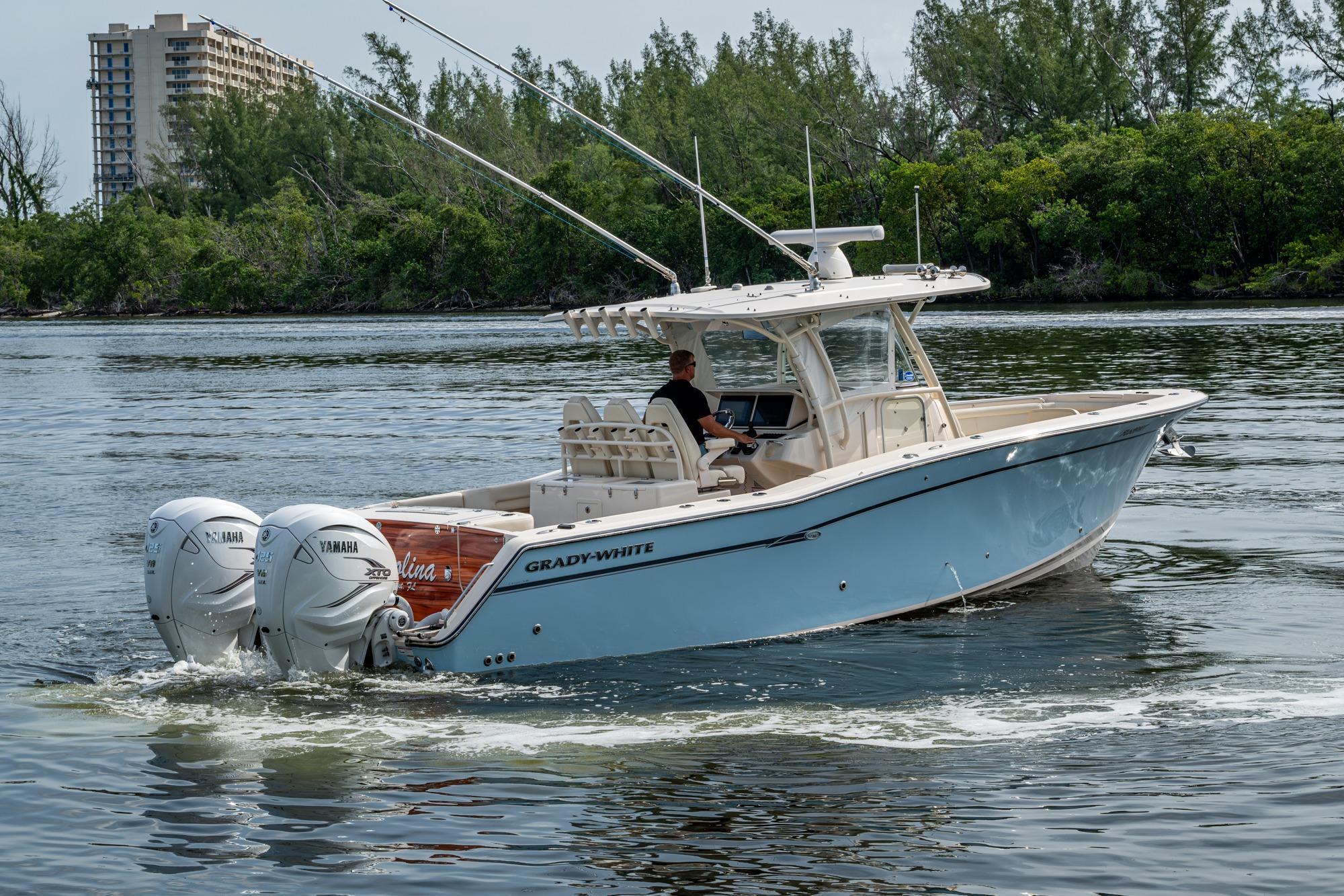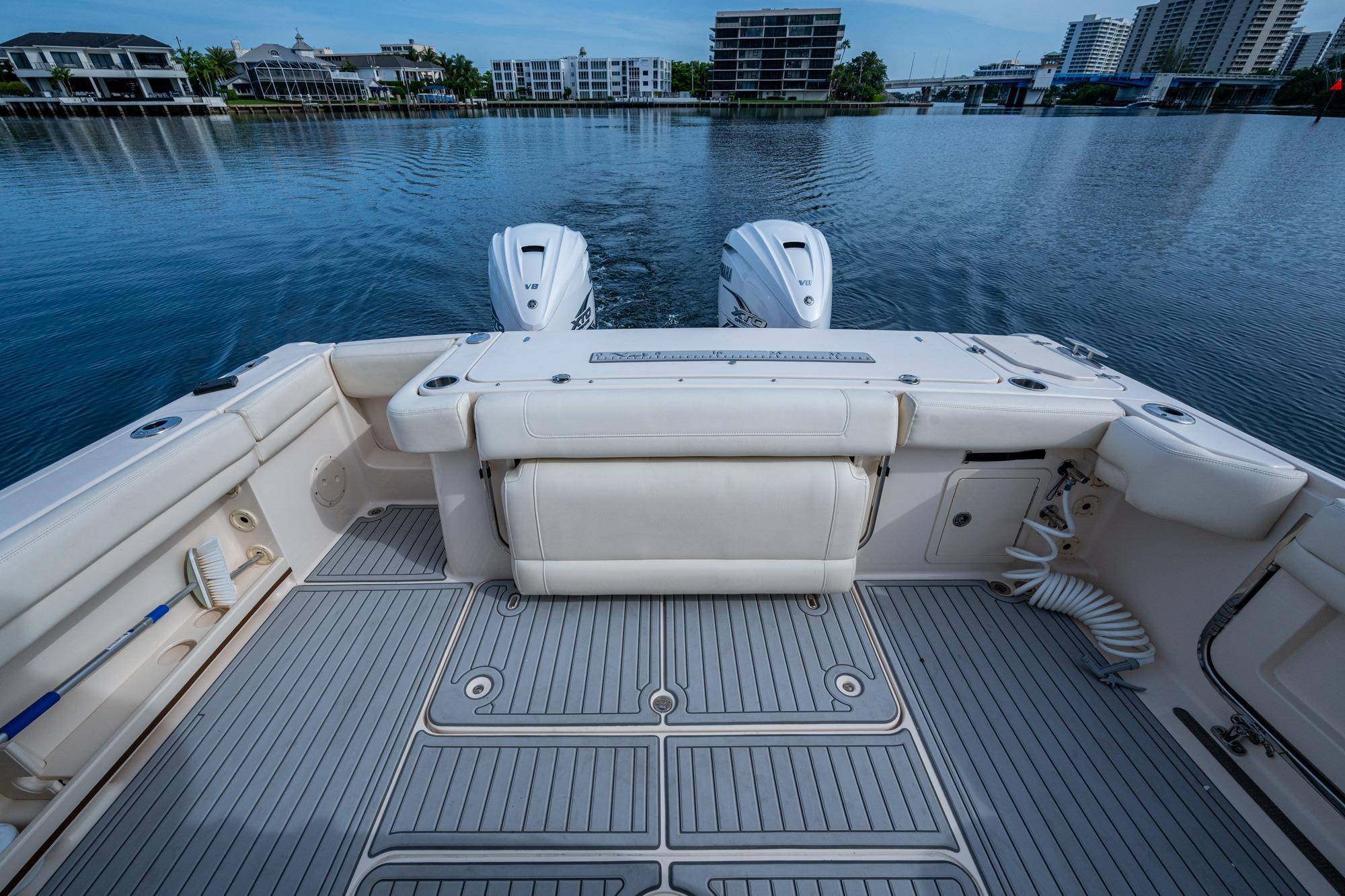 2019 Grady-White 330 Express – Twin Yamaha XTO 425s – Offshore ReadyThe 2019 Grady-White 330 Express is the ultimate combination of offshore performance, fishability, and comfort. Powered by twin Yamaha XTO Offshore 425s, this boat delivers the torque and reliability needed for serious runs offshore, while still offering premium features for weekend cruising. Outfitted with a full electronics package, generator, air conditioning, and every major fishing upgrade, she’s 100% turn-key and ready for her next owner.SpecificationsLength Overall: 33’ 6”Beam: 11’ 7”Draft: 27”Weight: Approx. 10,000 lbs (dry)Fuel Capacity: 331 gallonsWater Capacity: 44 gallonsHolding Tank: 10 gallonsPower & PerformanceEngines: Twin Yamaha XTO Offshore 425s (approx. XXXX hours)Stainless steel props with digital electronic controlsBow Thruster for confident low-speed maneuveringCruise comfortably at 30+ knots | Top speed in the 50s (depending on load/props)Helm & ElectronicsDual multi-function displays with integrated chartplotter, sonar, and radarOpen-array radar for offshore visibilityAutopilot for hands-free navigationVHF radio with AISYamaha CL7 engine monitoring displaysWindlass with helm controlTrim tabs & remote spotlightFishing FeaturesHardtop with outriggers45-gallon livewell with lightDual insulated fish boxes with macerator pump-outsRod holders throughout gunwales, transom, and hardtopRigging/tackle storage drawersCockpit sink & prep stationTransom door for hauling big fish or divingComfort & Cruising FeaturesHelm deck air conditioning with full enclosureAdjustable captain’s chair with companion seatingFold-away aft cockpit bench seatCockpit refrigerator/freezer (if equipped)Premium Fusion/JL Audio stereo systemSwim platform with integrated boarding ladderHot/cold freshwater transom showerCabin & AccommodationsSleeps 2 comfortably (forward V-berth)Galley: refrigerator, microwave, cooktop, sink, Corian countersTeak cabinetry and flooring throughoutEnclosed head with electric flush toilet, sink, and stand-up showerAmple storage for gear and suppliesConditionMeticulously maintained, fully serviced, and lift-kept (if true). All systems are operational — this boat is turn-key and Bahamas/Bimini ready.