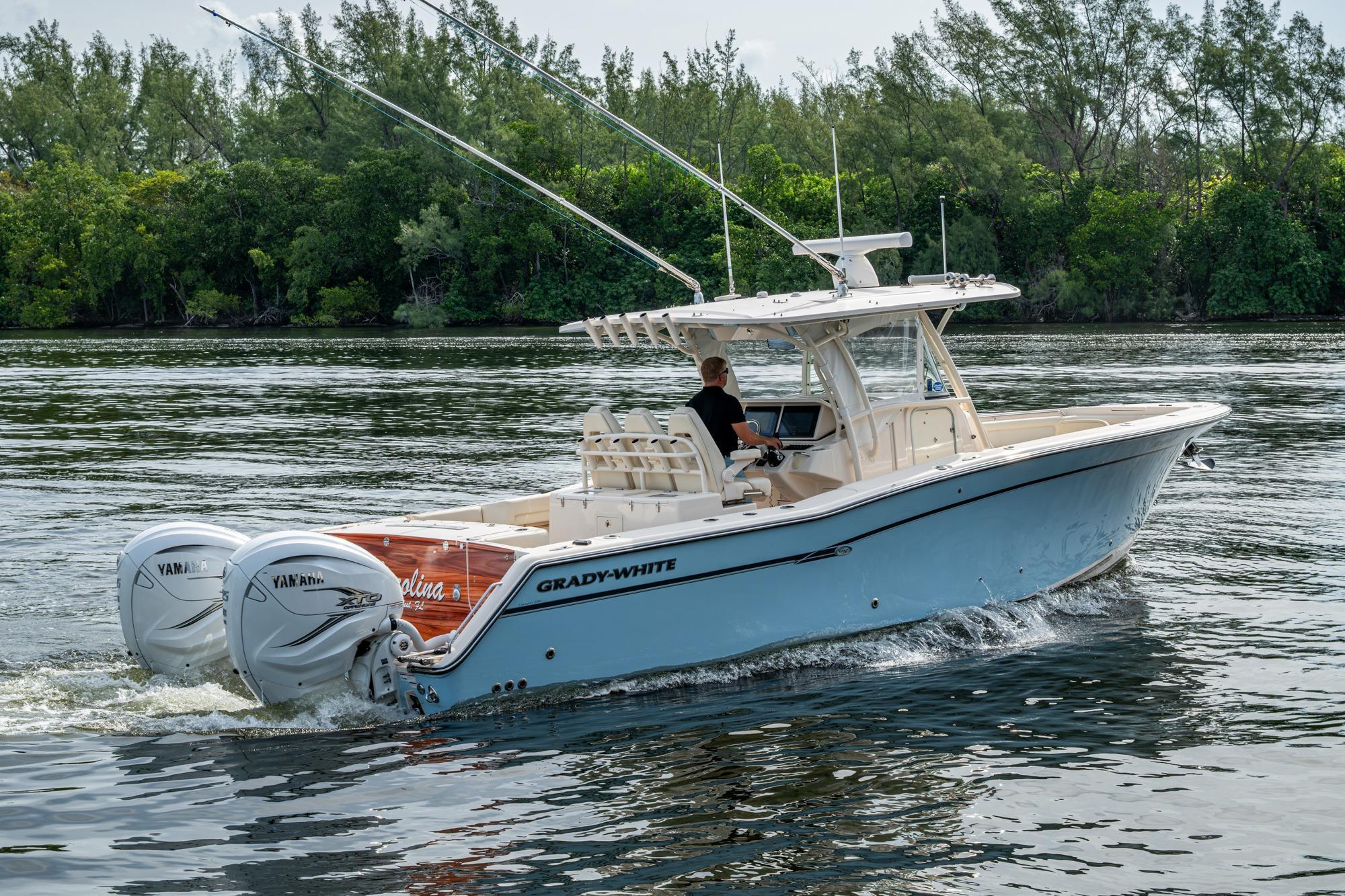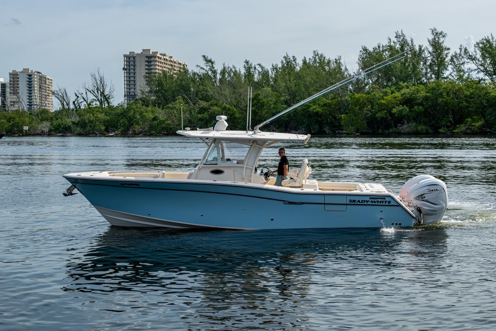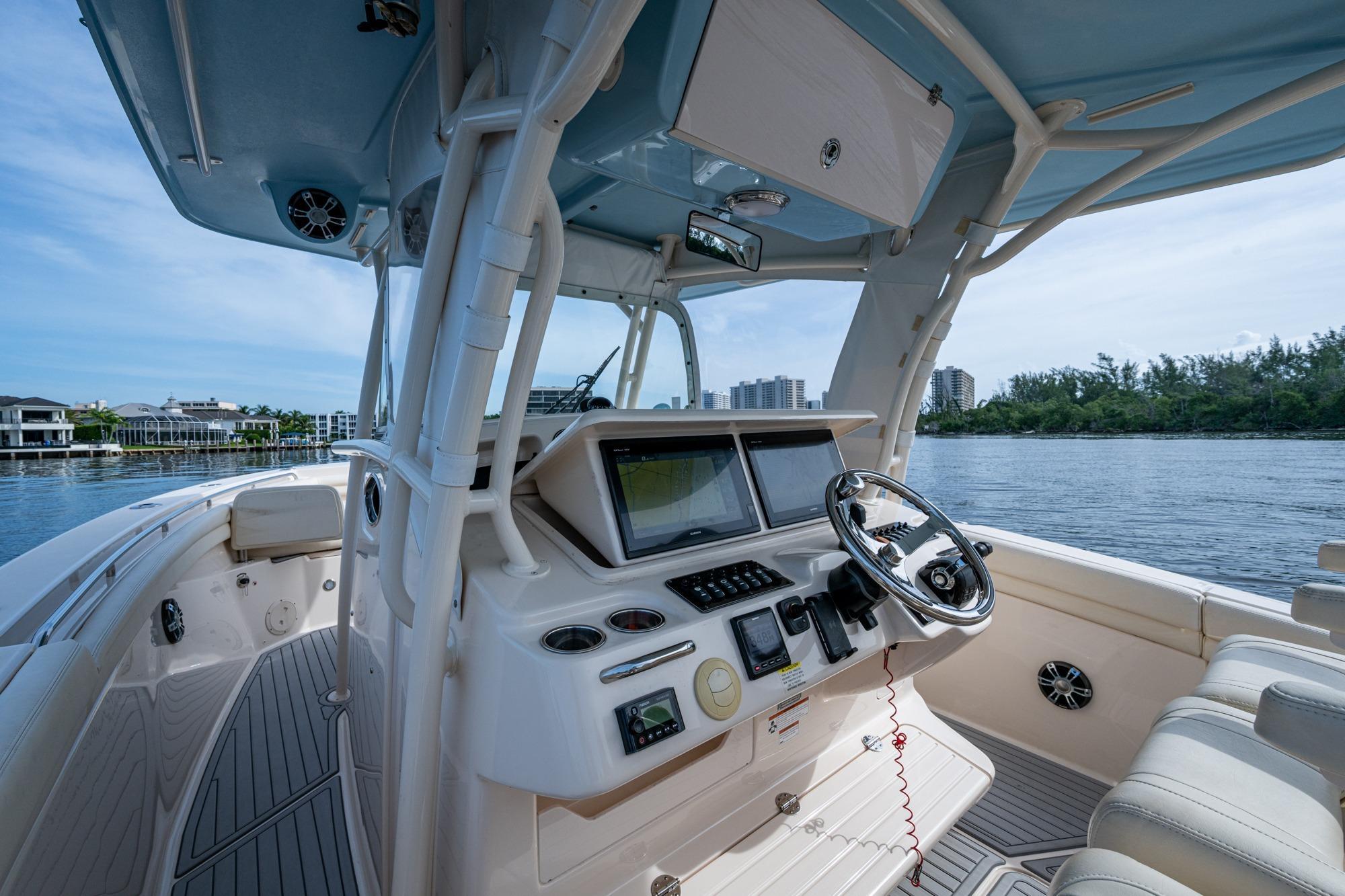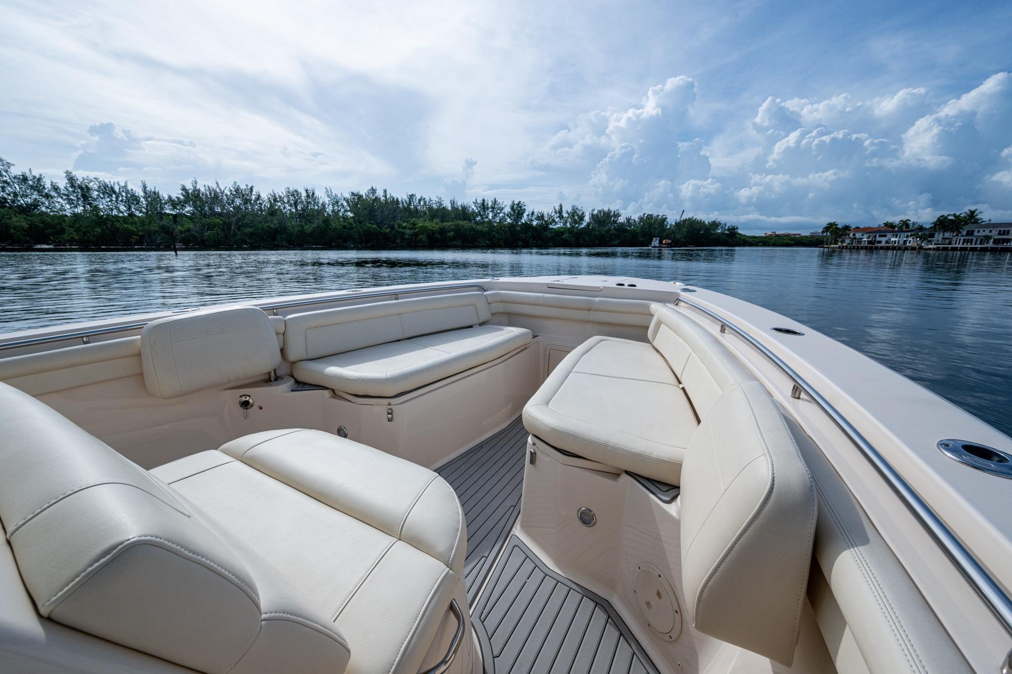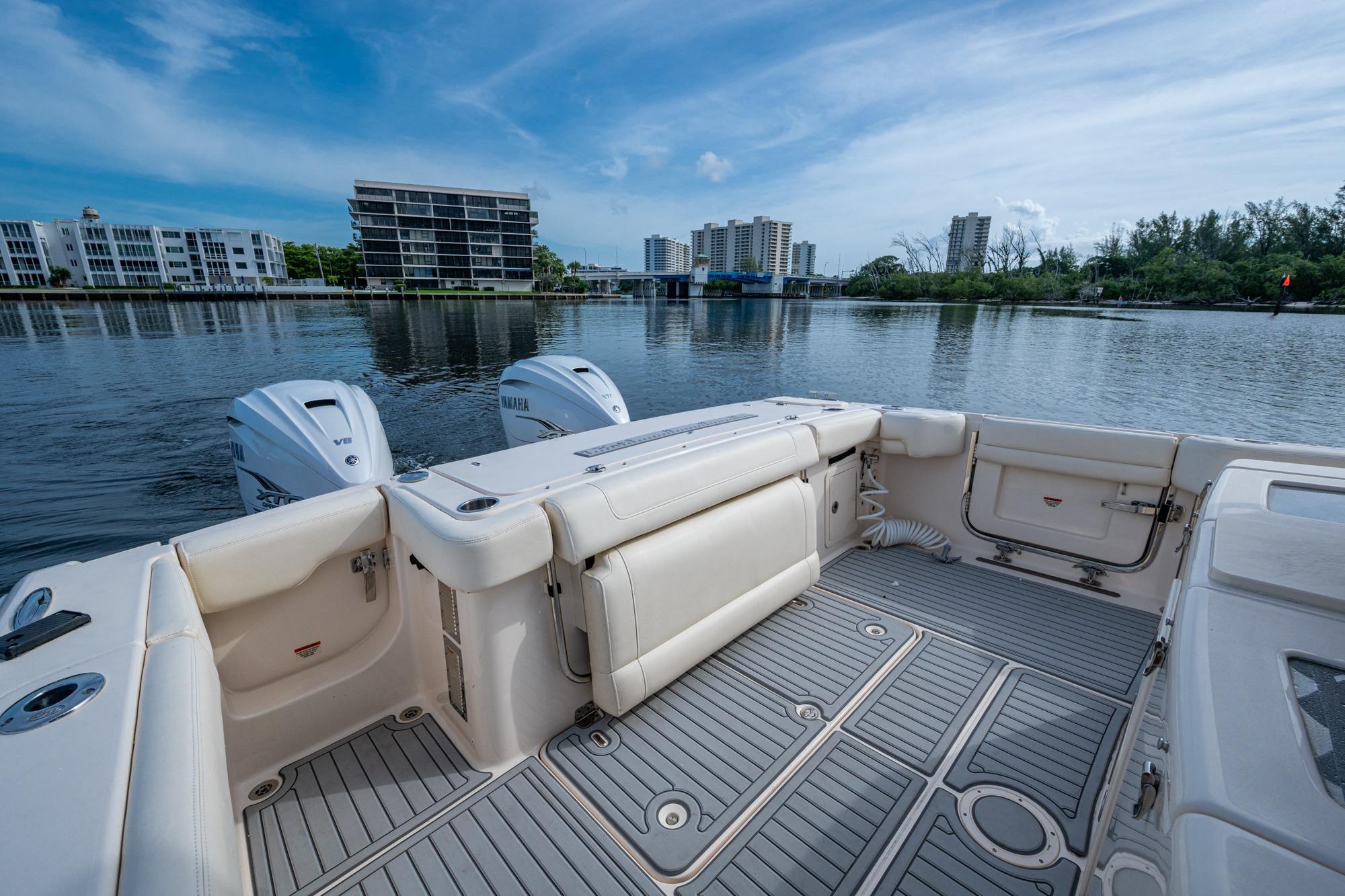 2019 Grady-White 330 Express – Twin Yamaha XTO 425s – Offshore ReadyThe 2019 Grady-White 330 Express is the ultimate combination of offshore performance, fishability, and comfort. Powered by twin Yamaha XTO Offshore 425s, this boat delivers the torque and reliability needed for serious runs offshore, while still offering premium features for weekend cruising. Outfitted with a full electronics package, generator, air conditioning, and every major fishing upgrade, she’s 100% turn-key and ready for her next owner.SpecificationsLength Overall: 33’ 6”Beam: 11’ 7”Draft: 27”Weight: Approx. 10,000 lbs (dry)Fuel Capacity: 331 gallonsWater Capacity: 44 gallonsHolding Tank: 10 gallonsPower & PerformanceEngines: Twin Yamaha XTO Offshore 425s (approx. XXXX hours)Stainless steel props with digital electronic controlsBow Thruster for confident low-speed maneuveringCruise comfortably at 30+ knots | Top speed in the 50s (depending on load/props)Helm & ElectronicsDual multi-function displays with integrated chartplotter, sonar, and radarOpen-array radar for offshore visibilityAutopilot for hands-free navigationVHF radio with AISYamaha CL7 engine monitoring displaysWindlass with helm controlTrim tabs & remote spotlightFishing FeaturesHardtop with outriggers45-gallon livewell with lightDual insulated fish boxes with macerator pump-outsRod holders throughout gunwales, transom, and hardtopRigging/tackle storage drawersCockpit sink & prep stationTransom door for hauling big fish or divingComfort & Cruising FeaturesHelm deck air conditioning with full enclosureAdjustable captain’s chair with companion seatingFold-away aft cockpit bench seatCockpit refrigerator/freezer (if equipped)Premium Fusion/JL Audio stereo systemSwim platform with integrated boarding ladderHot/cold freshwater transom showerCabin & AccommodationsSleeps 2 comfortably (forward V-berth)Galley: refrigerator, microwave, cooktop, sink, Corian countersTeak cabinetry and flooring throughoutEnclosed head with electric flush toilet, sink, and stand-up showerAmple storage for gear and suppliesConditionMeticulously maintained, fully serviced, and lift-kept (if true). All systems are operational — this boat is turn-key and Bahamas/Bimini ready.