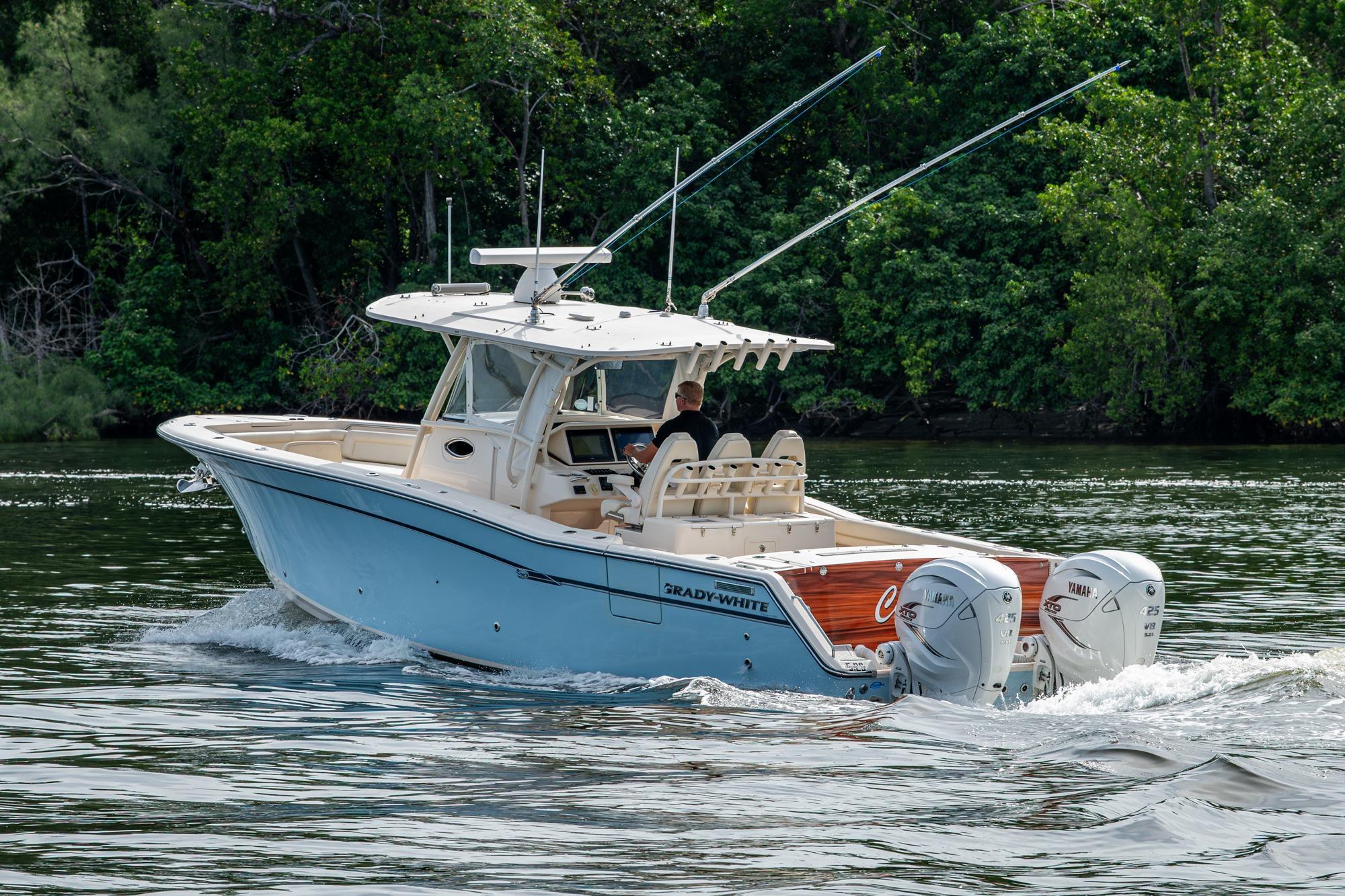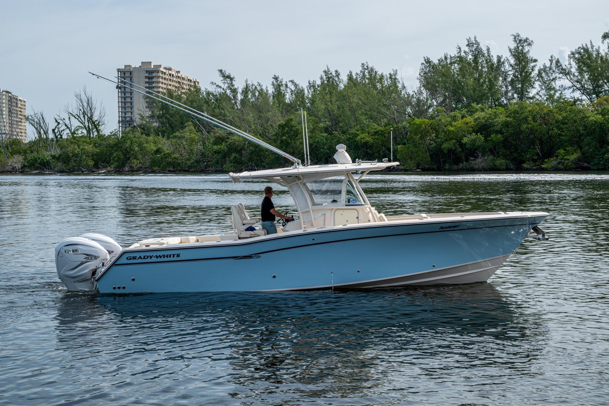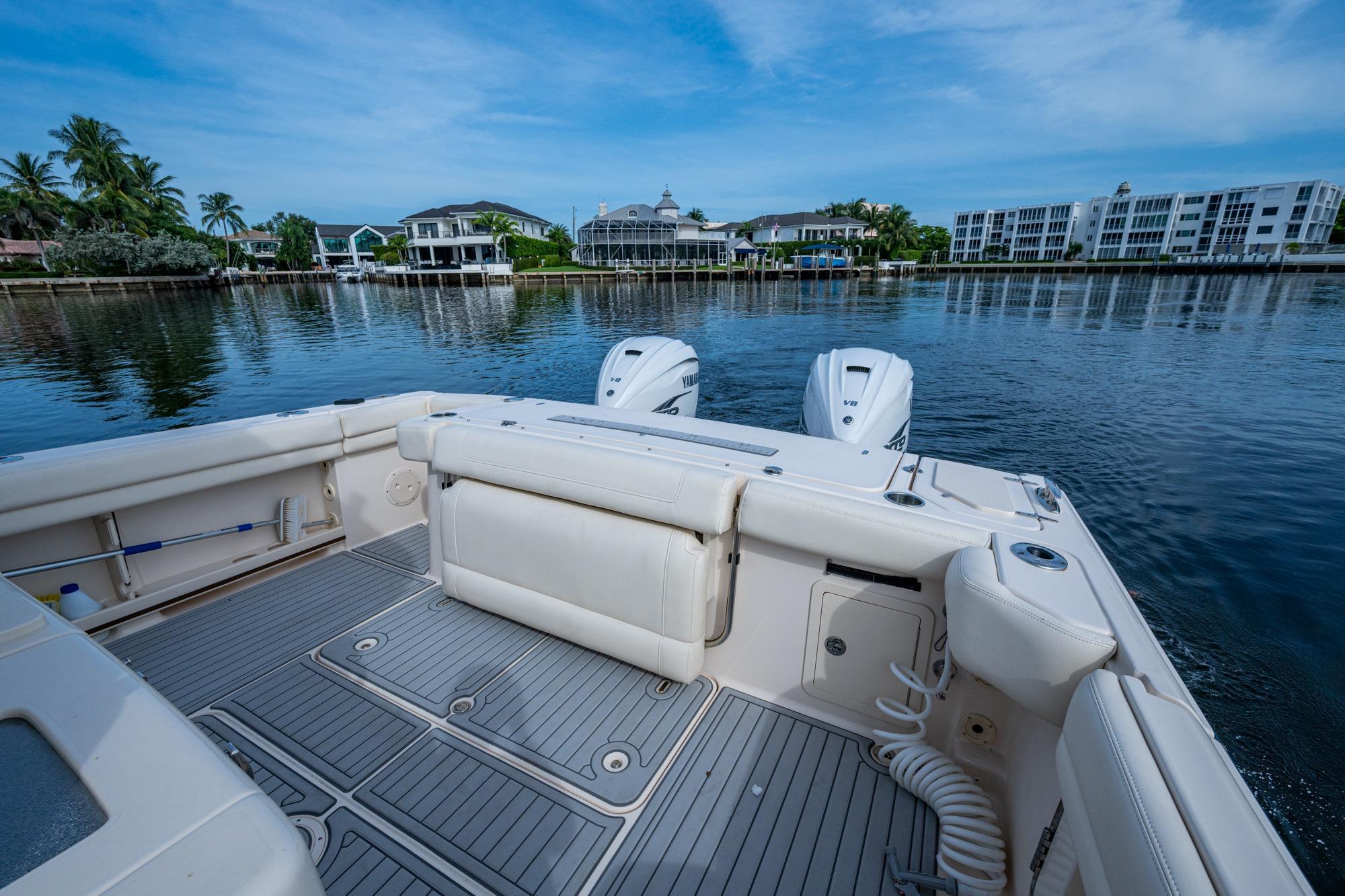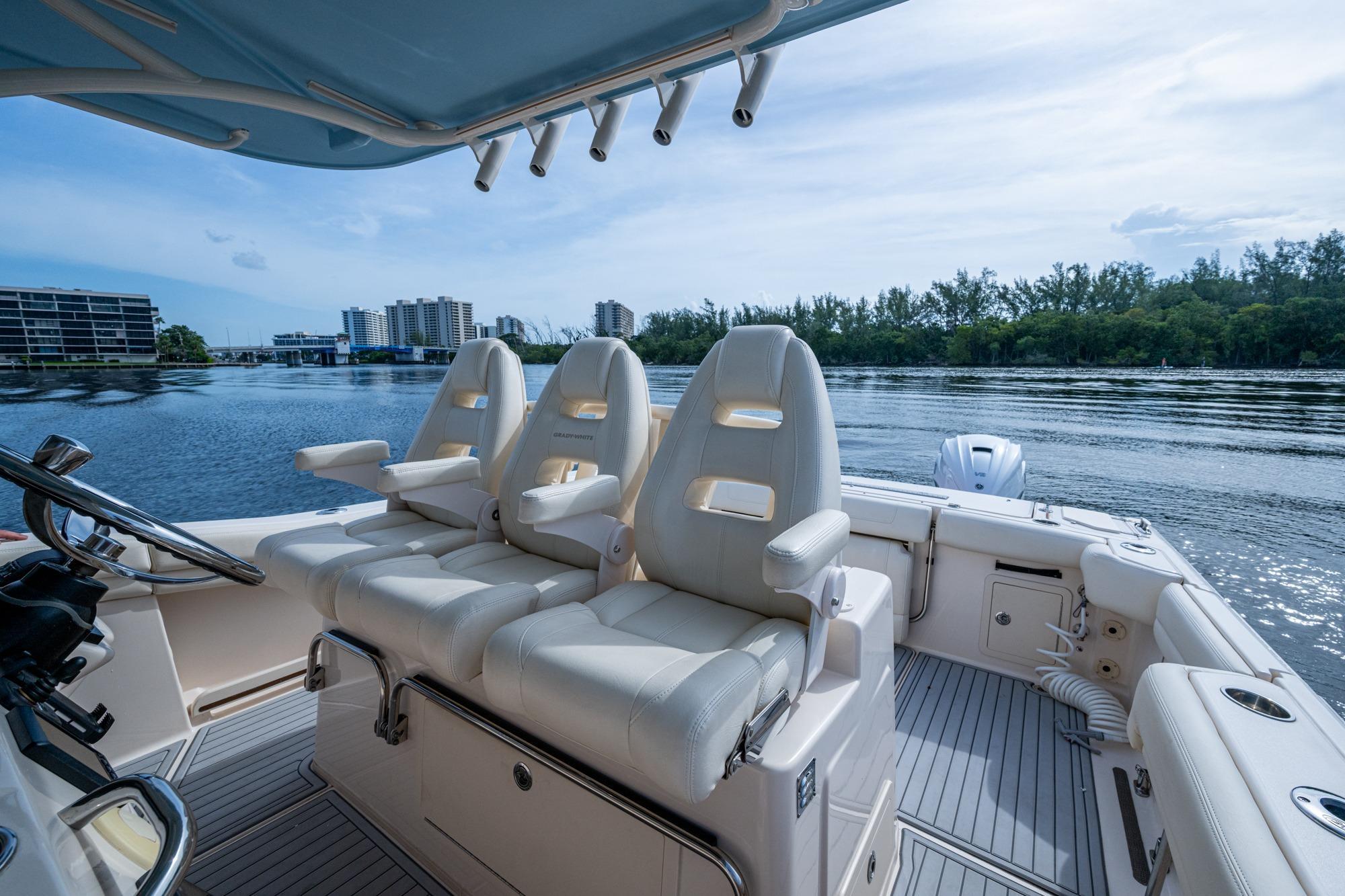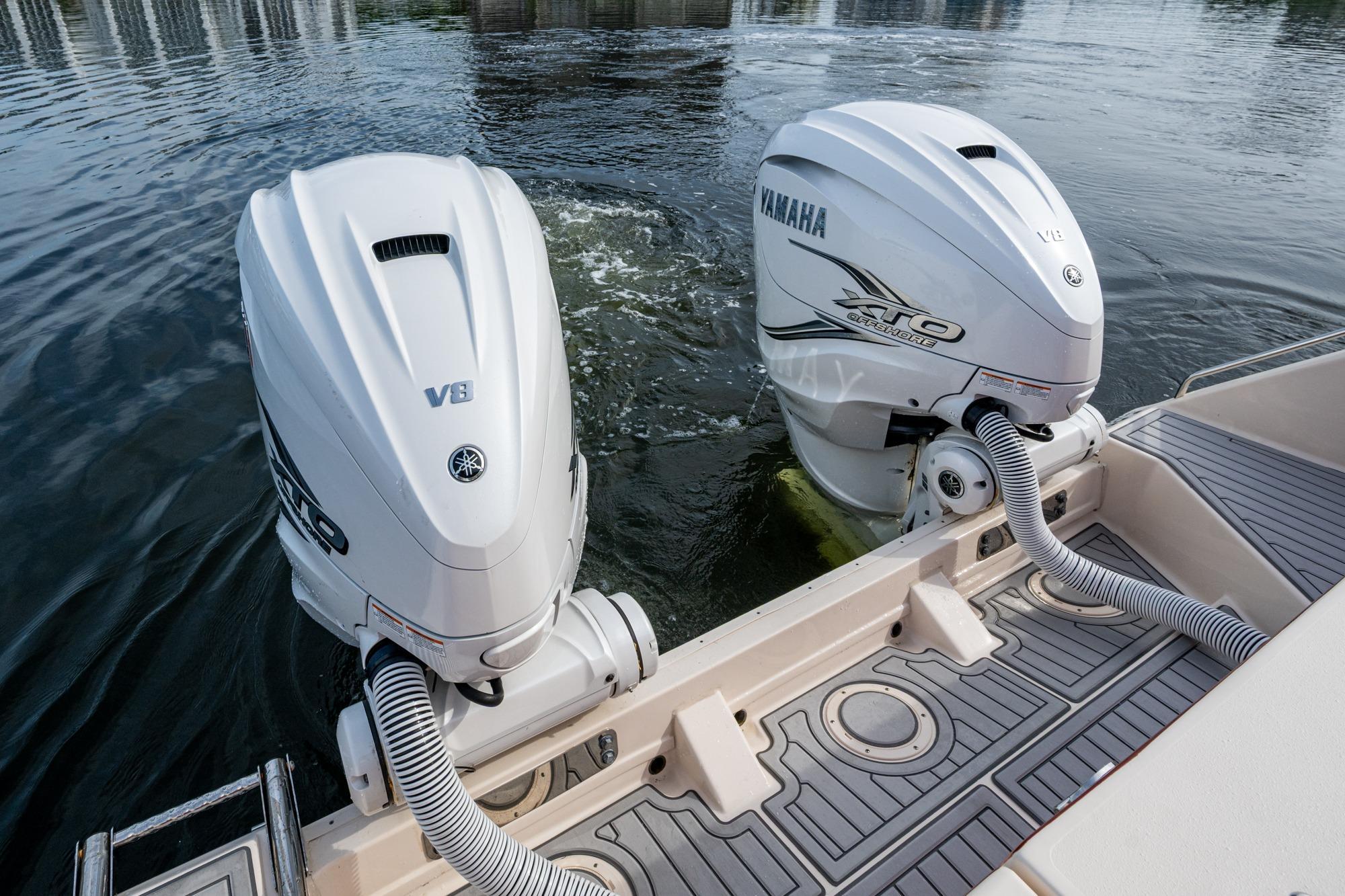 2019 Grady-White 330 Express – Twin Yamaha XTO 425s – Offshore ReadyThe 2019 Grady-White 330 Express is the ultimate combination of offshore performance, fishability, and comfort. Powered by twin Yamaha XTO Offshore 425s, this boat delivers the torque and reliability needed for serious runs offshore, while still offering premium features for weekend cruising. Outfitted with a full electronics package, generator, air conditioning, and every major fishing upgrade, she’s 100% turn-key and ready for her next owner.SpecificationsLength Overall: 33’ 6”Beam: 11’ 7”Draft: 27”Weight: Approx. 10,000 lbs (dry)Fuel Capacity: 331 gallonsWater Capacity: 44 gallonsHolding Tank: 10 gallonsPower & PerformanceEngines: Twin Yamaha XTO Offshore 425s (approx. XXXX hours)Stainless steel props with digital electronic controlsBow Thruster for confident low-speed maneuveringCruise comfortably at 30+ knots | Top speed in the 50s (depending on load/props)Helm & ElectronicsDual multi-function displays with integrated chartplotter, sonar, and radarOpen-array radar for offshore visibilityAutopilot for hands-free navigationVHF radio with AISYamaha CL7 engine monitoring displaysWindlass with helm controlTrim tabs & remote spotlightFishing FeaturesHardtop with outriggers45-gallon livewell with lightDual insulated fish boxes with macerator pump-outsRod holders throughout gunwales, transom, and hardtopRigging/tackle storage drawersCockpit sink & prep stationTransom door for hauling big fish or divingComfort & Cruising FeaturesHelm deck air conditioning with full enclosureAdjustable captain’s chair with companion seatingFold-away aft cockpit bench seatCockpit refrigerator/freezer (if equipped)Premium Fusion/JL Audio stereo systemSwim platform with integrated boarding ladderHot/cold freshwater transom showerCabin & AccommodationsSleeps 2 comfortably (forward V-berth)Galley: refrigerator, microwave, cooktop, sink, Corian countersTeak cabinetry and flooring throughoutEnclosed head with electric flush toilet, sink, and stand-up showerAmple storage for gear and suppliesConditionMeticulously maintained, fully serviced, and lift-kept (if true). All systems are operational — this boat is turn-key and Bahamas/Bimini ready.