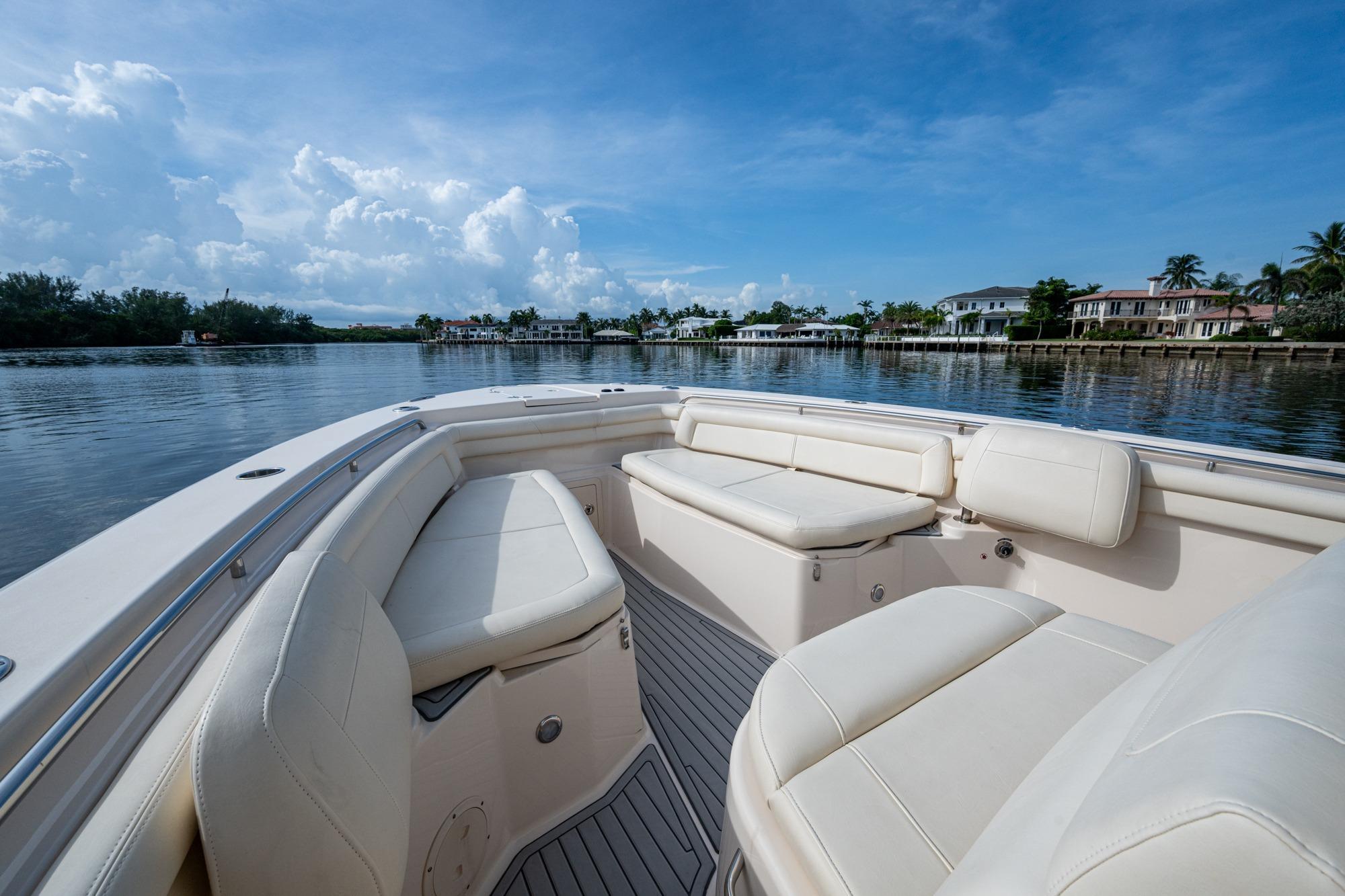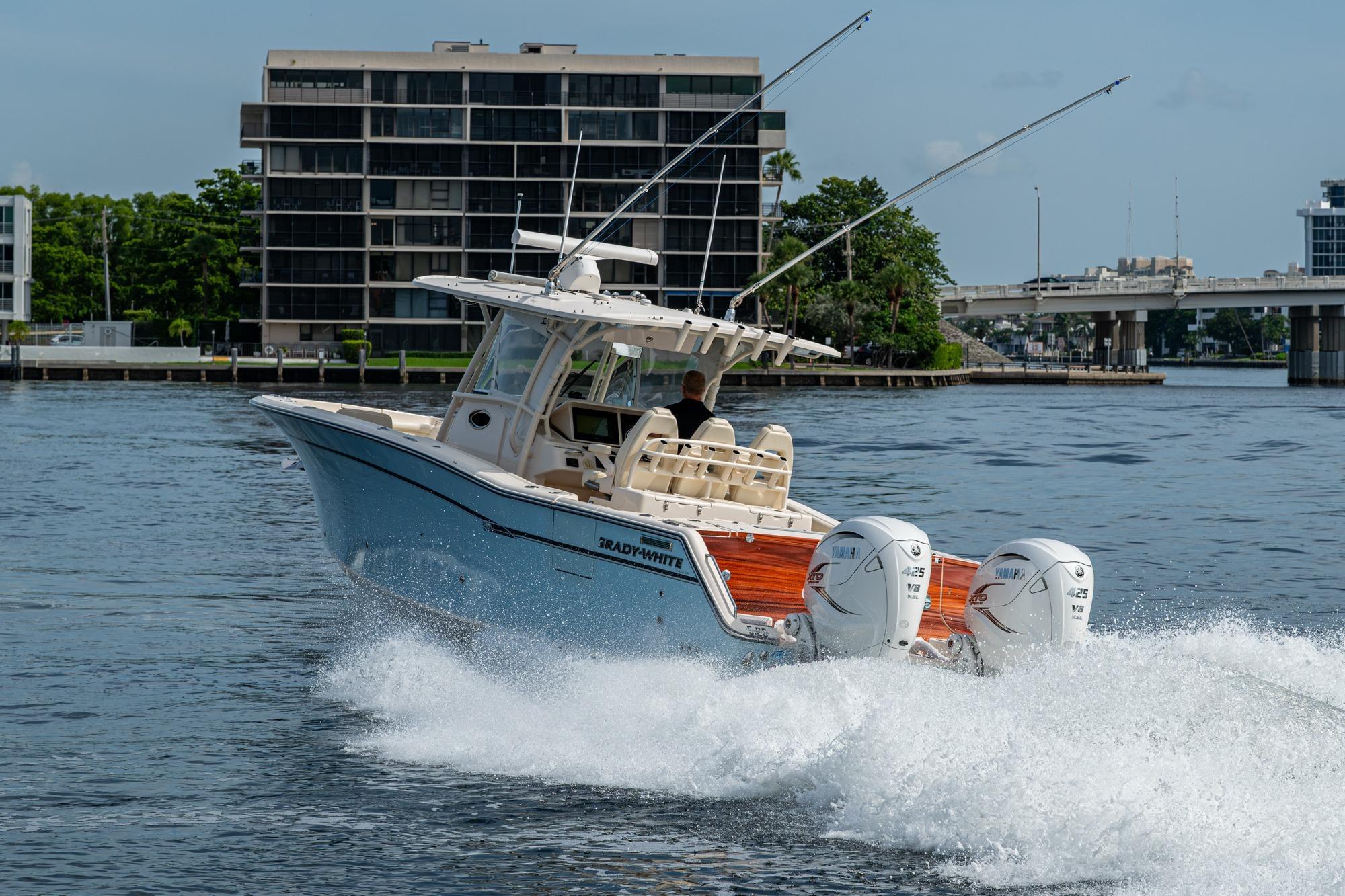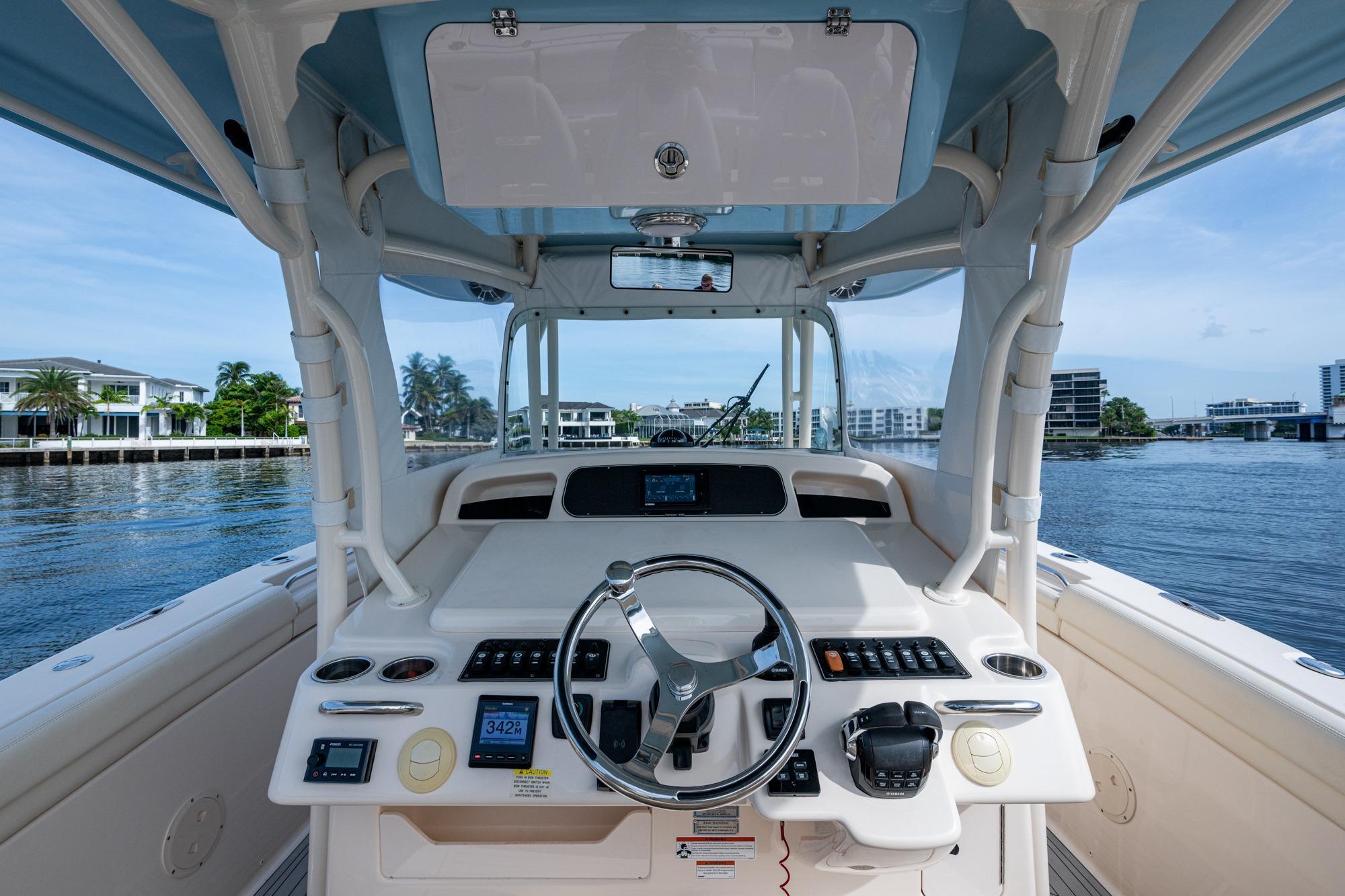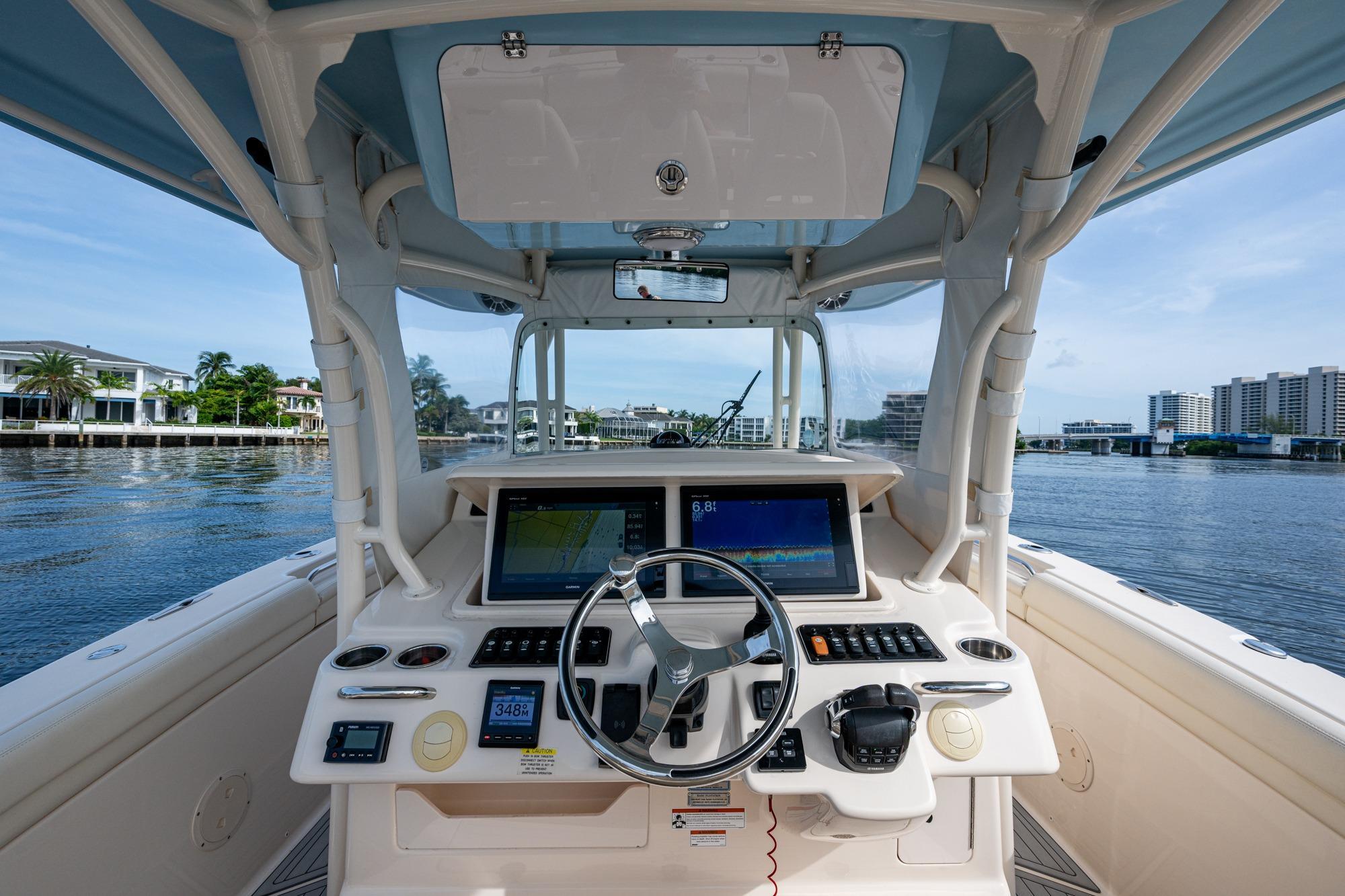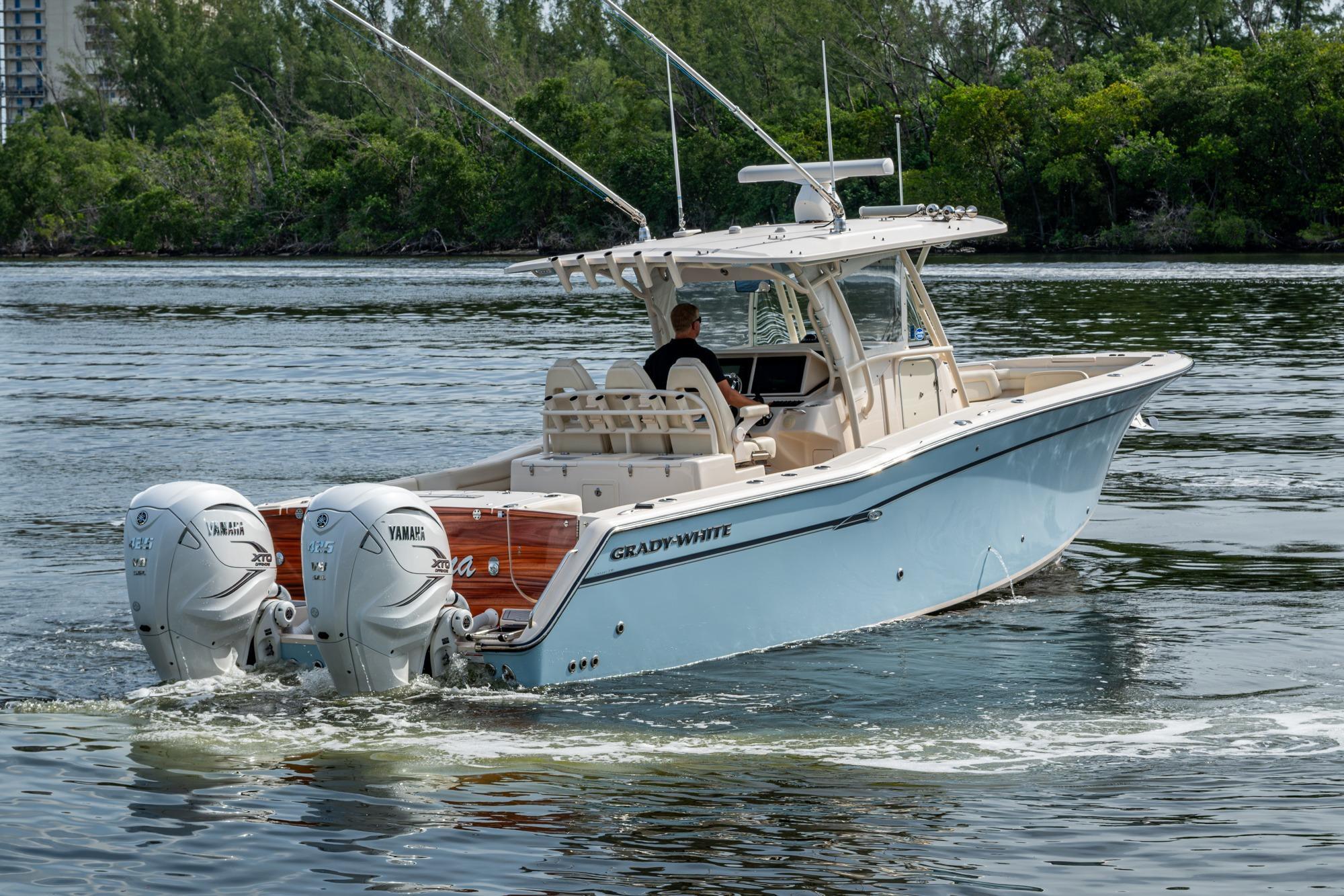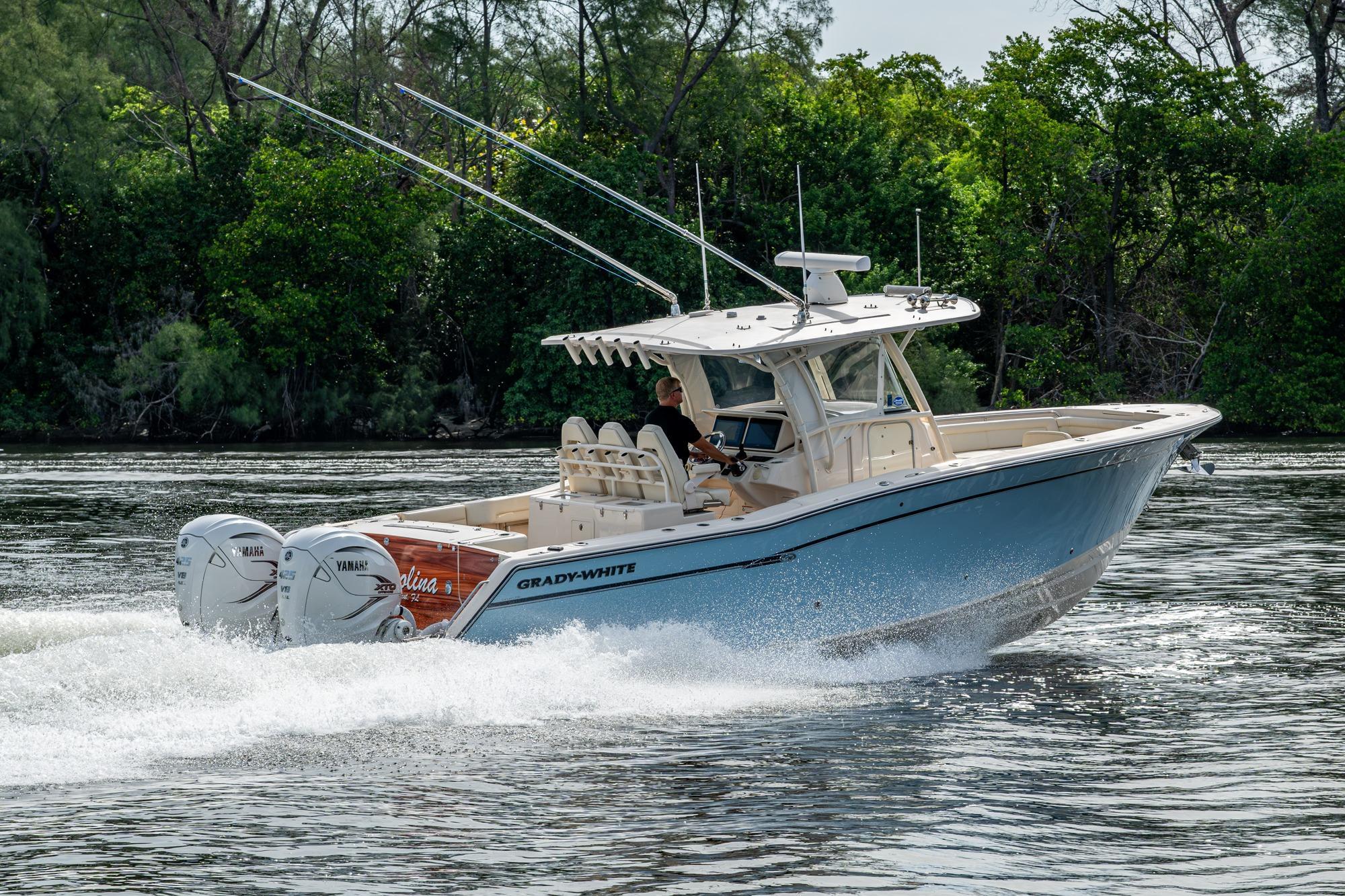 2019 Grady-White 330 Express – Twin Yamaha XTO 425s – Offshore ReadyThe 2019 Grady-White 330 Express is the ultimate combination of offshore performance, fishability, and comfort. Powered by twin Yamaha XTO Offshore 425s, this boat delivers the torque and reliability needed for serious runs offshore, while still offering premium features for weekend cruising. Outfitted with a full electronics package, generator, air conditioning, and every major fishing upgrade, she’s 100% turn-key and ready for her next owner.SpecificationsLength Overall: 33’ 6”Beam: 11’ 7”Draft: 27”Weight: Approx. 10,000 lbs (dry)Fuel Capacity: 331 gallonsWater Capacity: 44 gallonsHolding Tank: 10 gallonsPower & PerformanceEngines: Twin Yamaha XTO Offshore 425s (approx. XXXX hours)Stainless steel props with digital electronic controlsBow Thruster for confident low-speed maneuveringCruise comfortably at 30+ knots | Top speed in the 50s (depending on load/props)Helm & ElectronicsDual multi-function displays with integrated chartplotter, sonar, and radarOpen-array radar for offshore visibilityAutopilot for hands-free navigationVHF radio with AISYamaha CL7 engine monitoring displaysWindlass with helm controlTrim tabs & remote spotlightFishing FeaturesHardtop with outriggers45-gallon livewell with lightDual insulated fish boxes with macerator pump-outsRod holders throughout gunwales, transom, and hardtopRigging/tackle storage drawersCockpit sink & prep stationTransom door for hauling big fish or divingComfort & Cruising FeaturesHelm deck air conditioning with full enclosureAdjustable captain’s chair with companion seatingFold-away aft cockpit bench seatCockpit refrigerator/freezer (if equipped)Premium Fusion/JL Audio stereo systemSwim platform with integrated boarding ladderHot/cold freshwater transom showerCabin & AccommodationsSleeps 2 comfortably (forward V-berth)Galley: refrigerator, microwave, cooktop, sink, Corian countersTeak cabinetry and flooring throughoutEnclosed head with electric flush toilet, sink, and stand-up showerAmple storage for gear and suppliesConditionMeticulously maintained, fully serviced, and lift-kept (if true). All systems are operational — this boat is turn-key and Bahamas/Bimini ready.