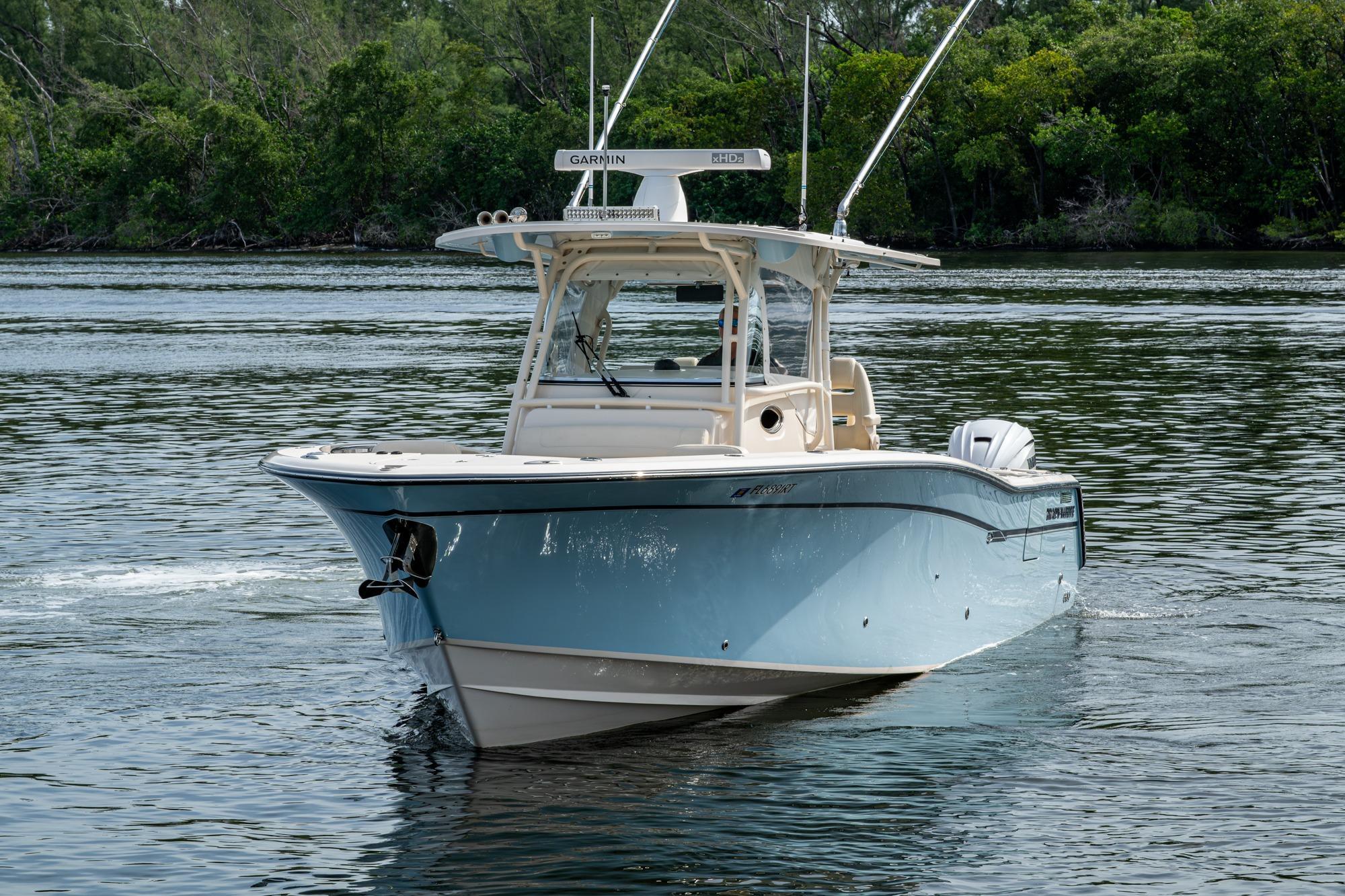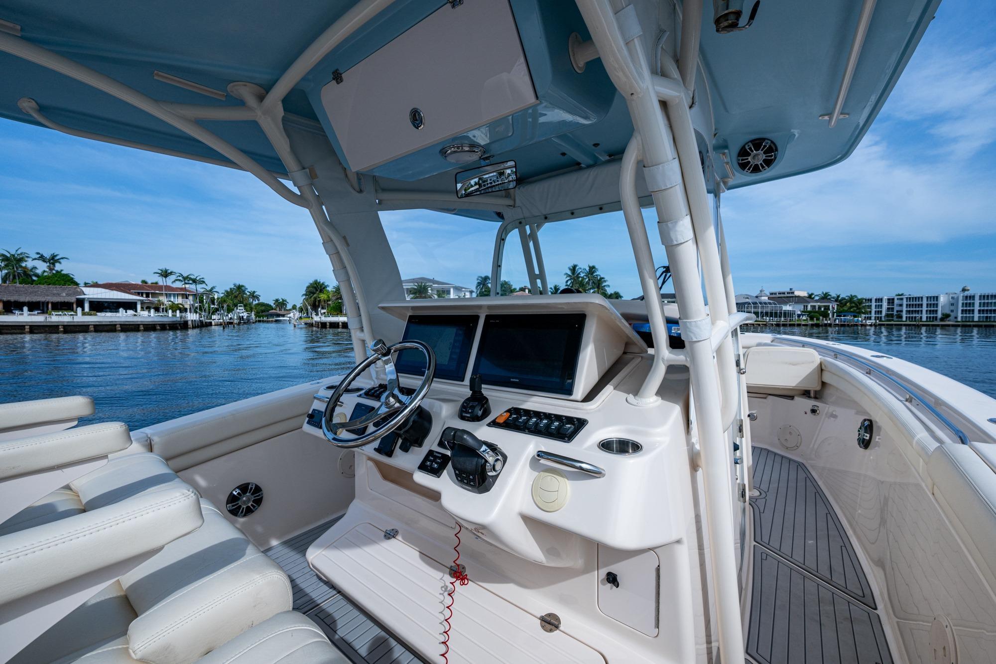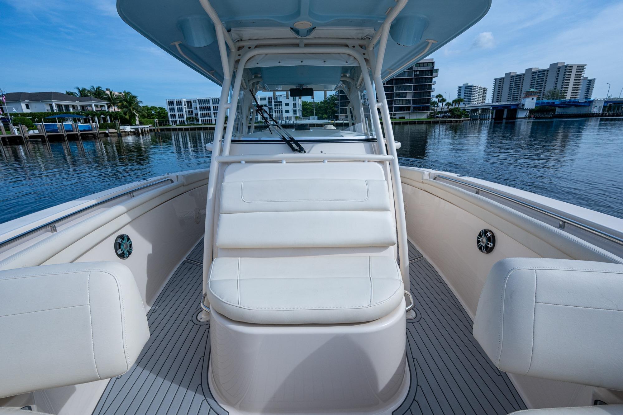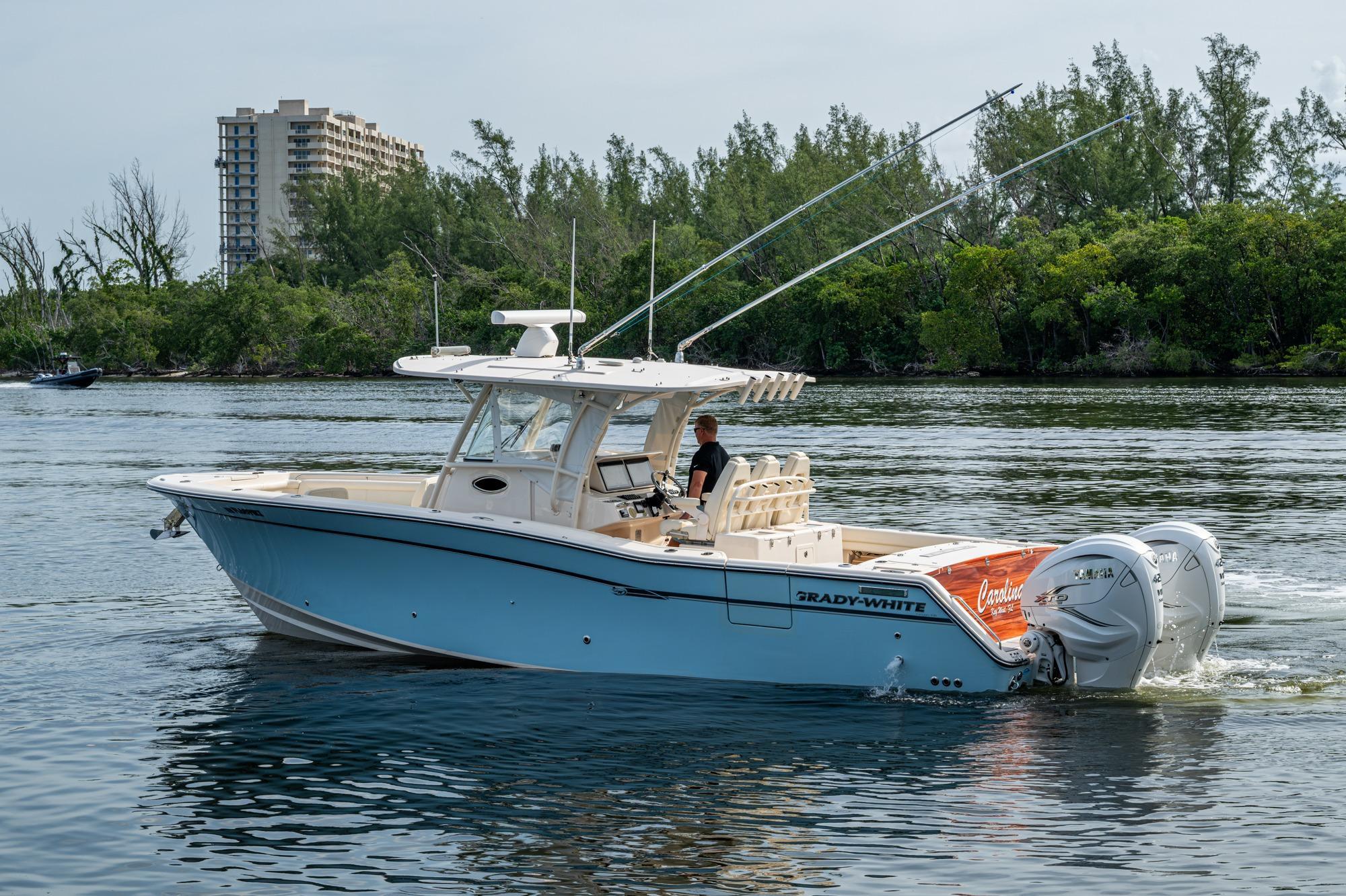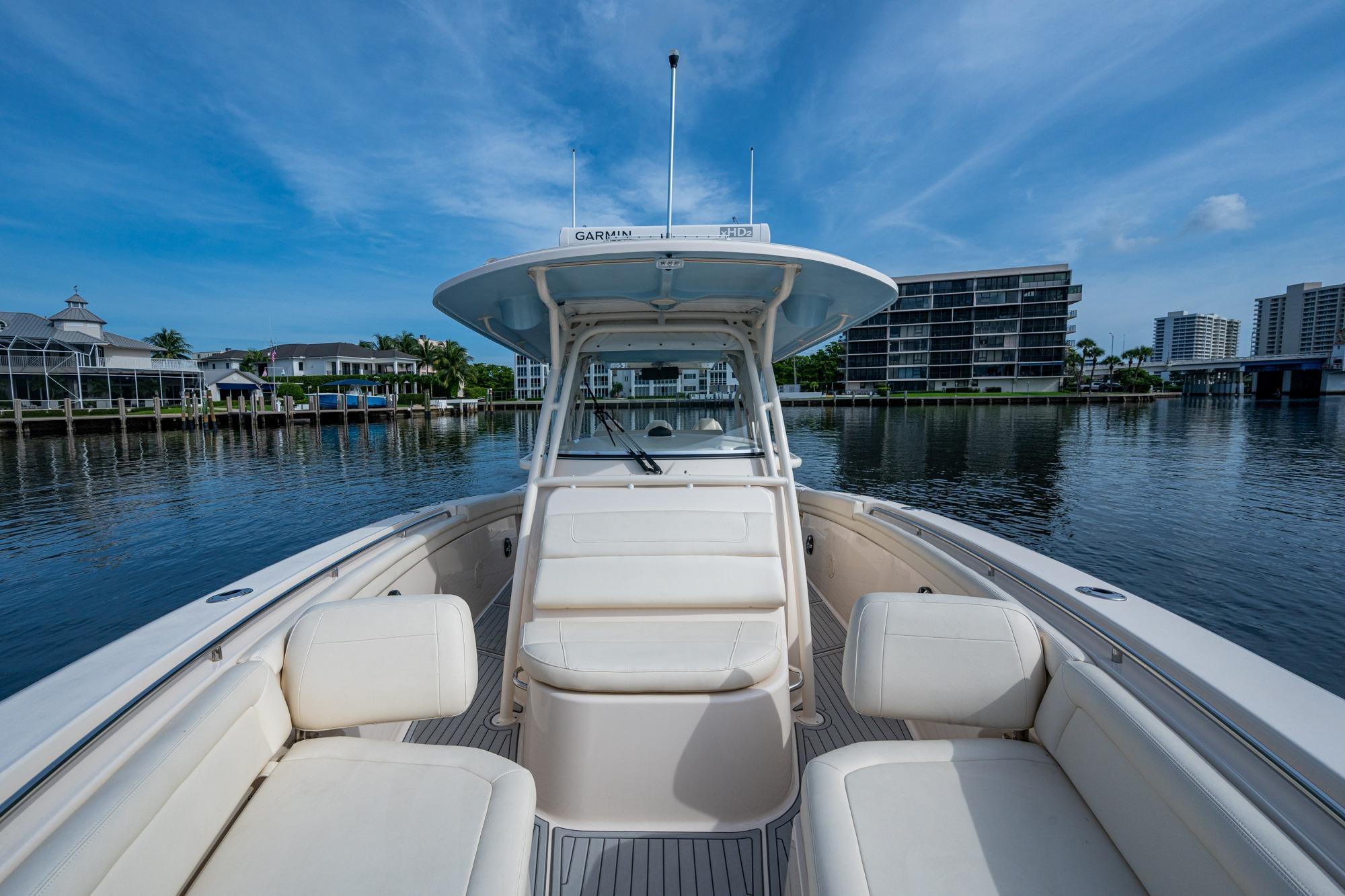 2019 Grady-White 330 Express – Twin Yamaha XTO 425s – Offshore ReadyThe 2019 Grady-White 330 Express is the ultimate combination of offshore performance, fishability, and comfort. Powered by twin Yamaha XTO Offshore 425s, this boat delivers the torque and reliability needed for serious runs offshore, while still offering premium features for weekend cruising. Outfitted with a full electronics package, generator, air conditioning, and every major fishing upgrade, she’s 100% turn-key and ready for her next owner.SpecificationsLength Overall: 33’ 6”Beam: 11’ 7”Draft: 27”Weight: Approx. 10,000 lbs (dry)Fuel Capacity: 331 gallonsWater Capacity: 44 gallonsHolding Tank: 10 gallonsPower & PerformanceEngines: Twin Yamaha XTO Offshore 425s (approx. XXXX hours)Stainless steel props with digital electronic controlsBow Thruster for confident low-speed maneuveringCruise comfortably at 30+ knots | Top speed in the 50s (depending on load/props)Helm & ElectronicsDual multi-function displays with integrated chartplotter, sonar, and radarOpen-array radar for offshore visibilityAutopilot for hands-free navigationVHF radio with AISYamaha CL7 engine monitoring displaysWindlass with helm controlTrim tabs & remote spotlightFishing FeaturesHardtop with outriggers45-gallon livewell with lightDual insulated fish boxes with macerator pump-outsRod holders throughout gunwales, transom, and hardtopRigging/tackle storage drawersCockpit sink & prep stationTransom door for hauling big fish or divingComfort & Cruising FeaturesHelm deck air conditioning with full enclosureAdjustable captain’s chair with companion seatingFold-away aft cockpit bench seatCockpit refrigerator/freezer (if equipped)Premium Fusion/JL Audio stereo systemSwim platform with integrated boarding ladderHot/cold freshwater transom showerCabin & AccommodationsSleeps 2 comfortably (forward V-berth)Galley: refrigerator, microwave, cooktop, sink, Corian countersTeak cabinetry and flooring throughoutEnclosed head with electric flush toilet, sink, and stand-up showerAmple storage for gear and suppliesConditionMeticulously maintained, fully serviced, and lift-kept (if true). All systems are operational — this boat is turn-key and Bahamas/Bimini ready.