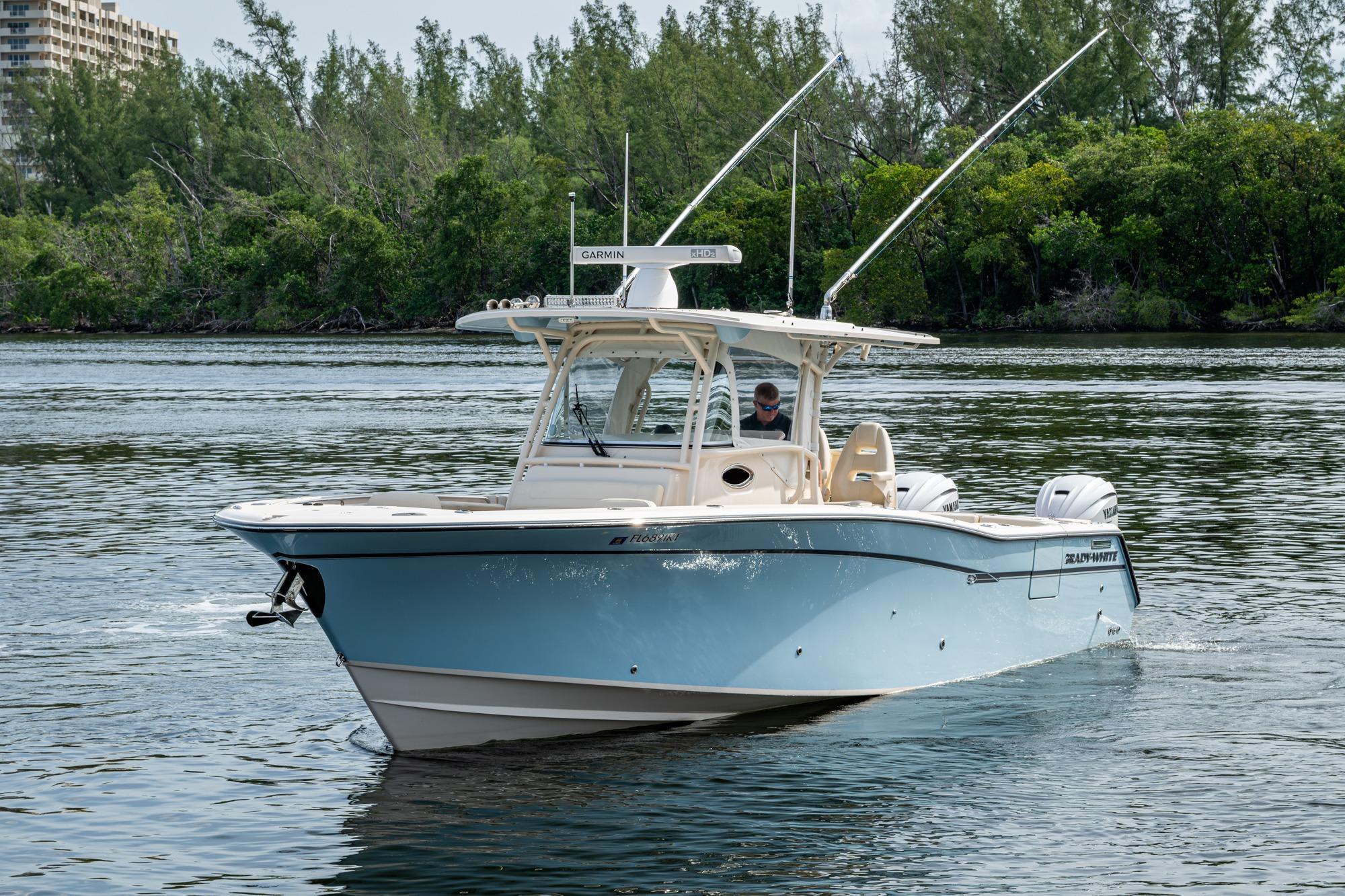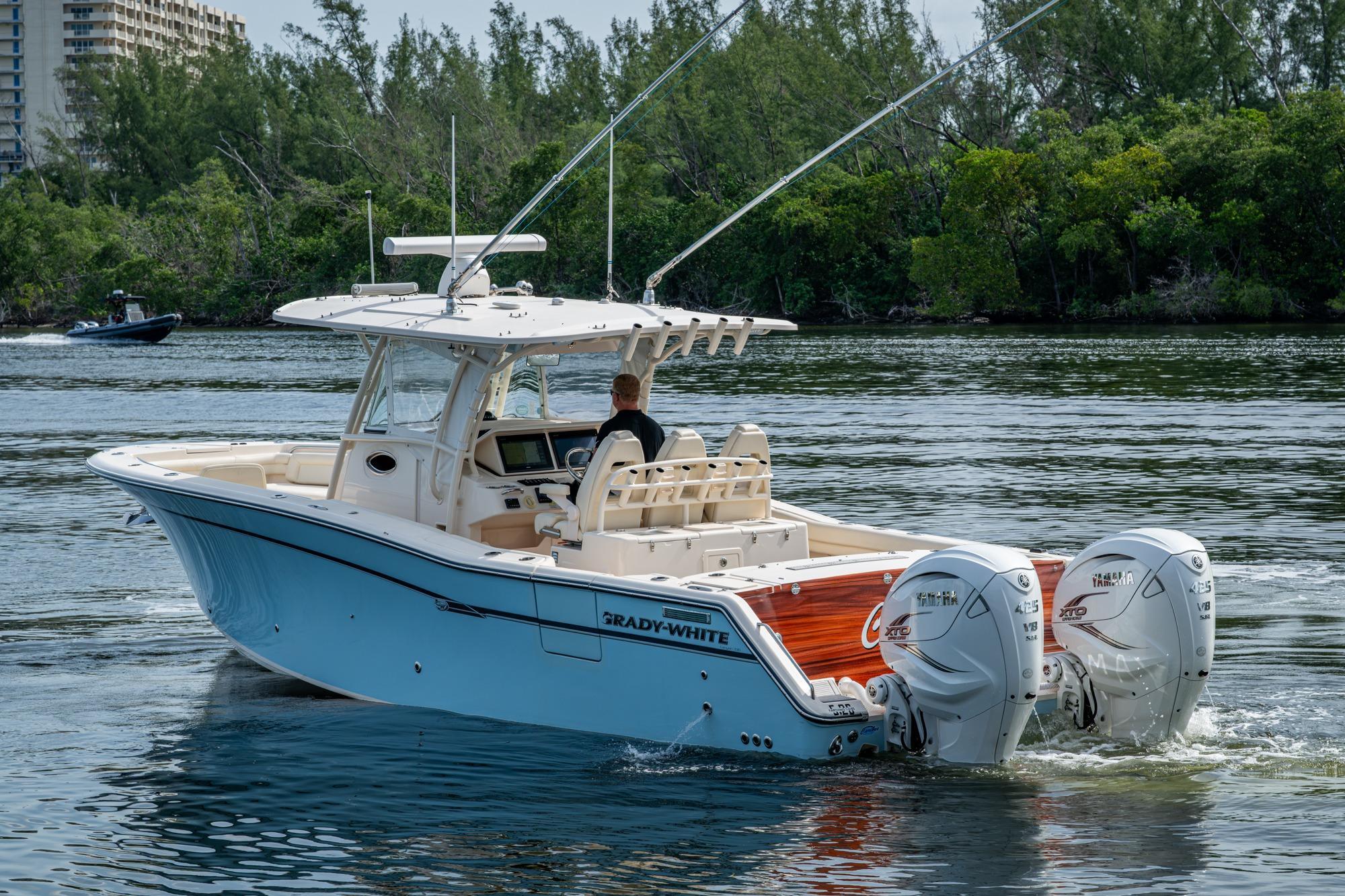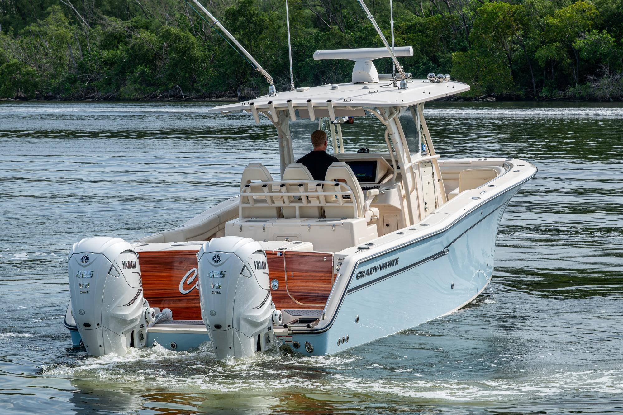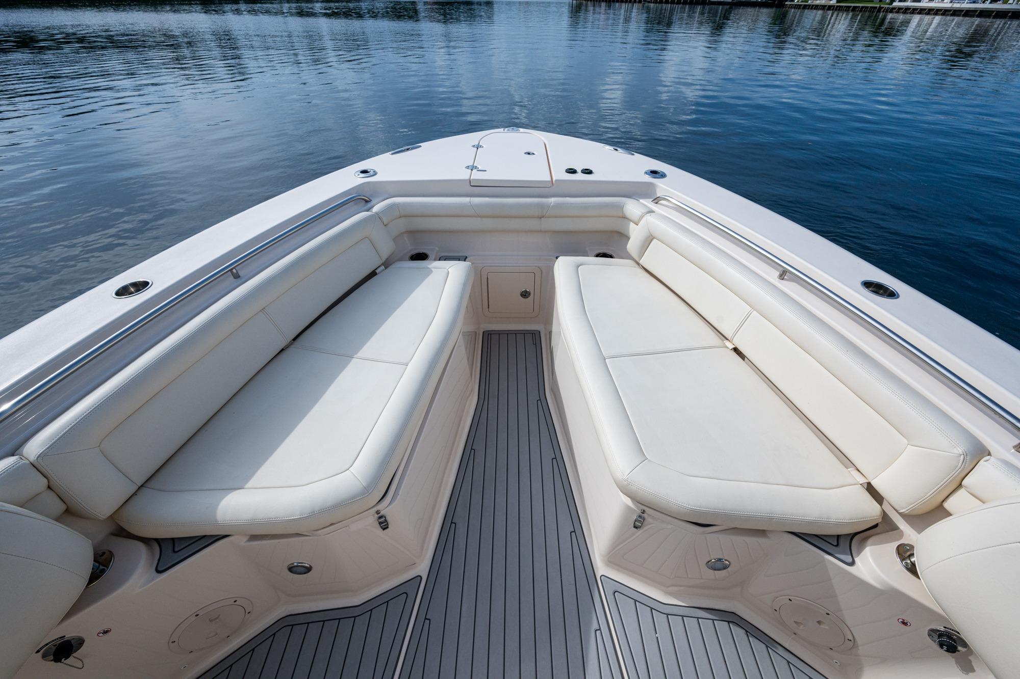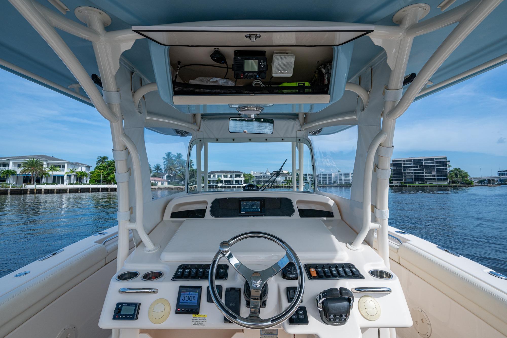 2019 Grady-White 330 Express – Twin Yamaha XTO 425s – Offshore ReadyThe 2019 Grady-White 330 Express is the ultimate combination of offshore performance, fishability, and comfort. Powered by twin Yamaha XTO Offshore 425s, this boat delivers the torque and reliability needed for serious runs offshore, while still offering premium features for weekend cruising. Outfitted with a full electronics package, generator, air conditioning, and every major fishing upgrade, she’s 100% turn-key and ready for her next owner.SpecificationsLength Overall: 33’ 6”Beam: 11’ 7”Draft: 27”Weight: Approx. 10,000 lbs (dry)Fuel Capacity: 331 gallonsWater Capacity: 44 gallonsHolding Tank: 10 gallonsPower & PerformanceEngines: Twin Yamaha XTO Offshore 425s (approx. XXXX hours)Stainless steel props with digital electronic controlsBow Thruster for confident low-speed maneuveringCruise comfortably at 30+ knots | Top speed in the 50s (depending on load/props)Helm & ElectronicsDual multi-function displays with integrated chartplotter, sonar, and radarOpen-array radar for offshore visibilityAutopilot for hands-free navigationVHF radio with AISYamaha CL7 engine monitoring displaysWindlass with helm controlTrim tabs & remote spotlightFishing FeaturesHardtop with outriggers45-gallon livewell with lightDual insulated fish boxes with macerator pump-outsRod holders throughout gunwales, transom, and hardtopRigging/tackle storage drawersCockpit sink & prep stationTransom door for hauling big fish or divingComfort & Cruising FeaturesHelm deck air conditioning with full enclosureAdjustable captain’s chair with companion seatingFold-away aft cockpit bench seatCockpit refrigerator/freezer (if equipped)Premium Fusion/JL Audio stereo systemSwim platform with integrated boarding ladderHot/cold freshwater transom showerCabin & AccommodationsSleeps 2 comfortably (forward V-berth)Galley: refrigerator, microwave, cooktop, sink, Corian countersTeak cabinetry and flooring throughoutEnclosed head with electric flush toilet, sink, and stand-up showerAmple storage for gear and suppliesConditionMeticulously maintained, fully serviced, and lift-kept (if true). All systems are operational — this boat is turn-key and Bahamas/Bimini ready.