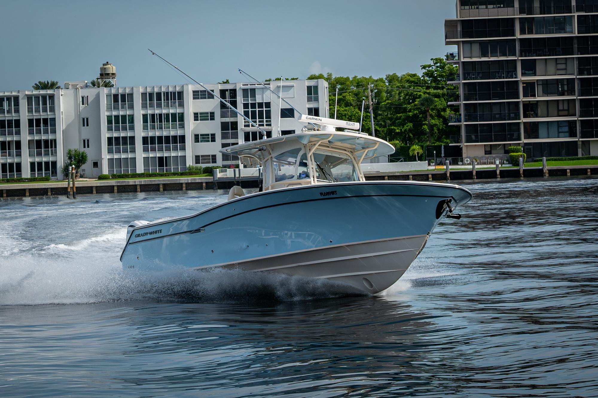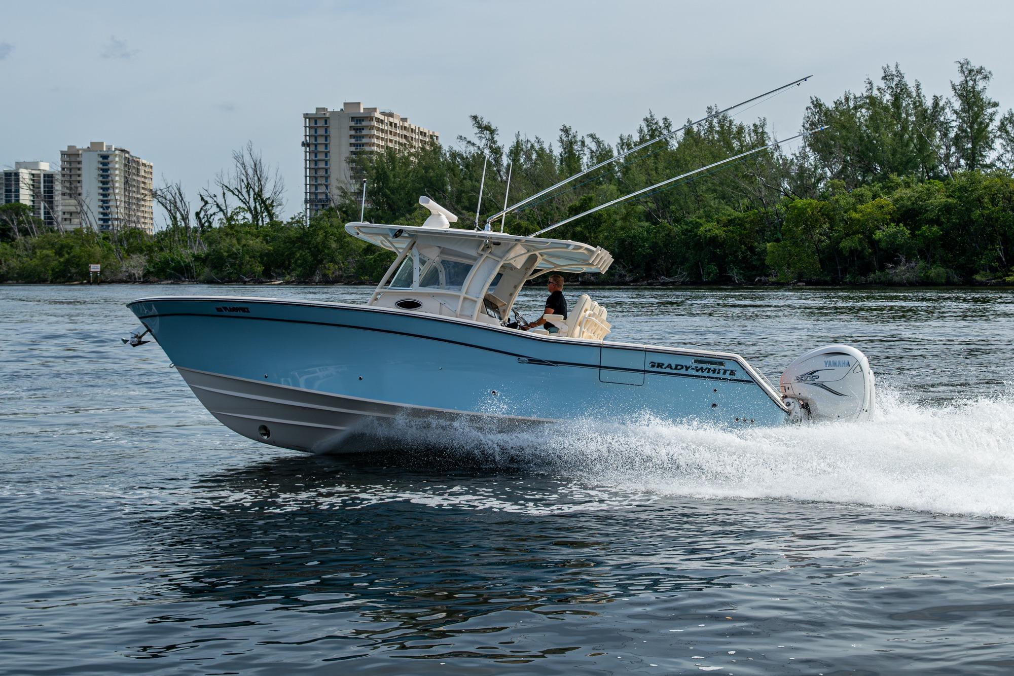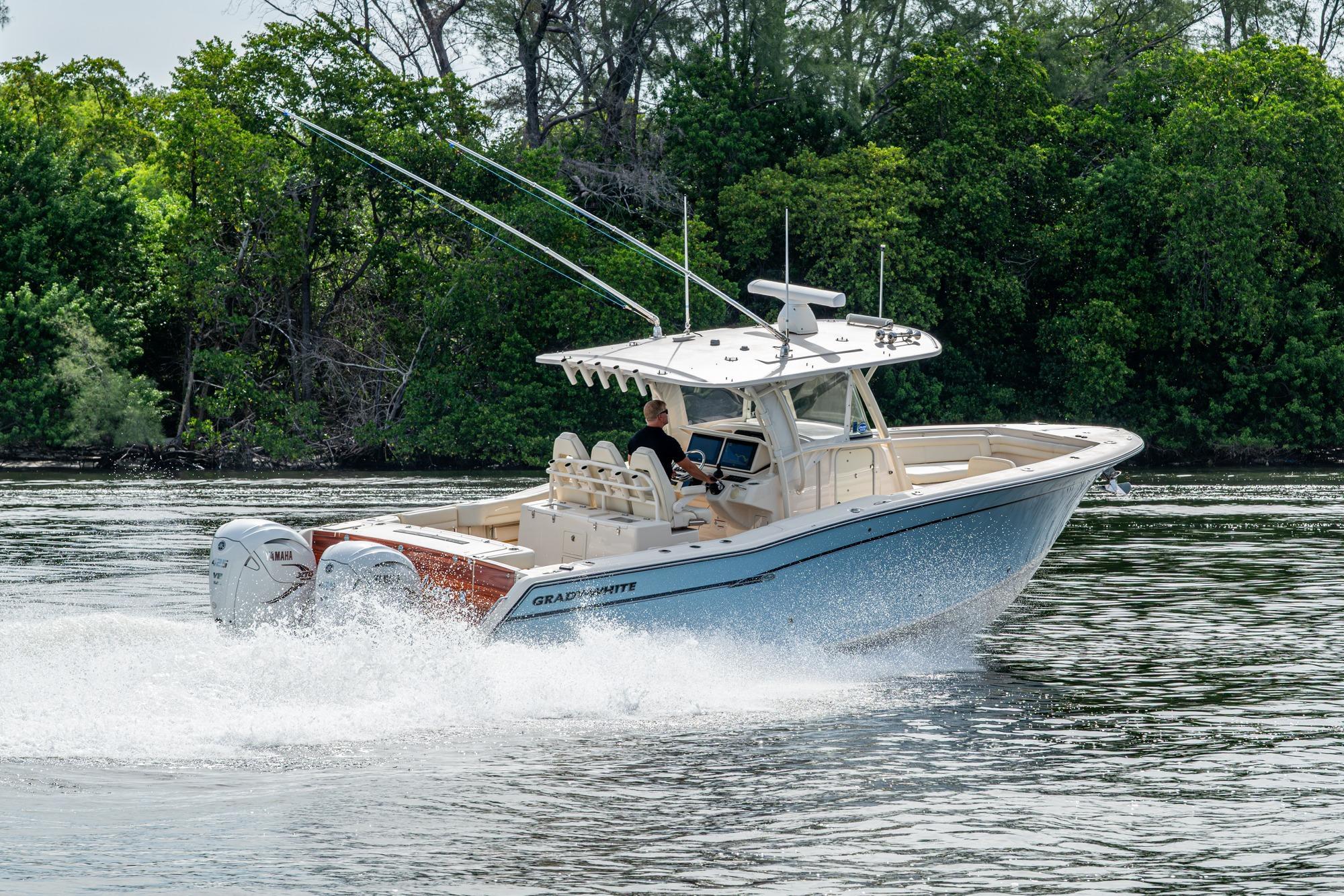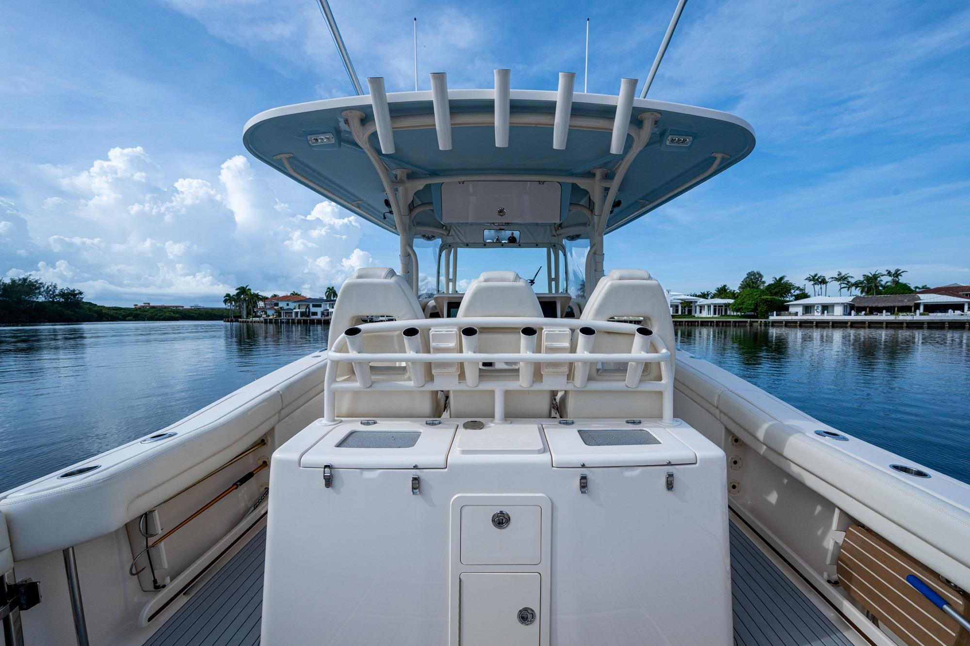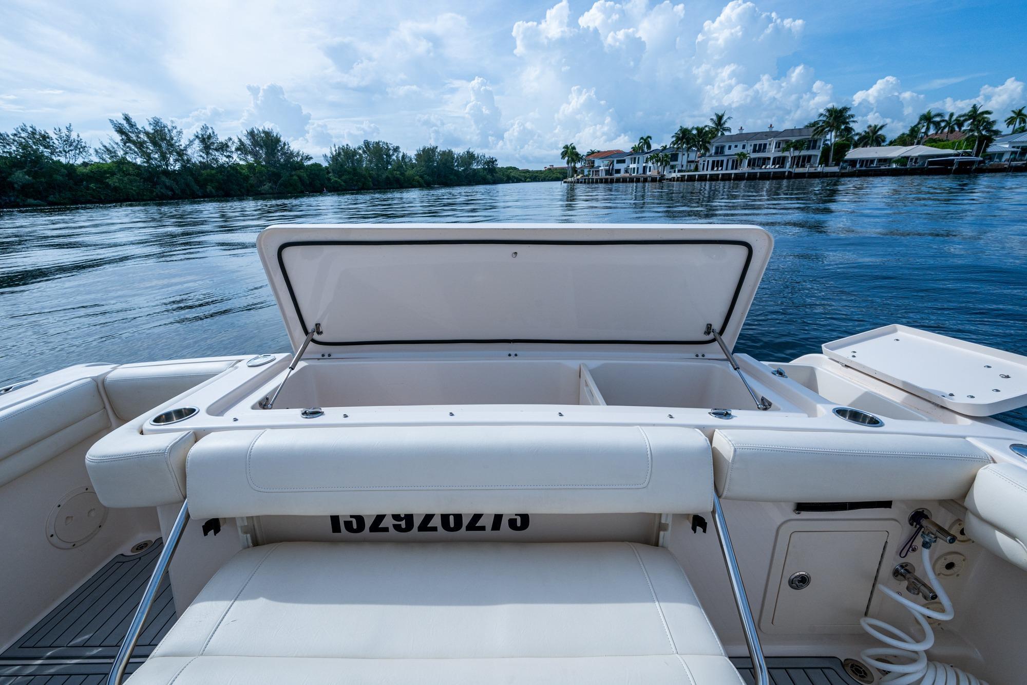 2019 Grady-White 330 Express – Twin Yamaha XTO 425s – Offshore ReadyThe 2019 Grady-White 330 Express is the ultimate combination of offshore performance, fishability, and comfort. Powered by twin Yamaha XTO Offshore 425s, this boat delivers the torque and reliability needed for serious runs offshore, while still offering premium features for weekend cruising. Outfitted with a full electronics package, generator, air conditioning, and every major fishing upgrade, she’s 100% turn-key and ready for her next owner.SpecificationsLength Overall: 33’ 6”Beam: 11’ 7”Draft: 27”Weight: Approx. 10,000 lbs (dry)Fuel Capacity: 331 gallonsWater Capacity: 44 gallonsHolding Tank: 10 gallonsPower & PerformanceEngines: Twin Yamaha XTO Offshore 425s (approx. XXXX hours)Stainless steel props with digital electronic controlsBow Thruster for confident low-speed maneuveringCruise comfortably at 30+ knots | Top speed in the 50s (depending on load/props)Helm & ElectronicsDual multi-function displays with integrated chartplotter, sonar, and radarOpen-array radar for offshore visibilityAutopilot for hands-free navigationVHF radio with AISYamaha CL7 engine monitoring displaysWindlass with helm controlTrim tabs & remote spotlightFishing FeaturesHardtop with outriggers45-gallon livewell with lightDual insulated fish boxes with macerator pump-outsRod holders throughout gunwales, transom, and hardtopRigging/tackle storage drawersCockpit sink & prep stationTransom door for hauling big fish or divingComfort & Cruising FeaturesHelm deck air conditioning with full enclosureAdjustable captain’s chair with companion seatingFold-away aft cockpit bench seatCockpit refrigerator/freezer (if equipped)Premium Fusion/JL Audio stereo systemSwim platform with integrated boarding ladderHot/cold freshwater transom showerCabin & AccommodationsSleeps 2 comfortably (forward V-berth)Galley: refrigerator, microwave, cooktop, sink, Corian countersTeak cabinetry and flooring throughoutEnclosed head with electric flush toilet, sink, and stand-up showerAmple storage for gear and suppliesConditionMeticulously maintained, fully serviced, and lift-kept (if true). All systems are operational — this boat is turn-key and Bahamas/Bimini ready.