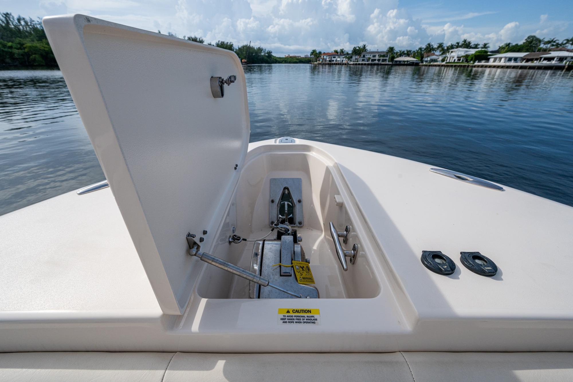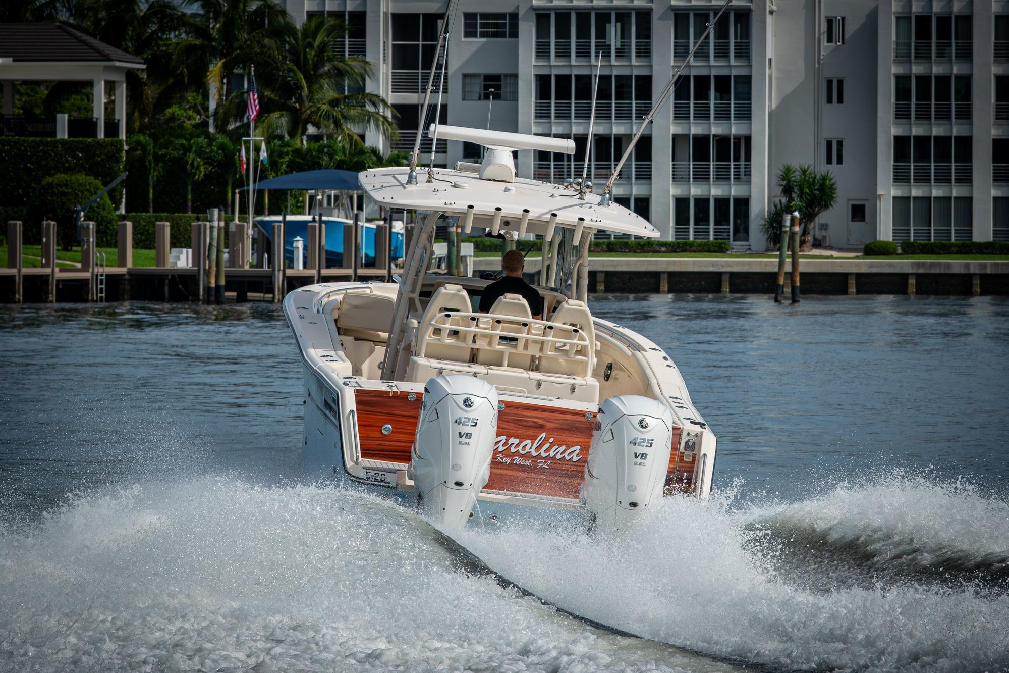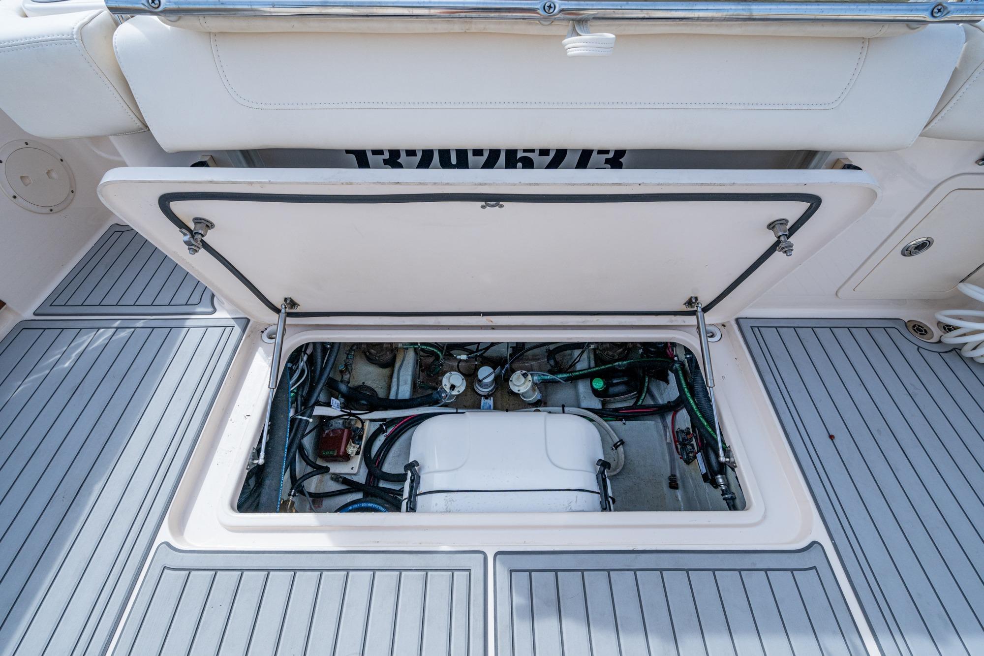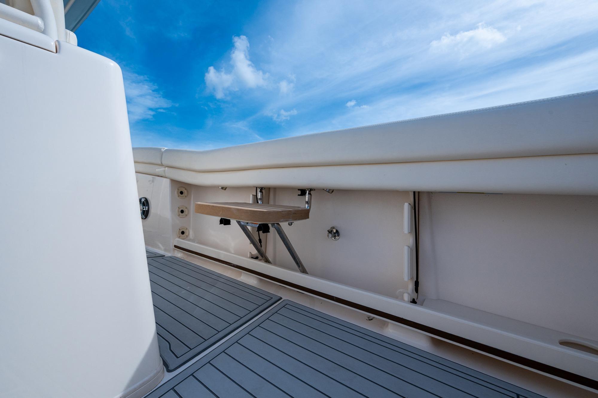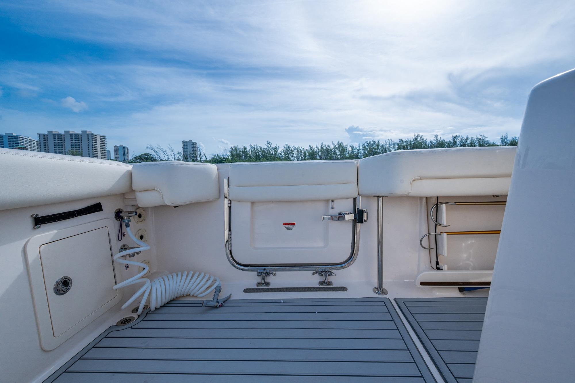 2019 Grady-White 330 Express – Twin Yamaha XTO 425s – Offshore ReadyThe 2019 Grady-White 330 Express is the ultimate combination of offshore performance, fishability, and comfort. Powered by twin Yamaha XTO Offshore 425s, this boat delivers the torque and reliability needed for serious runs offshore, while still offering premium features for weekend cruising. Outfitted with a full electronics package, generator, air conditioning, and every major fishing upgrade, she’s 100% turn-key and ready for her next owner.SpecificationsLength Overall: 33’ 6”Beam: 11’ 7”Draft: 27”Weight: Approx. 10,000 lbs (dry)Fuel Capacity: 331 gallonsWater Capacity: 44 gallonsHolding Tank: 10 gallonsPower & PerformanceEngines: Twin Yamaha XTO Offshore 425s (approx. XXXX hours)Stainless steel props with digital electronic controlsBow Thruster for confident low-speed maneuveringCruise comfortably at 30+ knots | Top speed in the 50s (depending on load/props)Helm & ElectronicsDual multi-function displays with integrated chartplotter, sonar, and radarOpen-array radar for offshore visibilityAutopilot for hands-free navigationVHF radio with AISYamaha CL7 engine monitoring displaysWindlass with helm controlTrim tabs & remote spotlightFishing FeaturesHardtop with outriggers45-gallon livewell with lightDual insulated fish boxes with macerator pump-outsRod holders throughout gunwales, transom, and hardtopRigging/tackle storage drawersCockpit sink & prep stationTransom door for hauling big fish or divingComfort & Cruising FeaturesHelm deck air conditioning with full enclosureAdjustable captain’s chair with companion seatingFold-away aft cockpit bench seatCockpit refrigerator/freezer (if equipped)Premium Fusion/JL Audio stereo systemSwim platform with integrated boarding ladderHot/cold freshwater transom showerCabin & AccommodationsSleeps 2 comfortably (forward V-berth)Galley: refrigerator, microwave, cooktop, sink, Corian countersTeak cabinetry and flooring throughoutEnclosed head with electric flush toilet, sink, and stand-up showerAmple storage for gear and suppliesConditionMeticulously maintained, fully serviced, and lift-kept (if true). All systems are operational — this boat is turn-key and Bahamas/Bimini ready.