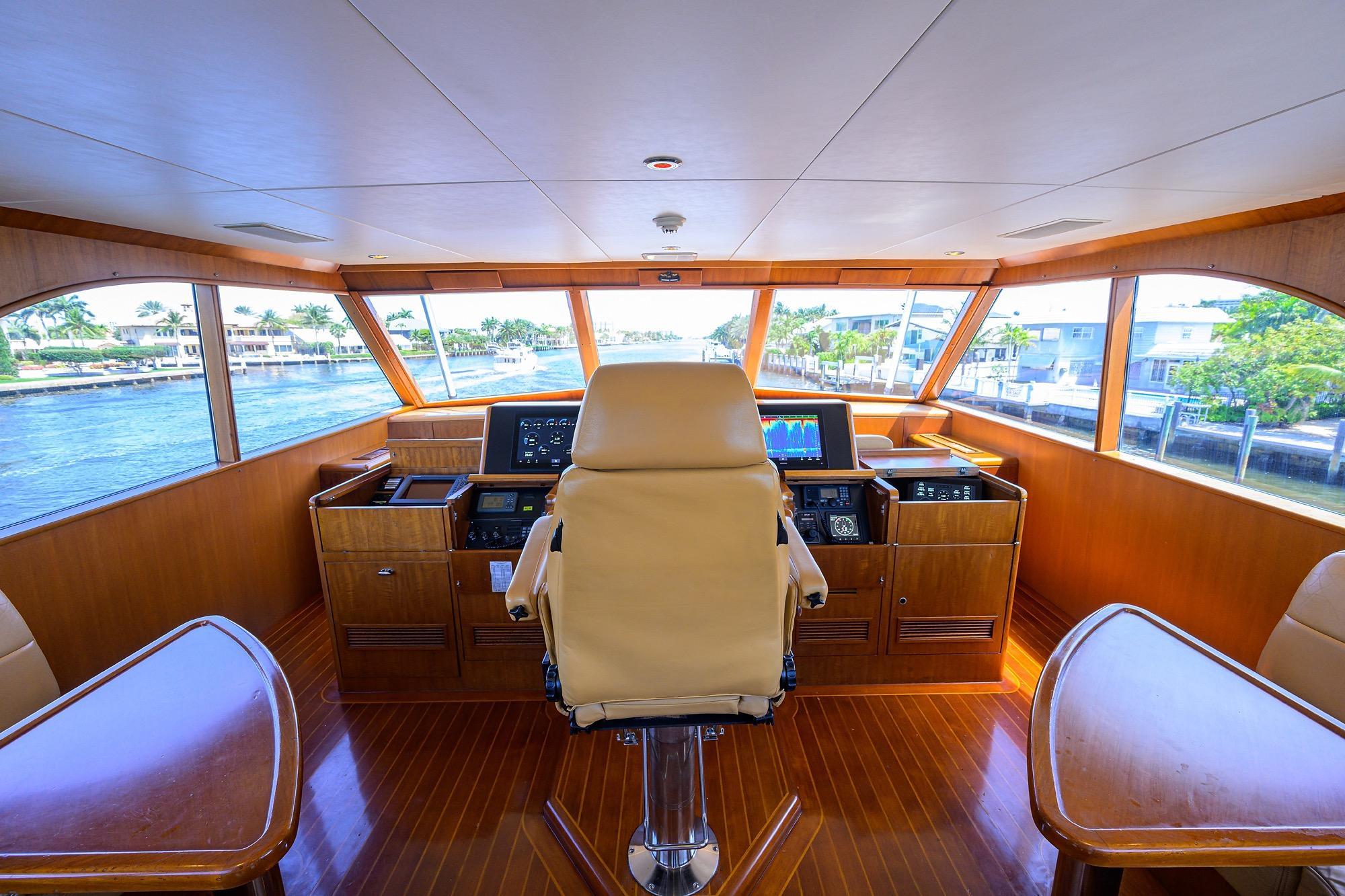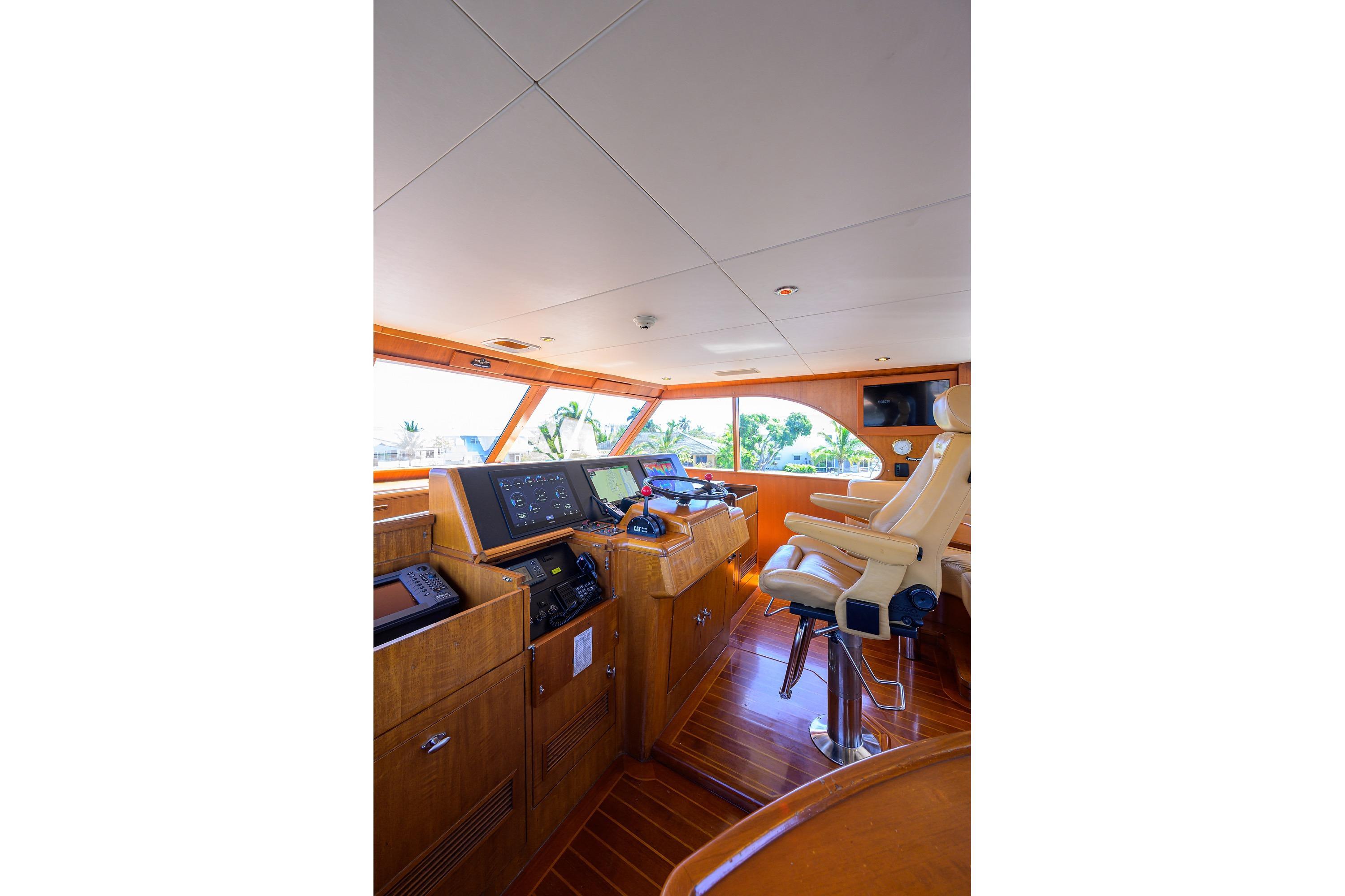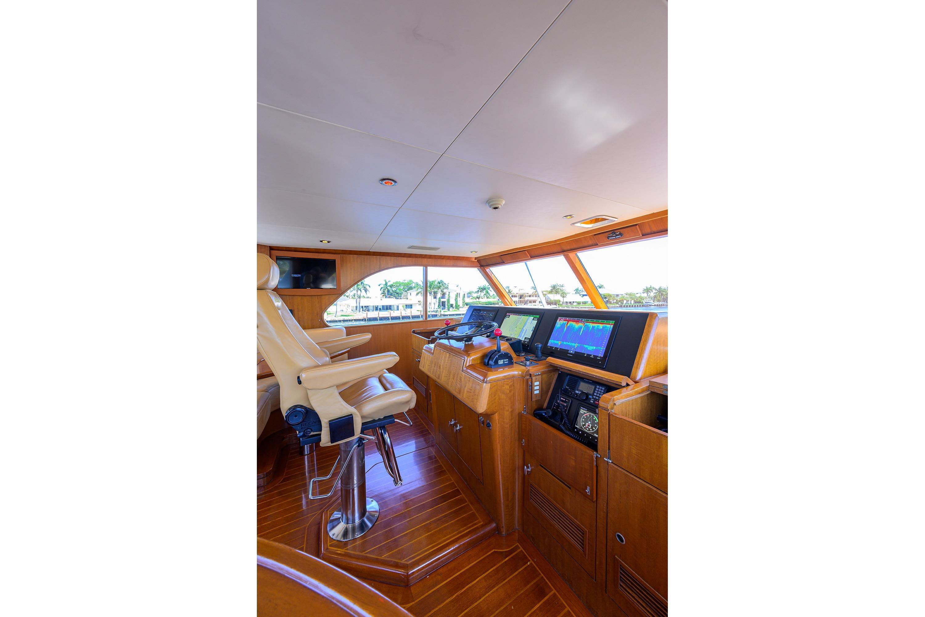 The enclosed Pilothouse is accessed via a 10-step ladder from the Cockpit. There is an abundance of seating, plus there is an observation deck aft with two swivel fish chairs as well as an aft control station for fishing.