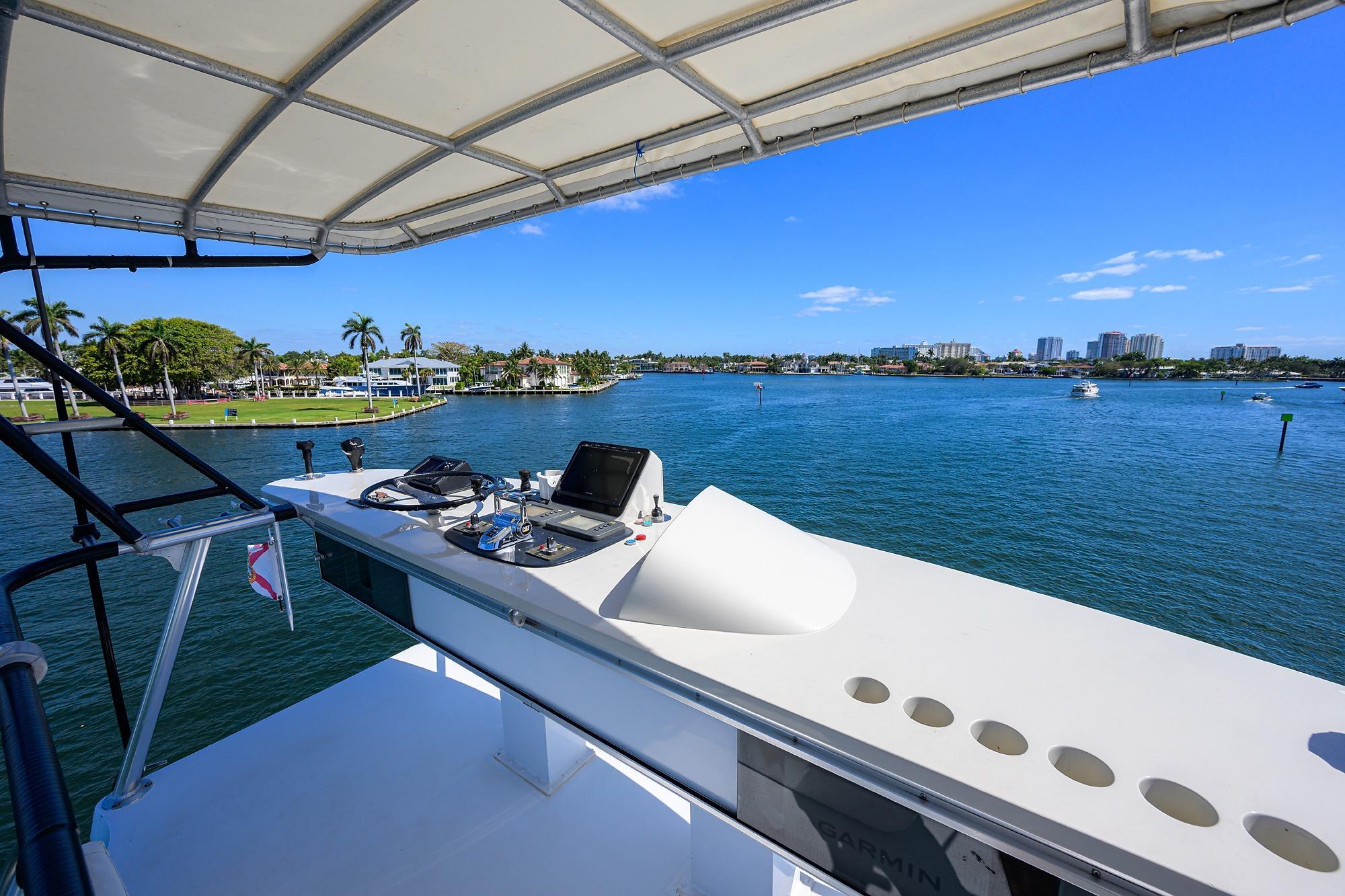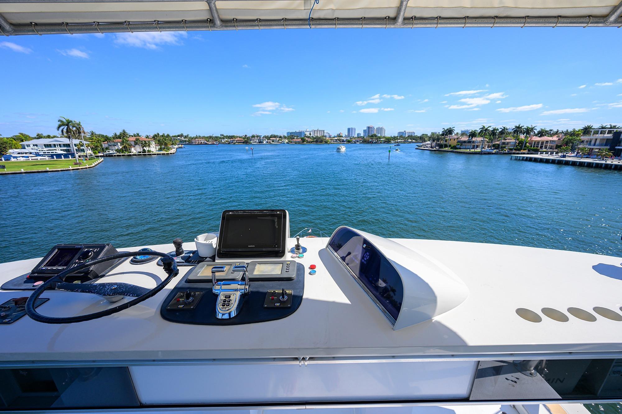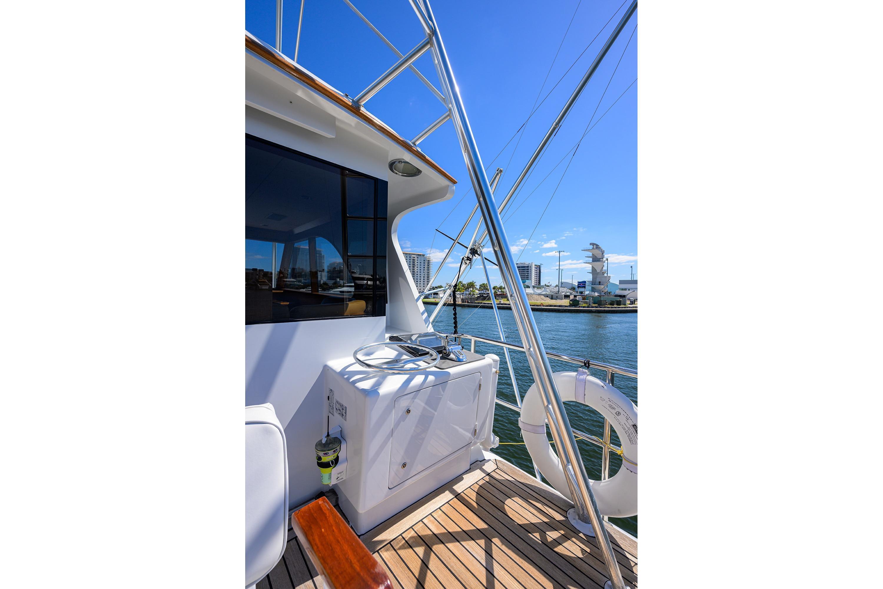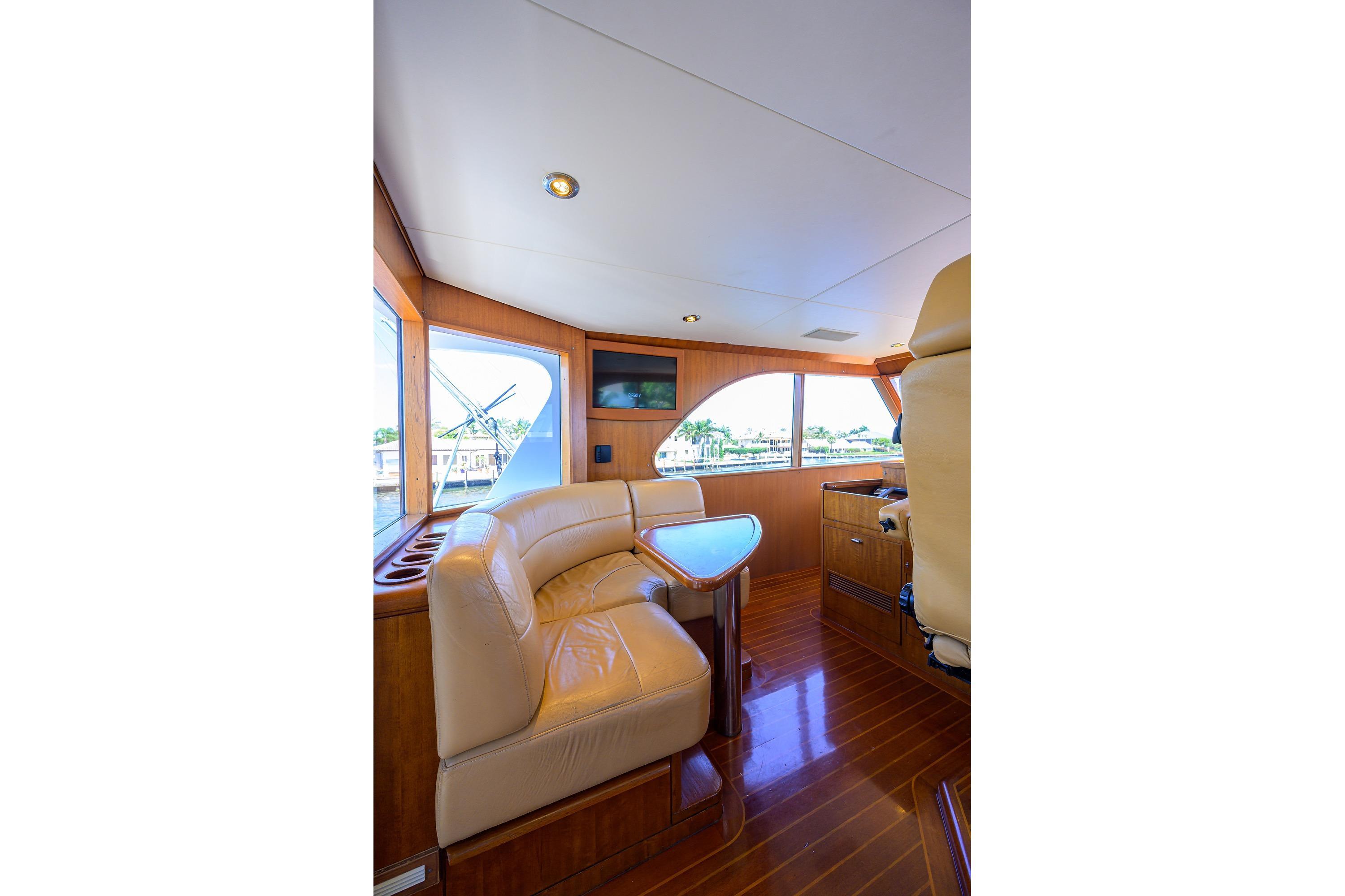 The enclosed Pilothouse is accessed via a 10-step ladder from the Cockpit. There is an abundance of seating, plus there is an observation deck aft with two swivel fish chairs as well as an aft control station for fishing.